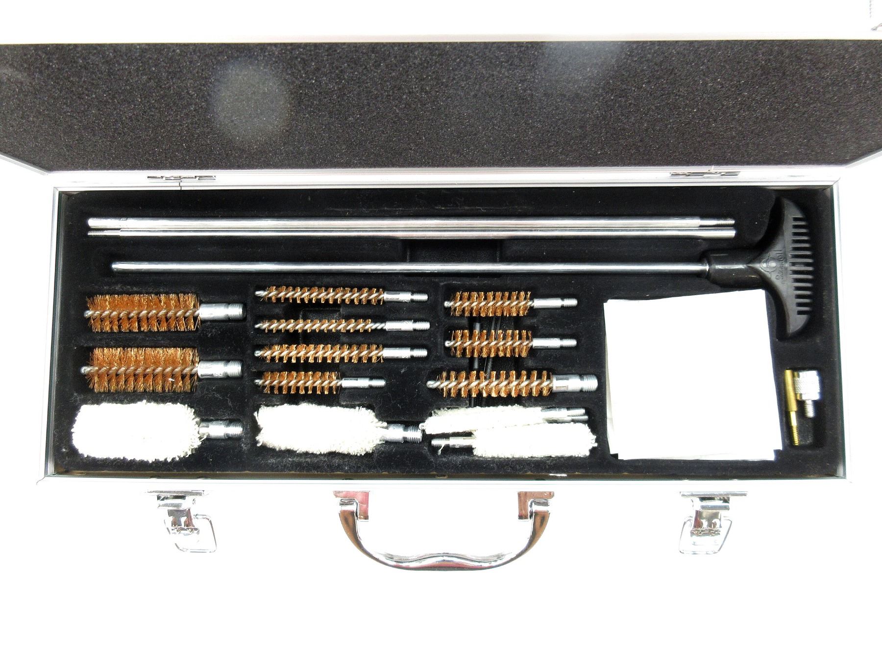 LOT INCLUDES; (1) UNIVERSAL GUN CLEANING KIT, CLEANING ROD WITH VARIOUS SIZED TIPS, ASSORTED BRUSHES & CLEANING PATCHES, APPEARS NOS, WITH CASE. SEE PHOTOS.