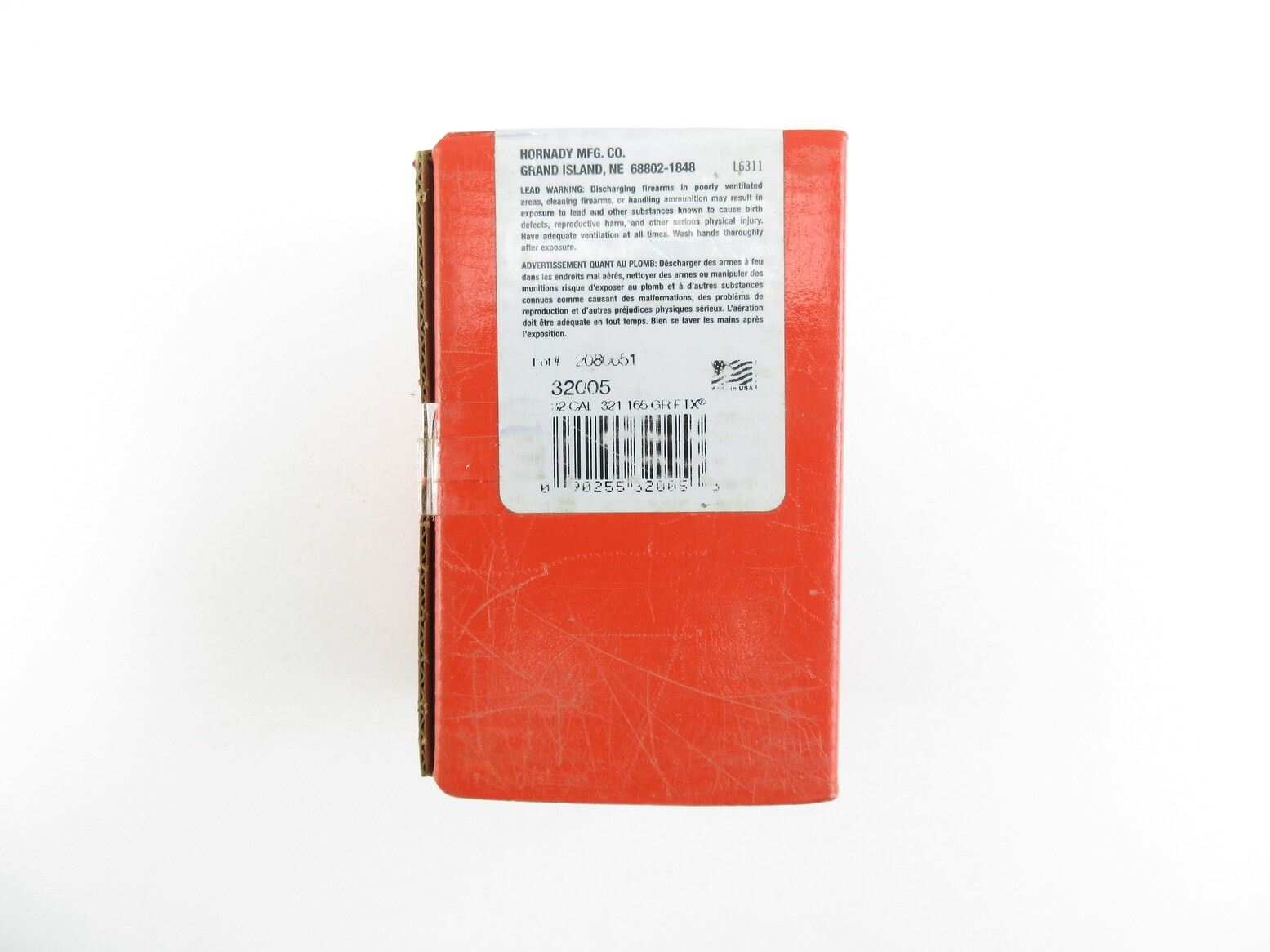 HORNADY .32 CALIBER BULLETS LOT. LOT INCLUDES; APPROX. (100) BULLETS, APPROX. DIA .321", 165 GRNS (STATED ON BOX NOT CONFIRMED), FTX, UNOPENED BOX.