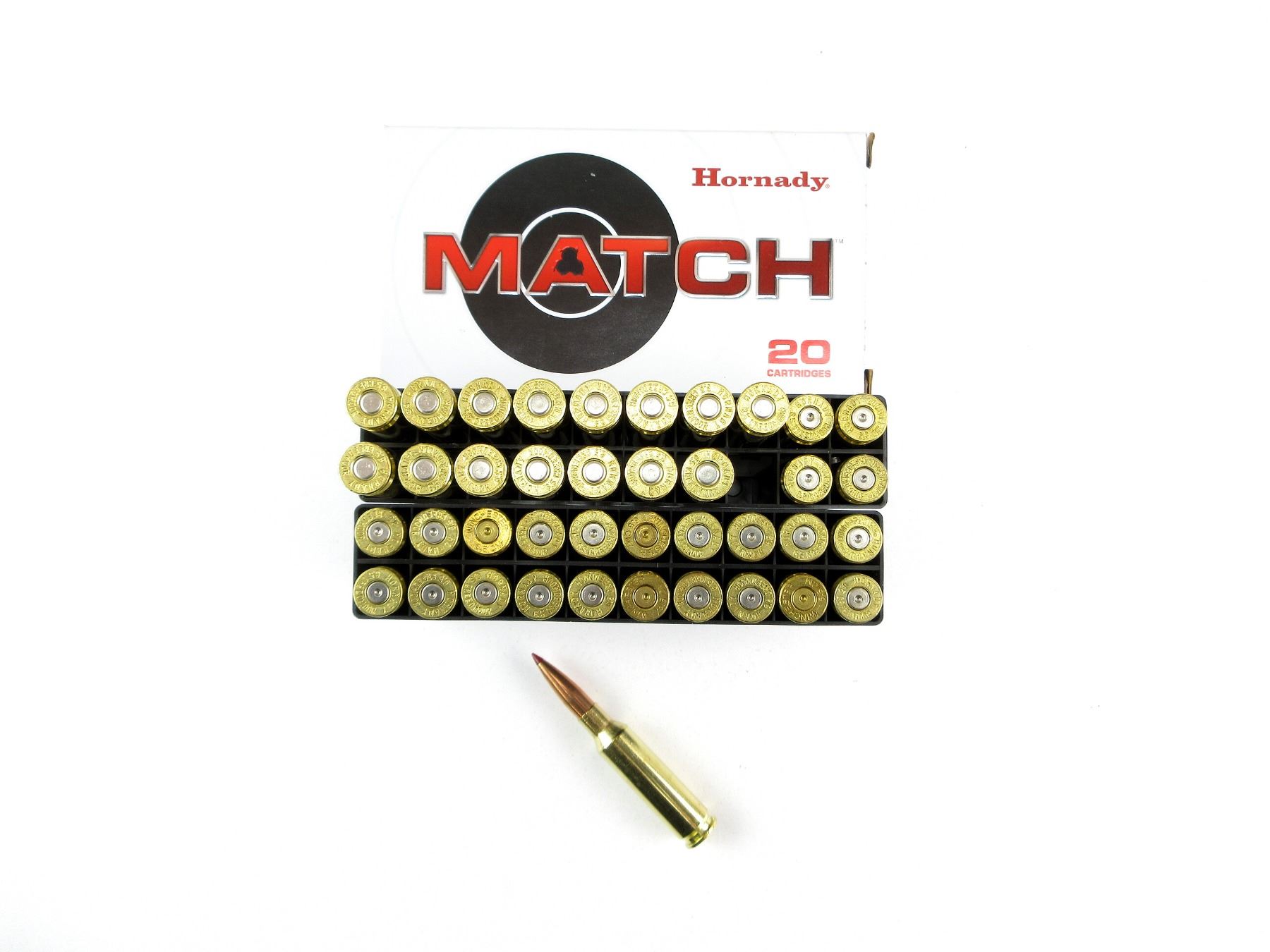 LOT INCLUDES; APPROX. (16) RNDS, 140 GRNS (STATED ON BOX NOT CONFIRMED), ELD MATCH, (24) ASSORTED NON-PRIMED BRASS CASES.