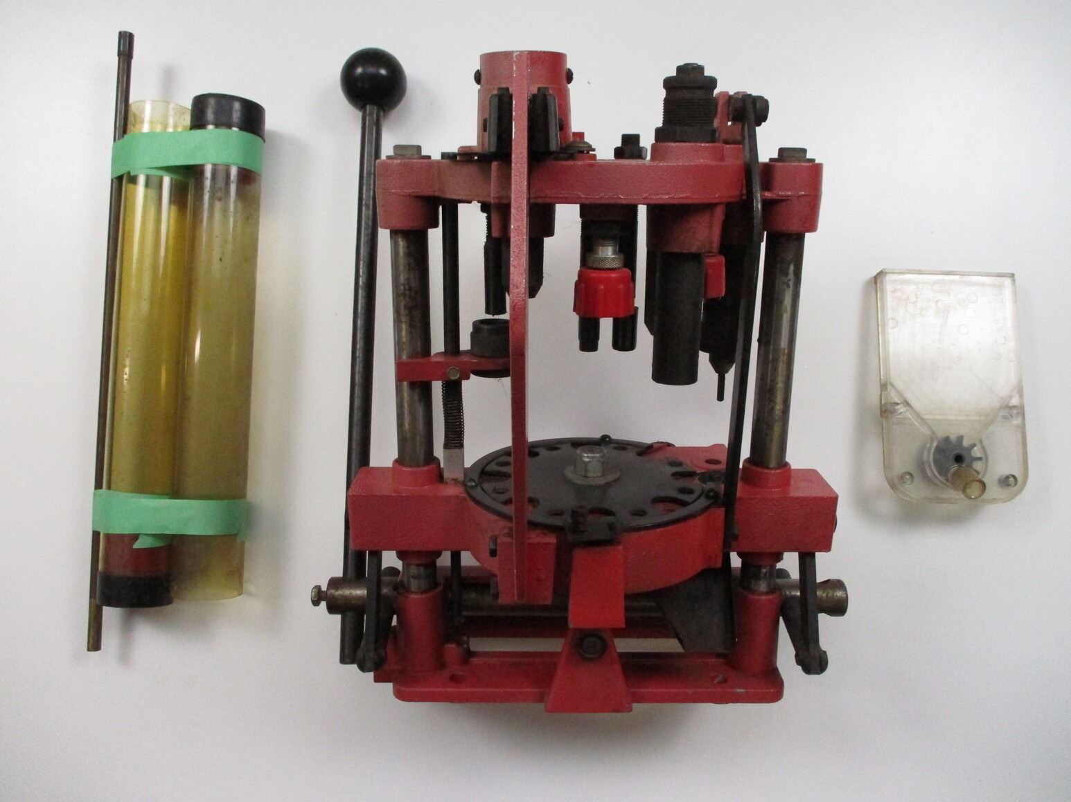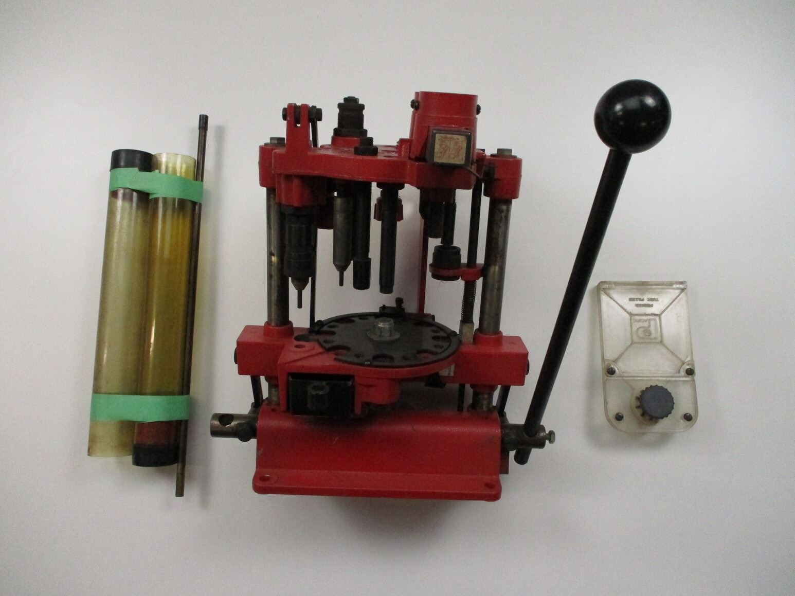 HORNADY SHOT SHELL LOADER LOT , LOT INCLUDES; (1) MODEL 366 SHOT SHELL LOADER W/POWDER TUBE, SHOT TUBE, PRIMER TUBE & PRIMER TUBE FILLER. MAY REQUIRE ADJUSTMENT(S).