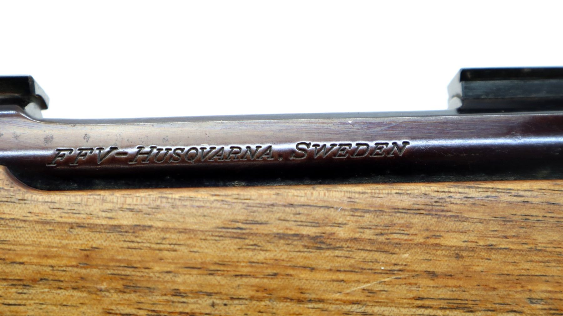 Main Description: Missing front and rear sights, rear dovetail present, blued finish, barrel has a clamp on rail installed, receiver drilled and tapped with two piece Tikka? Bases installed, large black rubber bolt knob. One piece wood stock, Schnabel forend tip, checkered forearm and pistol grip, cheek rest, missing butt plate and screws, stock broken at toe, grip cap, hinged alloy floor plate and trigger guard, missing swivels holes are present.