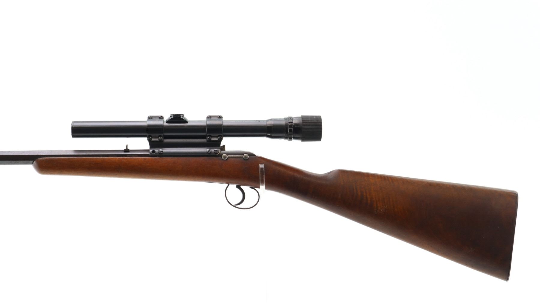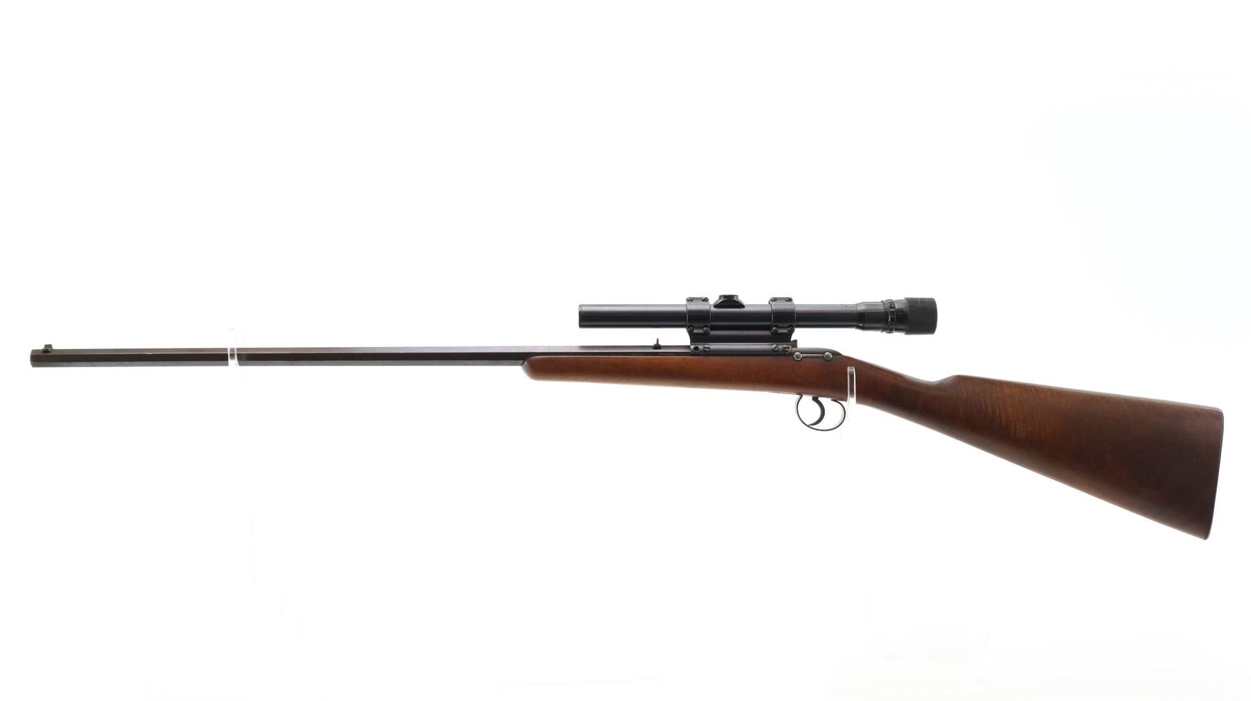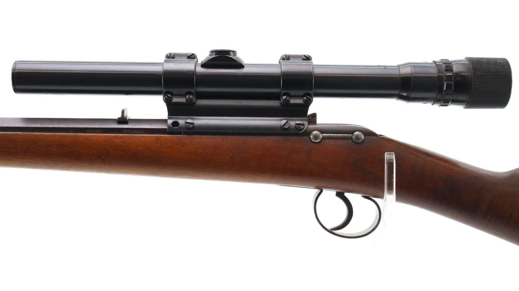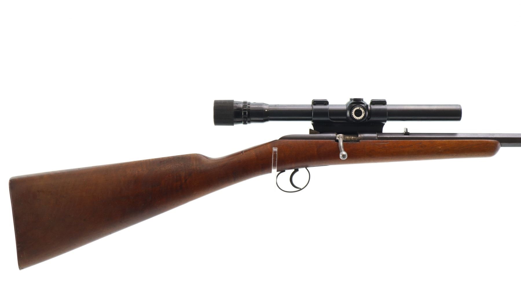 Main Description: Blade front sight, u notched rear sight, octagon barrel, receiver drilled and tapped with a weaver V22-a 3-6 scope, hazy optics with fine crosshair, smooth bolt knob. One piece smooth wood stock, straight grip, smooth steel butt plate.