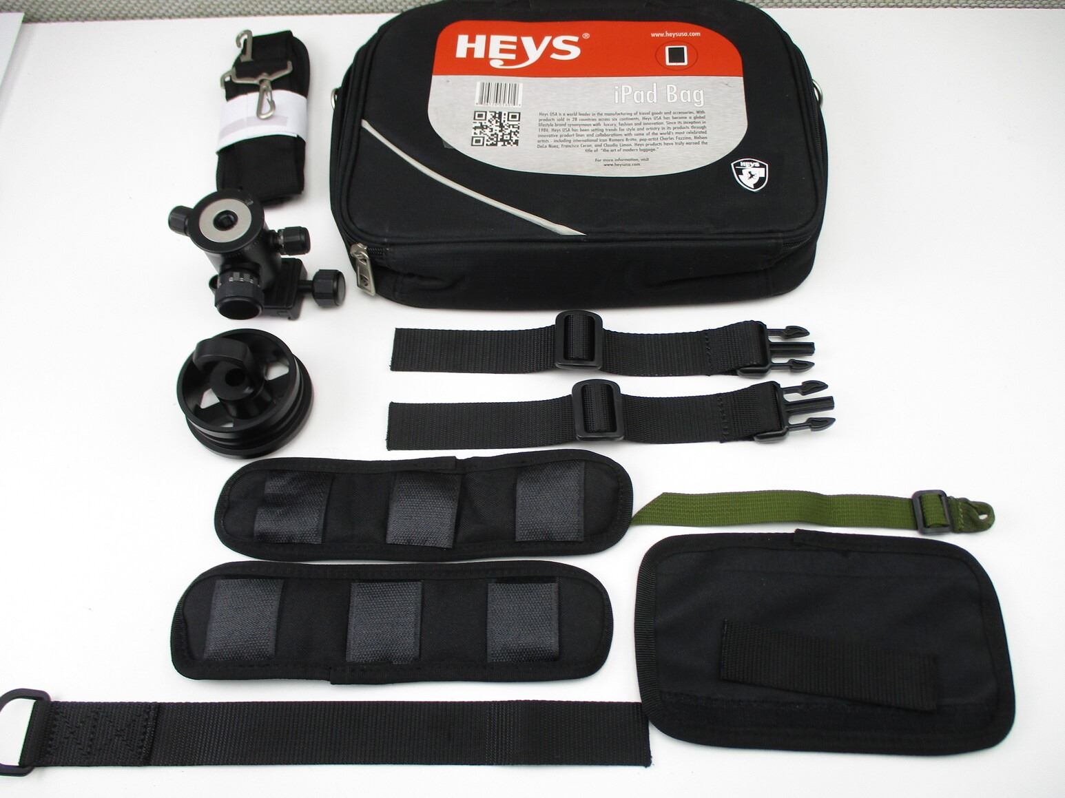 I-PAD CARRY BAG WITH TRI-POD PARTS , PADDED CASE, WITH CARRY HANDLE, MFG'D BY HEYSE, INCLUDES SHOULDER STRAPS, (1) VORTEX TRI-POD PART FOR TACTICAL TRI-POD, (1) MAN FROTO TRI-POD BALL HEAD FOR TACTICAL TRI-POD.