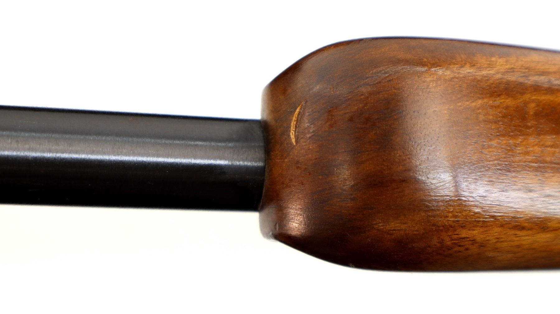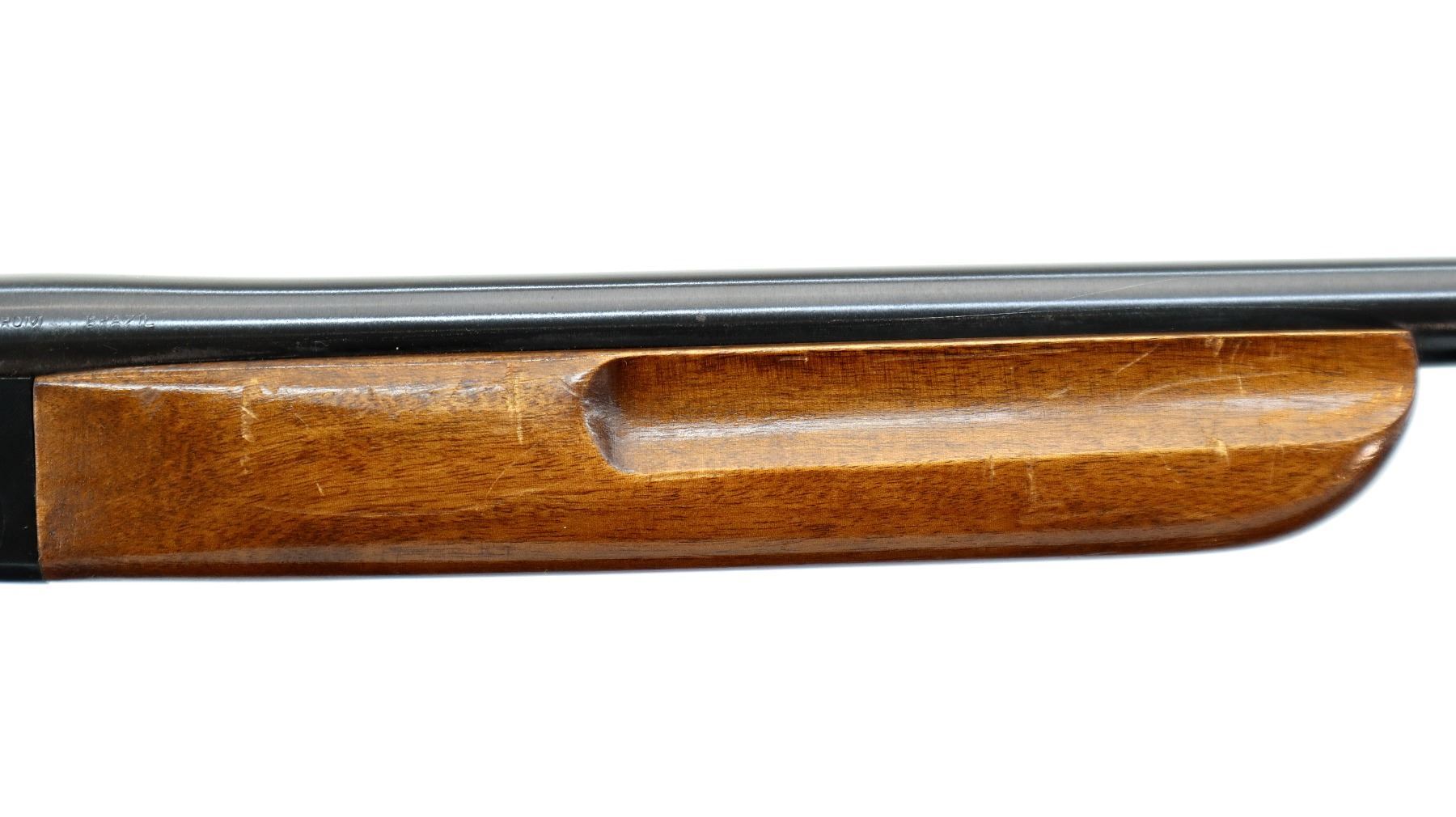Main Description: Brass bead, blued finish round barrel, grooved spur hammer, extractor. Two piece wood stocks, finger grooved forearm, pistol grip, grooved black polymer butt plate.