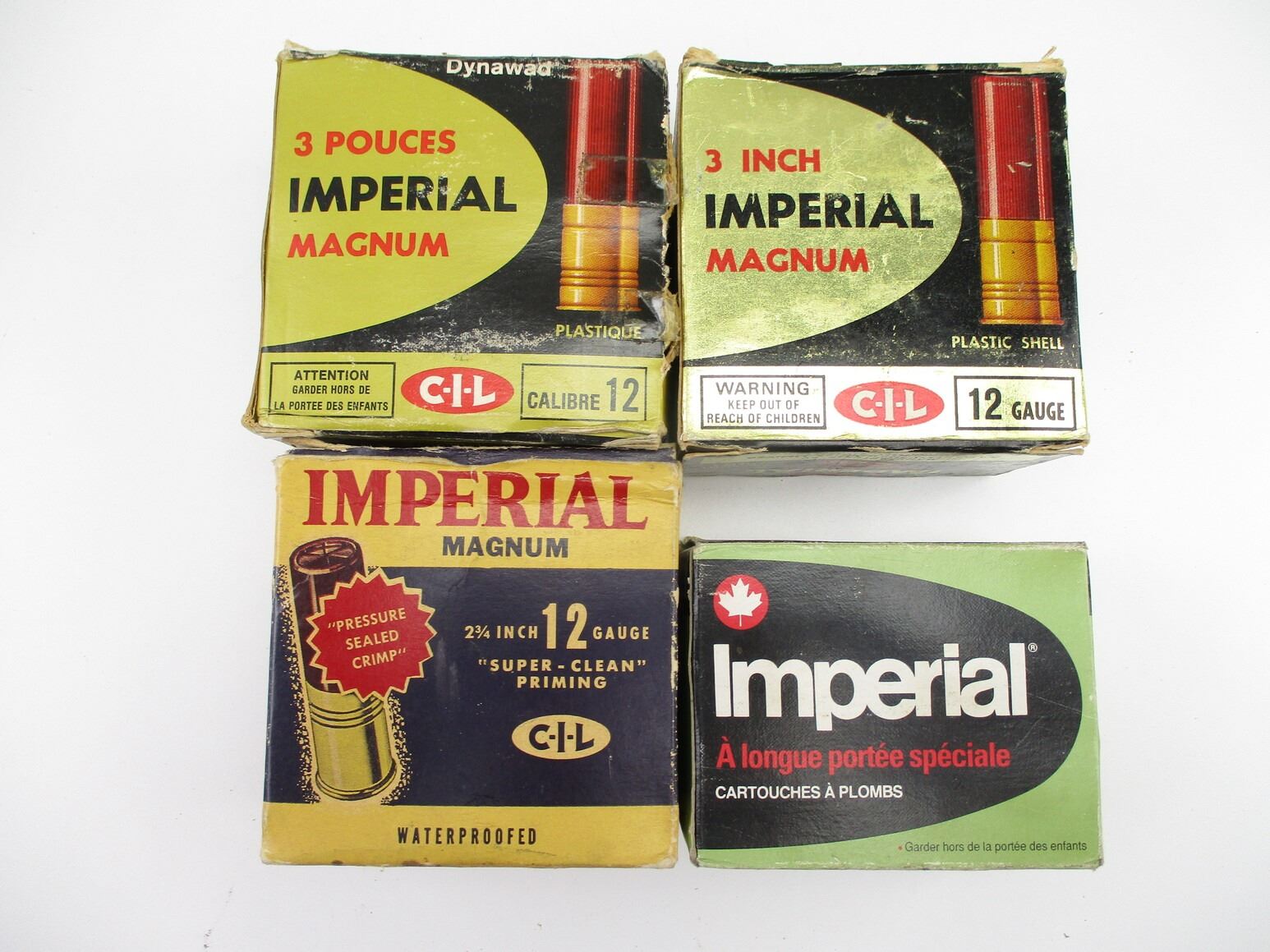 IMPERIAL ASSORTED 12 GAUGE SHOTSHELLS LOT, 87 RNDS, 2 3/4" & 3", INCLUDES VARIOUS TYPES & VARIOUS SHOT SIZES, THERE ARE NEW SHIPPING RESTRICTIONS, PLEASE MAKE SURE YOU HAVE READ AND CONFIRMED WE CAN SHIP TO YOU BEFORE BIDDING ON THIS LOT. PLEASE SEE LOT 0 IN THIS SESSION. NO REFUNDS WILL BE ISSUED, OR BIDS RETRACTED
