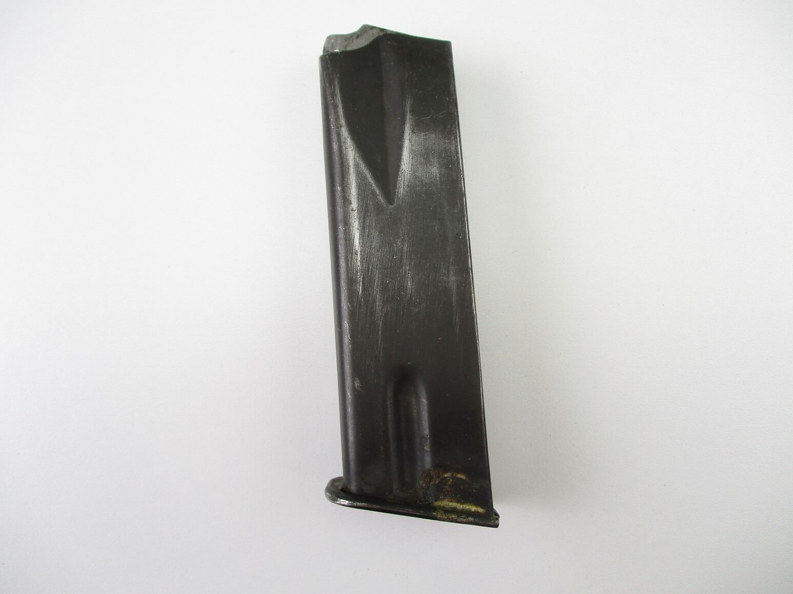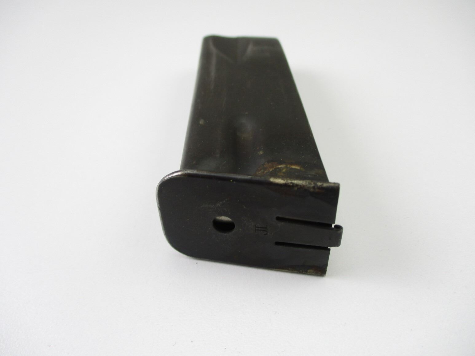 INGLIS HI-POWER 9MM PISTOL MAGAZINES , 9MM, 10/13 ROUND PINNED MAG, STEEL, ALLOY TYPE FOLLOWER, MARKED "JI", (JOHN INGLIS), WEAR ON MAG.