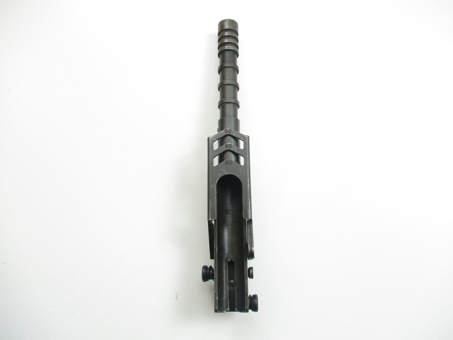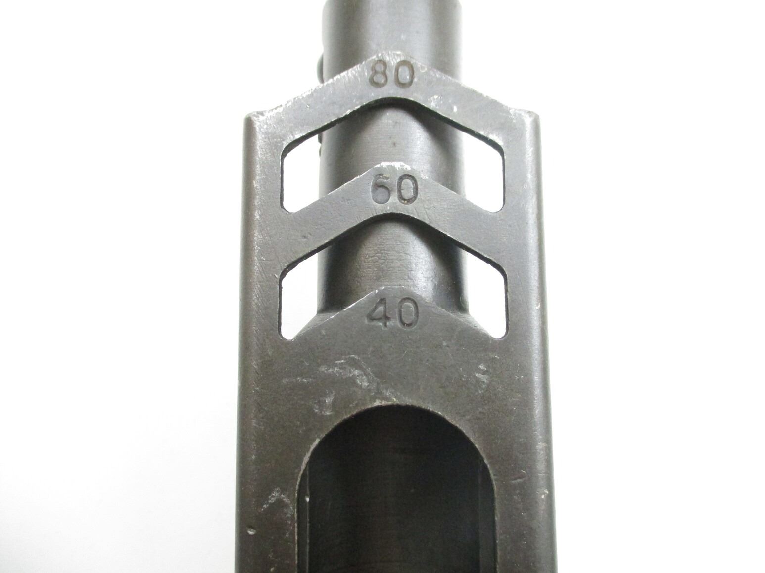 ISRAELI K98 MAUSER GRENADE LAUNCHER. (1) FITS 8MM & 7.62N RIFLES, STEEL, VARIOUS HEBREW MARKINGS, FLIP-UP SIGHT MARKED: "40, 60, 80", OAL APPROX. 11.5". SEE PHOTOS.