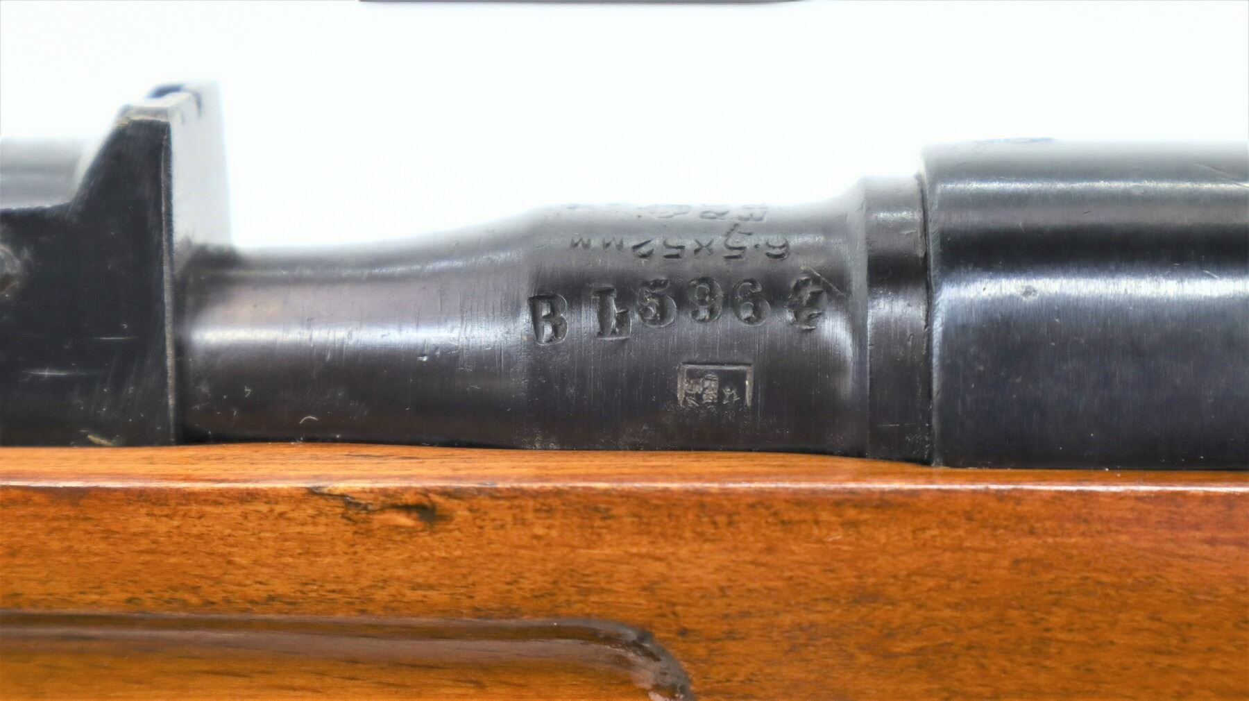 ITALIAN CARCANO, MODEL: 38 REPRO JFK RIFLE , CALIBER: 6.5 X 52MM, BORE IS GOOD, WORN. MANUFACTURED BY ROYAL ARMS FACTORY IN TERNI 1941. BLADE FRONT SIGHT WITH RAMP, FIXED U NOTCHED REAR SIGHT, BLUED FINISH, BOLT WITH TURN DOWN HANDLE. TWO PIECE FULL MILITARY WOOD STOCKS, FINGER GROOVED FOREND, STRAIGHT GRIP, SMOOTH STEEL BUTT PLATE WITH TRAP, BAYONET LUG, SWIVELS. RIFLE IS BUILT IN THE SAME STYLE AS THE LEE HARVEY OSWALD RIFLE USED TO ASSASSINATE JOHN F KENNEDY. RECEIVER DRILLED AND TAPPED WITH 4 X 18 COATED, ORDNANCE OPTICS INC. HOLLYWOOD CALIFORNIA (010 JAPAN), CLEAR OPTICS, FINE CROSSHAIR, MOUNT ACQUIRED BY MARTIN B RETTING INC IN THE EARLY 1960'S AND LATER SOLD TO KLEIN'S SPORTING GOODS OF CHICAGO. NOTE: THERE IS AMMO AVAILABLE IN SESSION #1 LOT# 12163. METAL FINISH SHOWS SOME SCRATCHES, HANDLING MARKS AND WEAR. STOCK SHOWS SOME MARKS, SCRATCHES AND WEAR. ACTION: BOLT ACTION RIFLE , BARREL LENGTH: , SERIAL # BL5964, CONDITION: 7+/10, CLASS: CANADIAN NON RESTRICTED