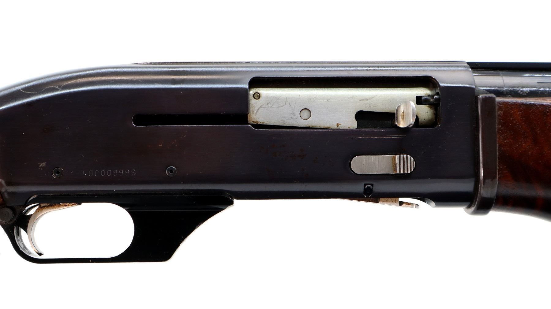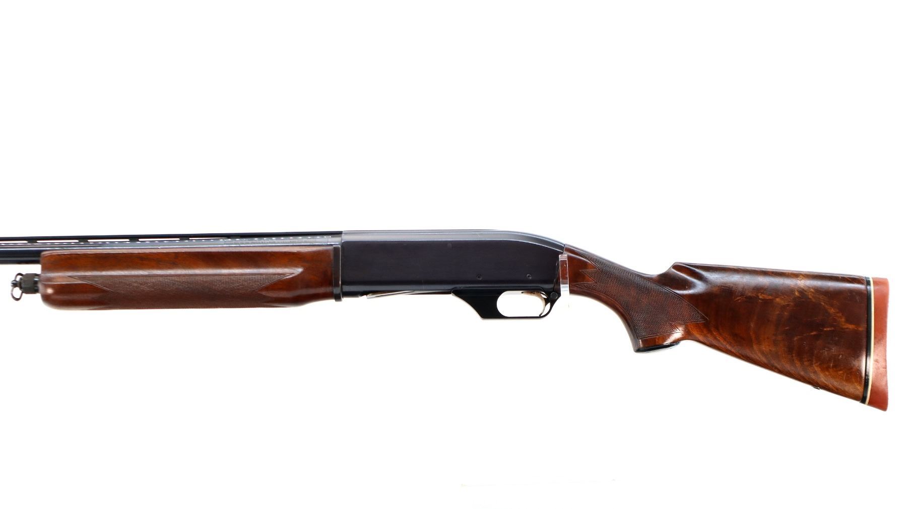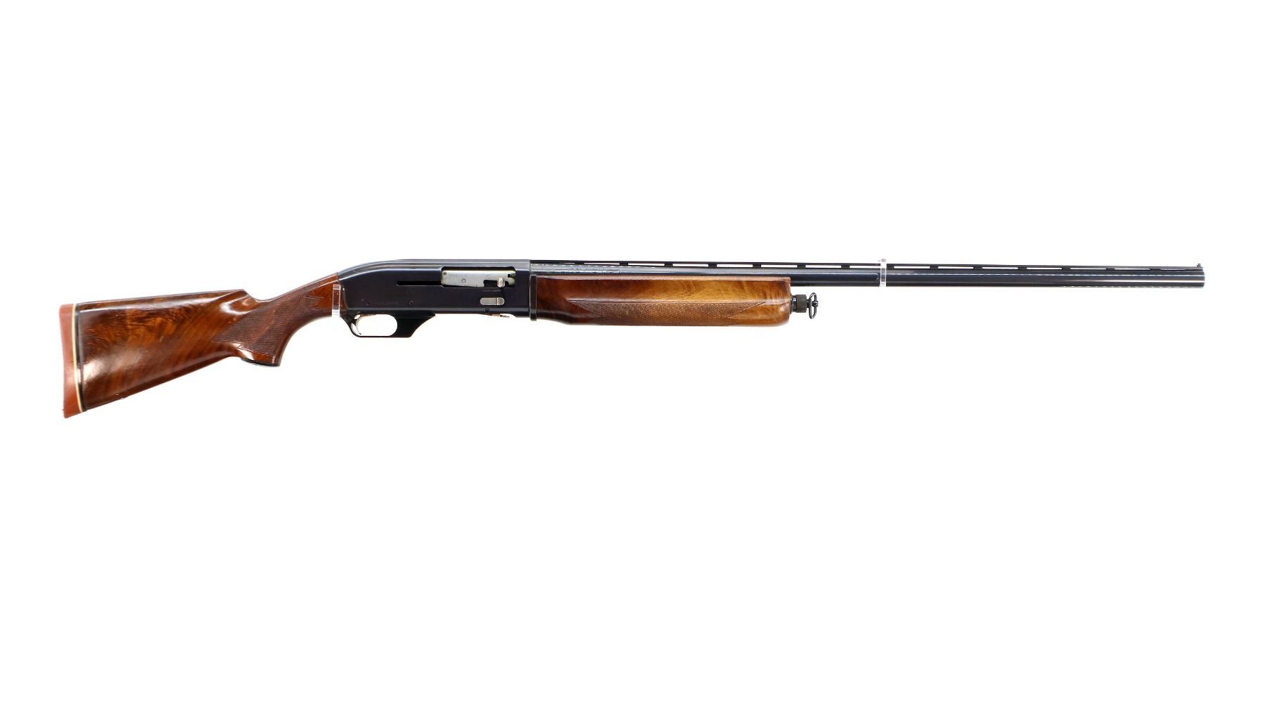Main Description: White front bead, blued finish, vent rib. Two piece wood stocks, checkered forearm and pistol grip, red vented rubber recoil pad, 13.75" LOP, grip cap, missing rear sling swivel has the front.