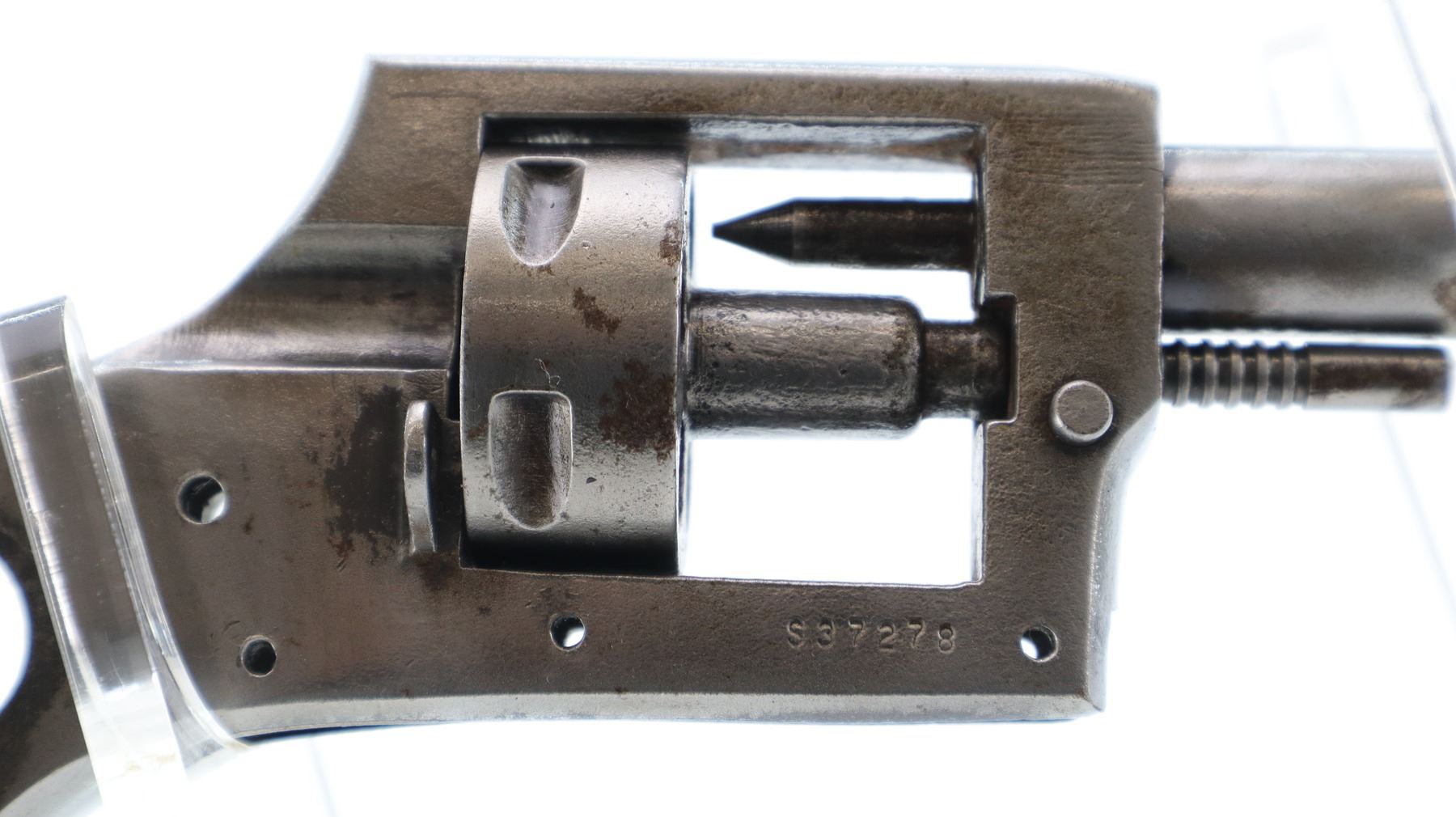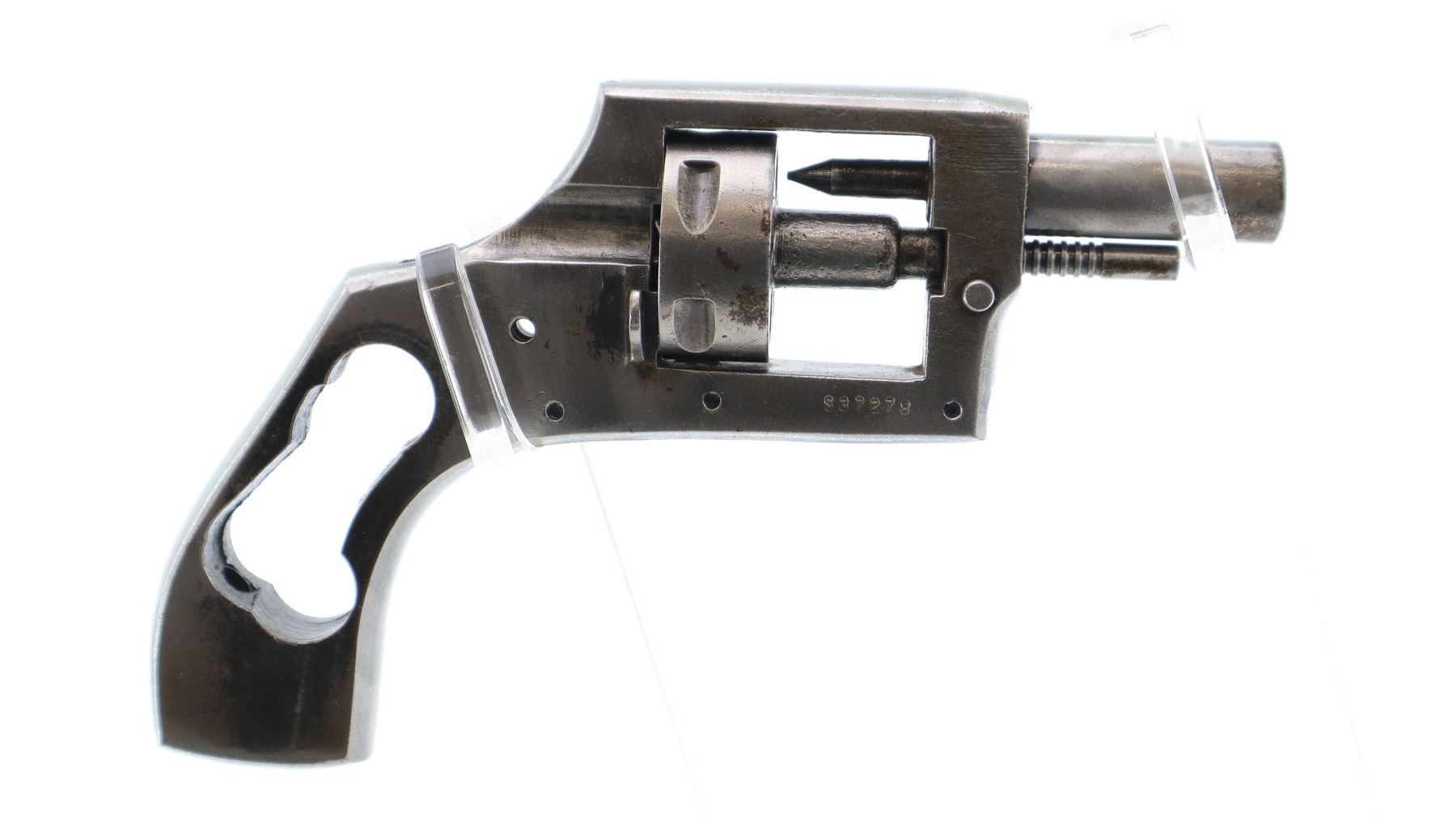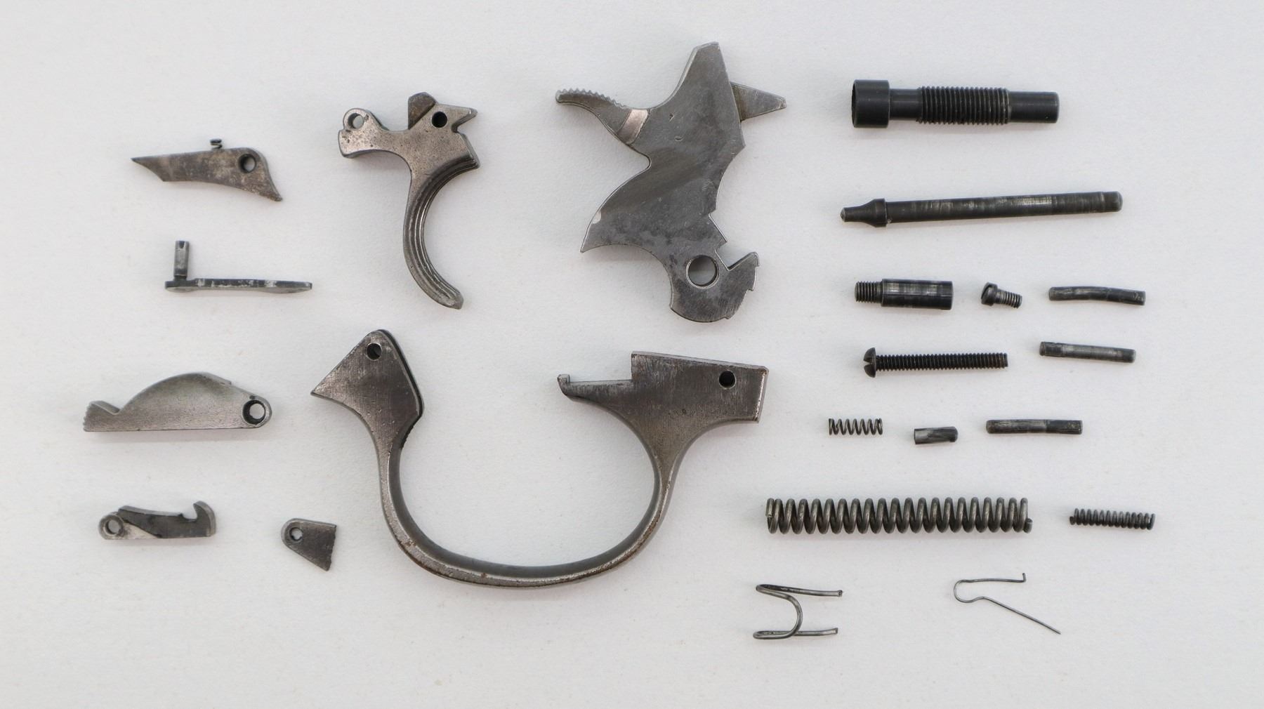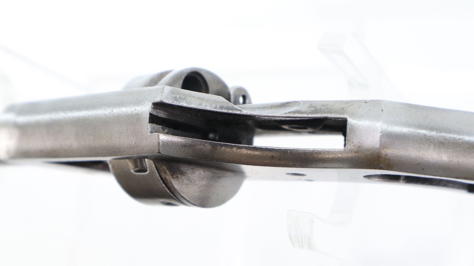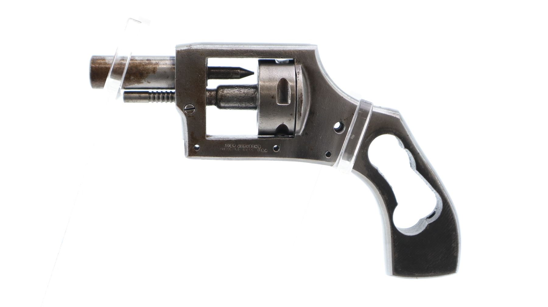 Main Description: No sights, round barrel, frame has cylinder mounted, no grips. Includes: hammer, trigger, mainspring, loading gate, various pins springs and screws may not be complete.