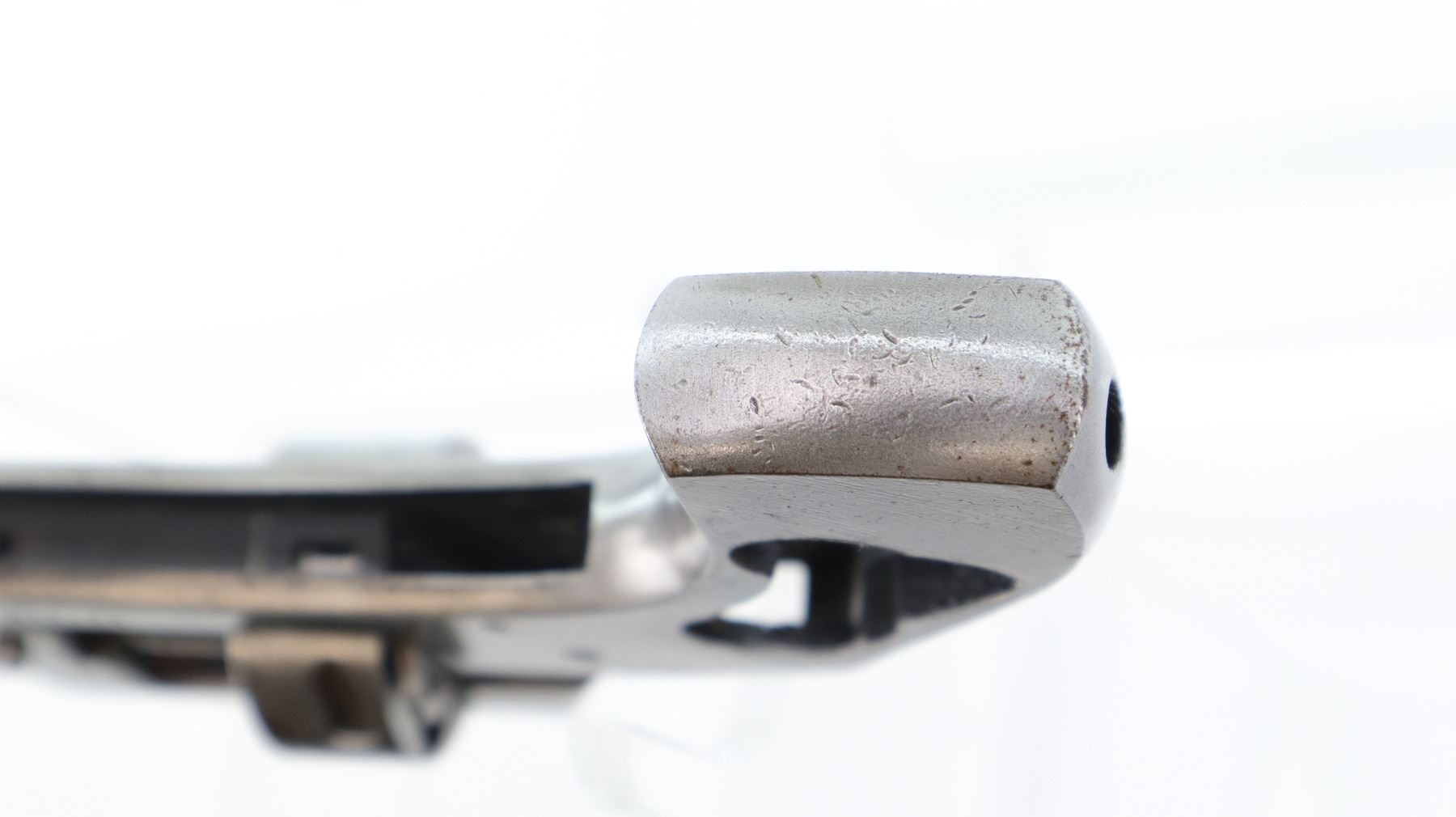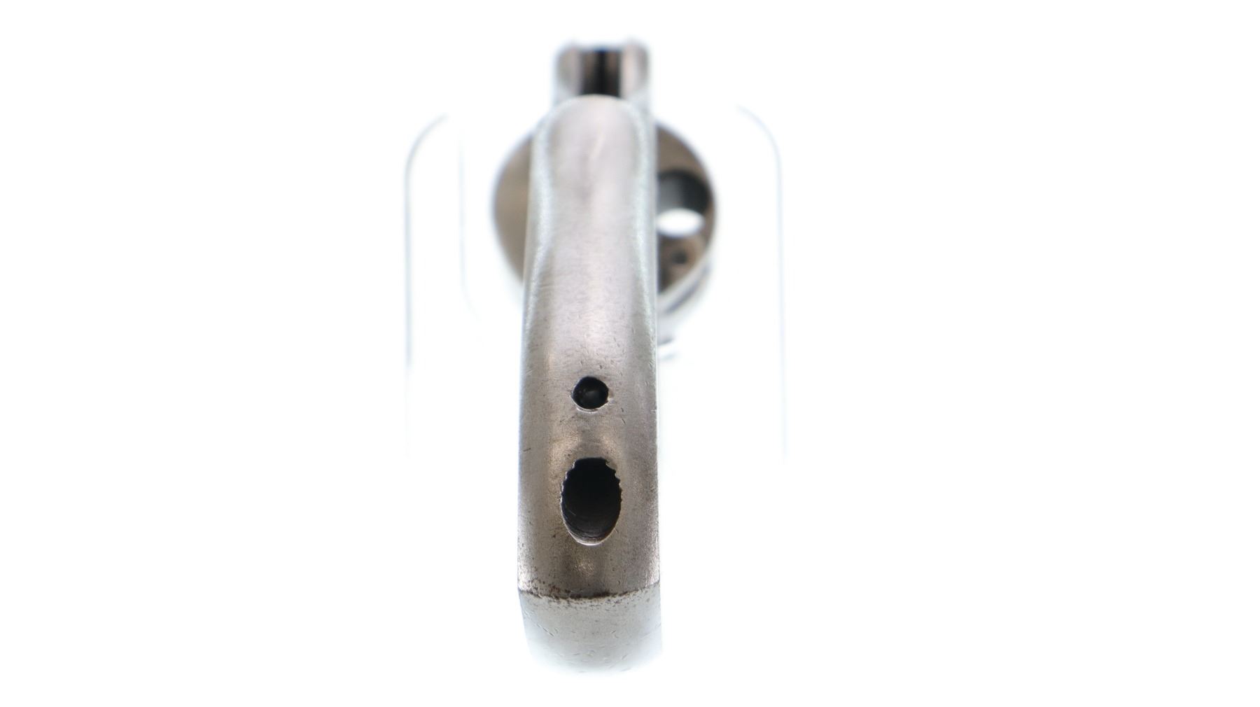 Wear: Metal finish turning silver grey with pitting, light rust speckles, scratches, handling marks and wear.