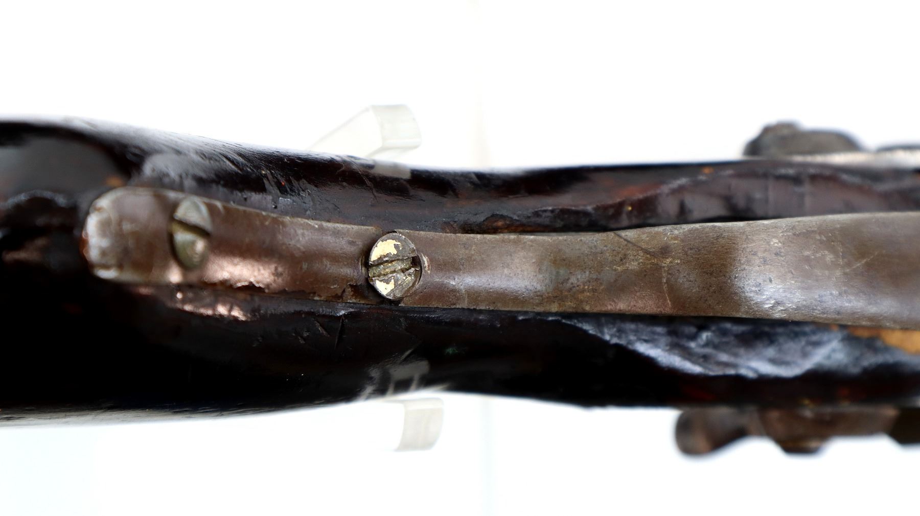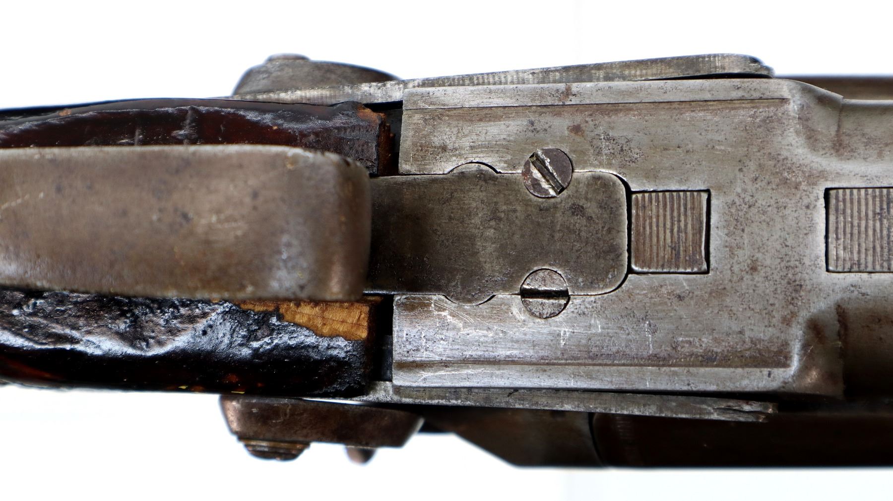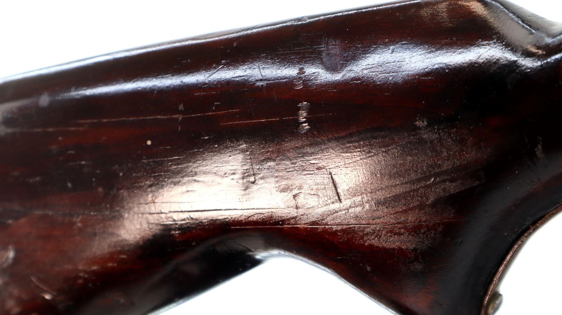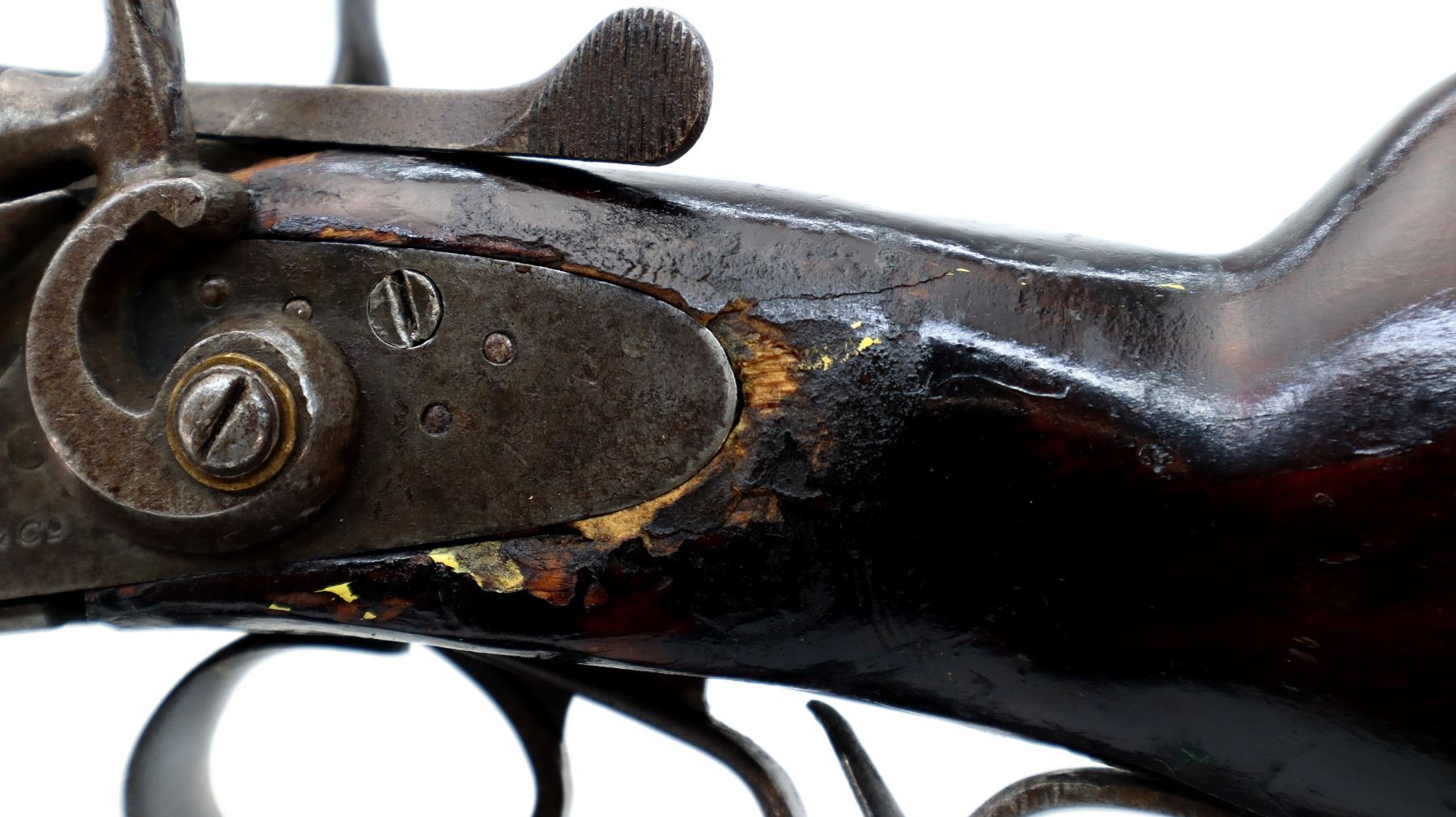 Wear: Metal finish turning brown with pitting, light rust spots, scratches, handling marks and wear. Stocks show marks and wear.