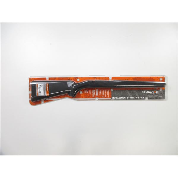 CHAMPION RUGER M77 RIFLE STOCK. (1) BLACK, SYNTHETIC, SOME CHECKERING, APPROX. OAL 31", SHORT ACTION, MODEL NO. 78046, LABEL MARKED "RUGER...