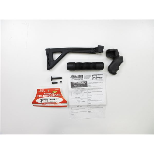 MOSSBERG 500 FOLDING STOCK, ETC. LOT. LOT INCLUDES; (1) BLACK POLYMER FOLDING STOCK, OAL APPROX. 12.75", (1) BLACK POLYMER FOREND, OAL APPROX. ...