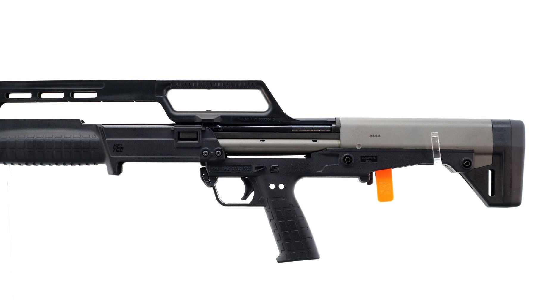 Main Description: May have been test fired in factory. Green fiber optic front bead, blued round barrel, Parkerized receiver with black polymer carrying handle/sighting rail, dual magtubes. Three piece black synthetic stocks, grooved forearm and pistol grip, black rubber recoil pad, magtube selector, ambit slide release