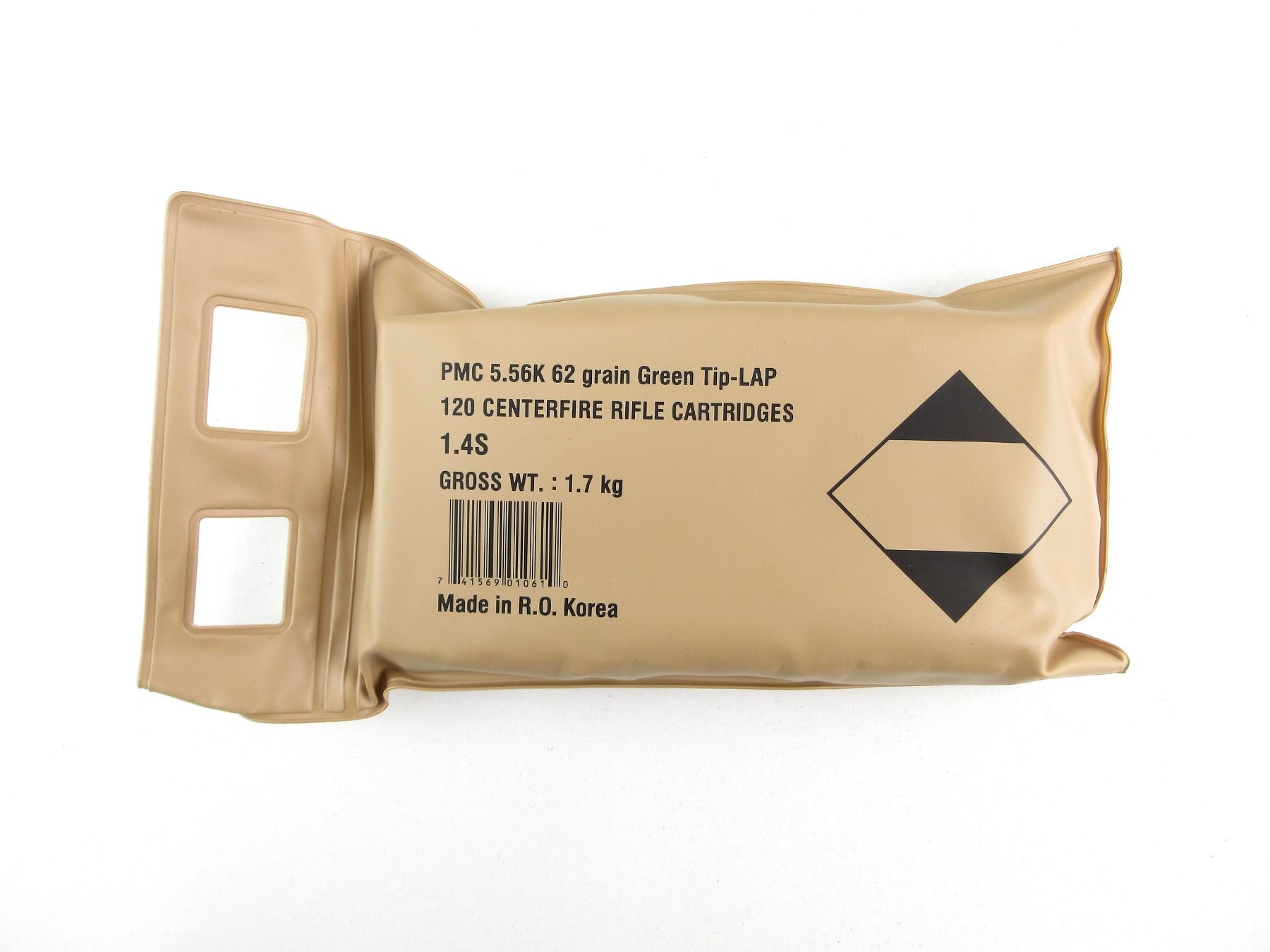 LOT INCLUDES; APPROX. (120) RNDS, 62 GRNS (STATED ON BAG NOT CONFIRMED), GREEN TIP-LAP, UNOPENED.