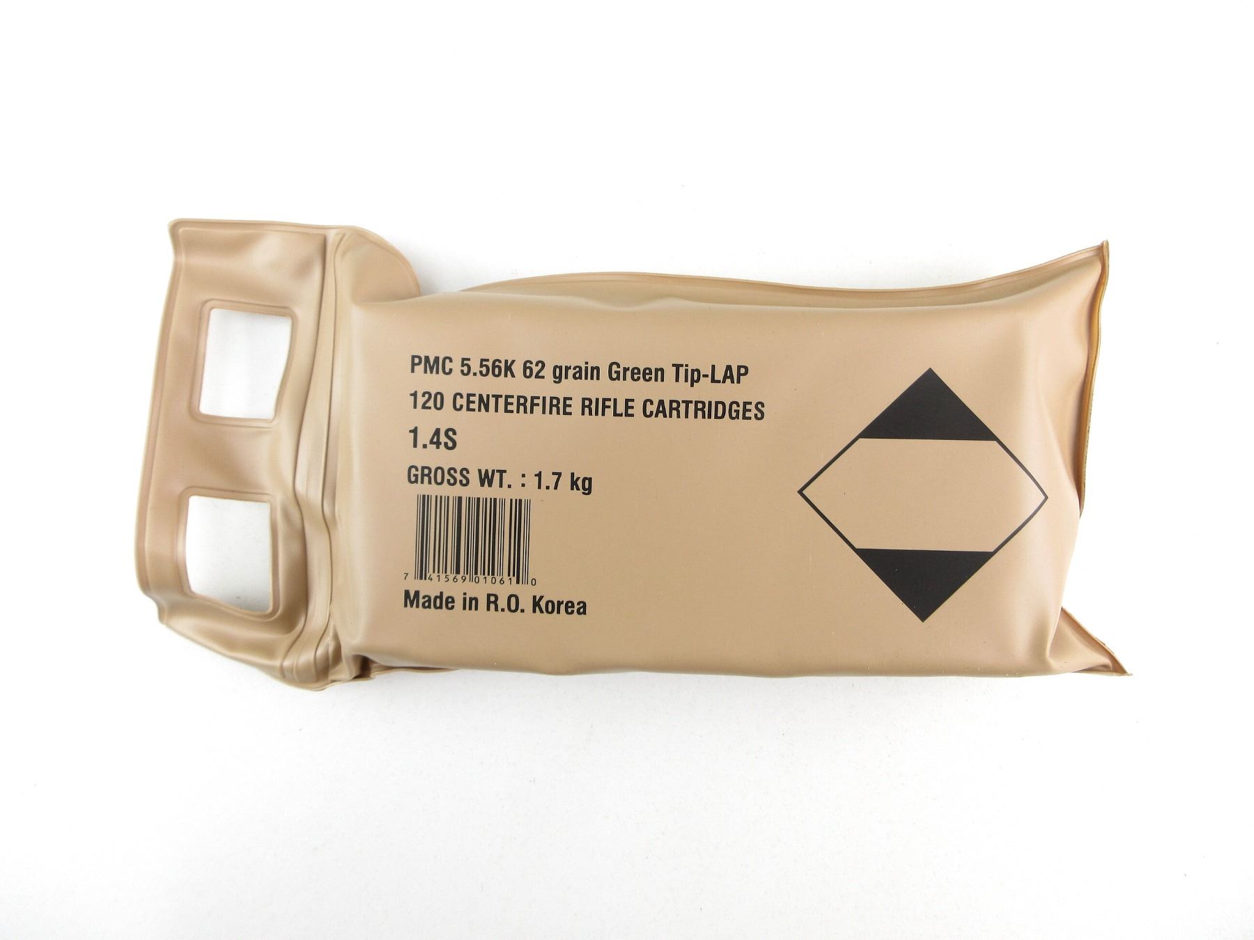 LOT INCLUDES; APPROX. (120) RNDS, 62 GRNS (STATED ON BAG NOT CONFIRMED), GREEN TIP-LAP, UNOPENED.