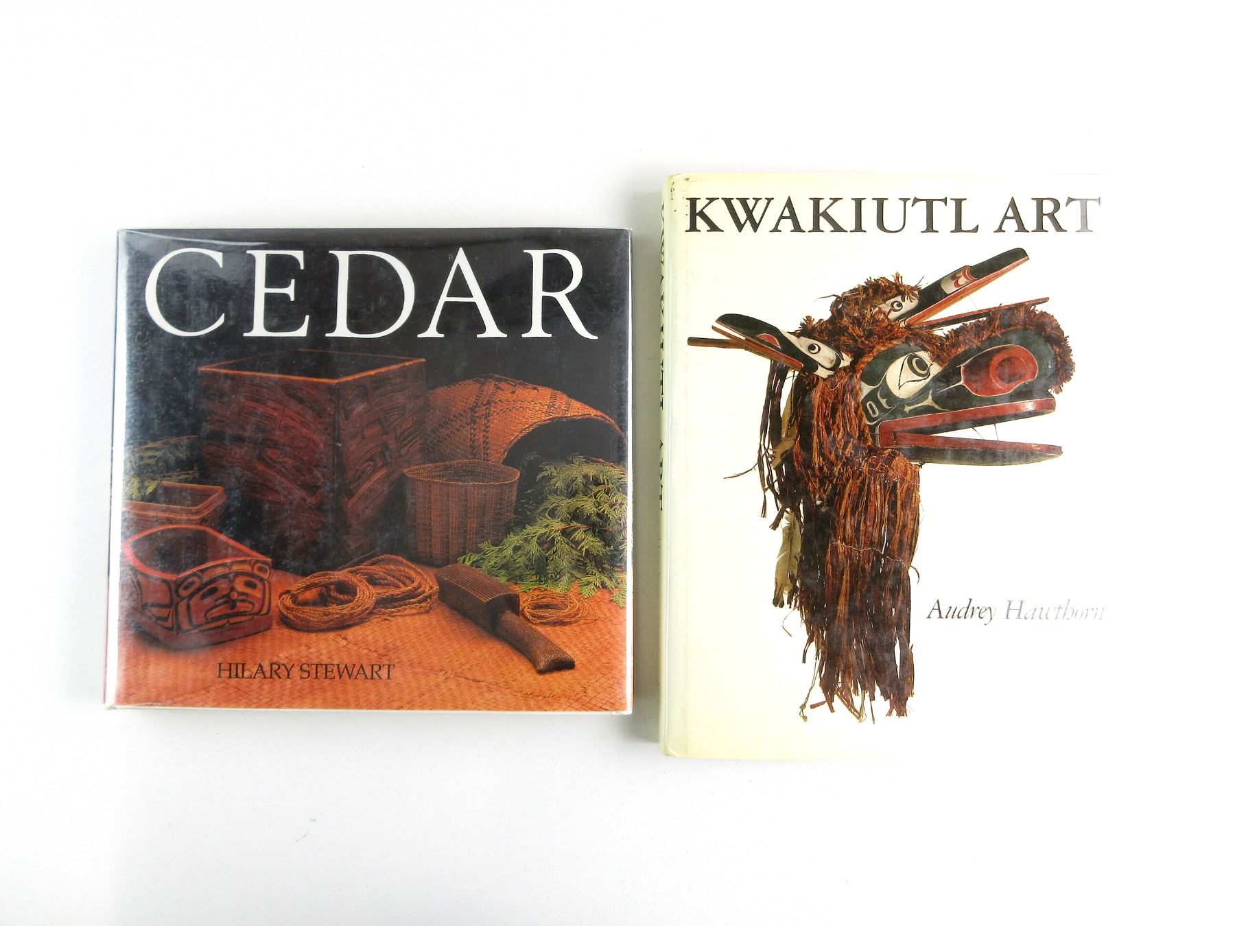 LOT INCLUDES; (1) "KWAKIUTL ART" BOOK BY AUDREY HAWTHORN, HARD COVER WITH DUST COVER, ISBN: 0-88894-239-7 & (1) "CEDAR" BOOK BY HILARY STEWART, HARD COVER WITH DUST COVER, ISBN: 0-88894-437-3. SEE PHOTOS.
