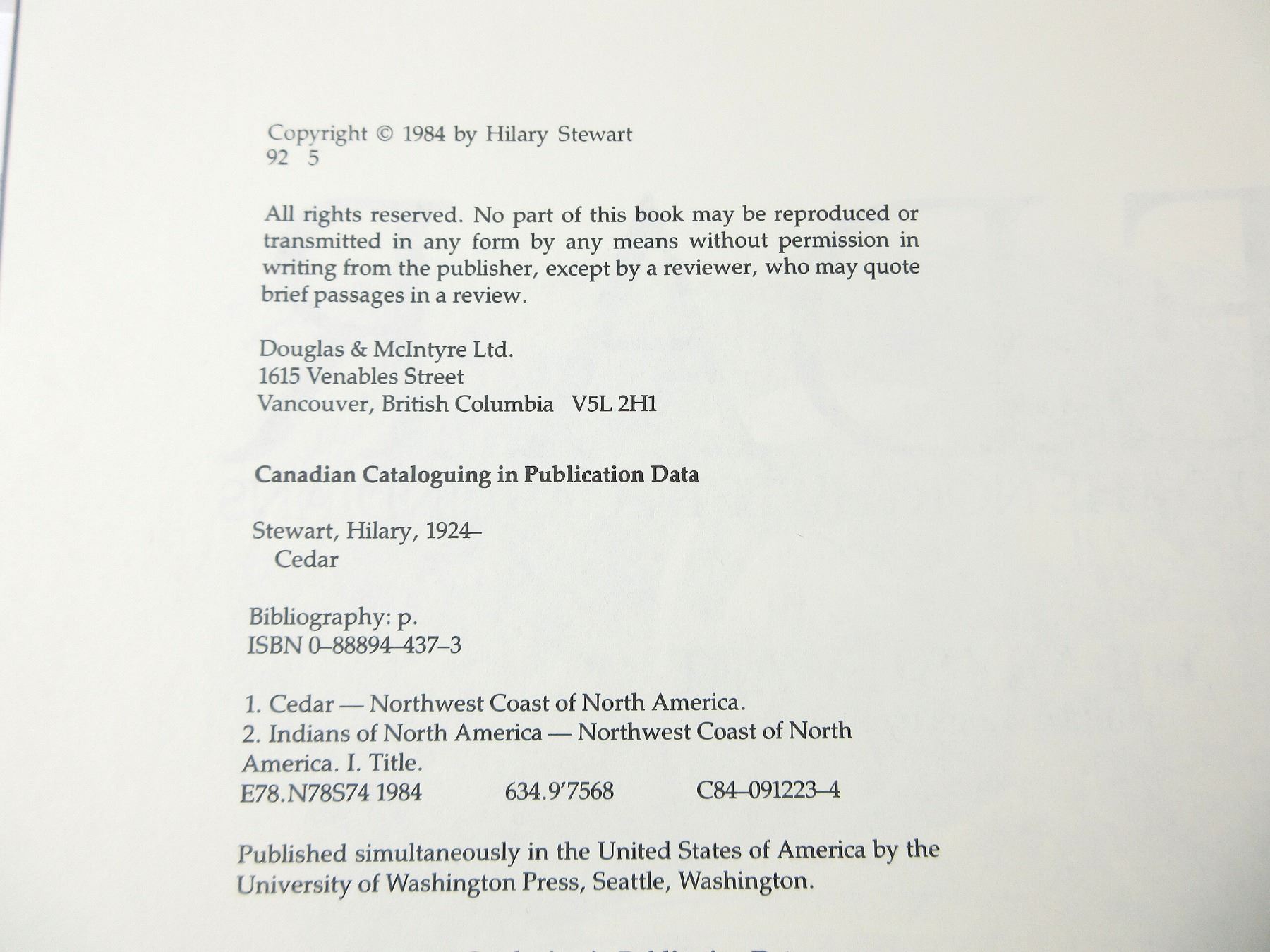 "KWAKIUTL ART" AND "CEDAR" BOOK LOT