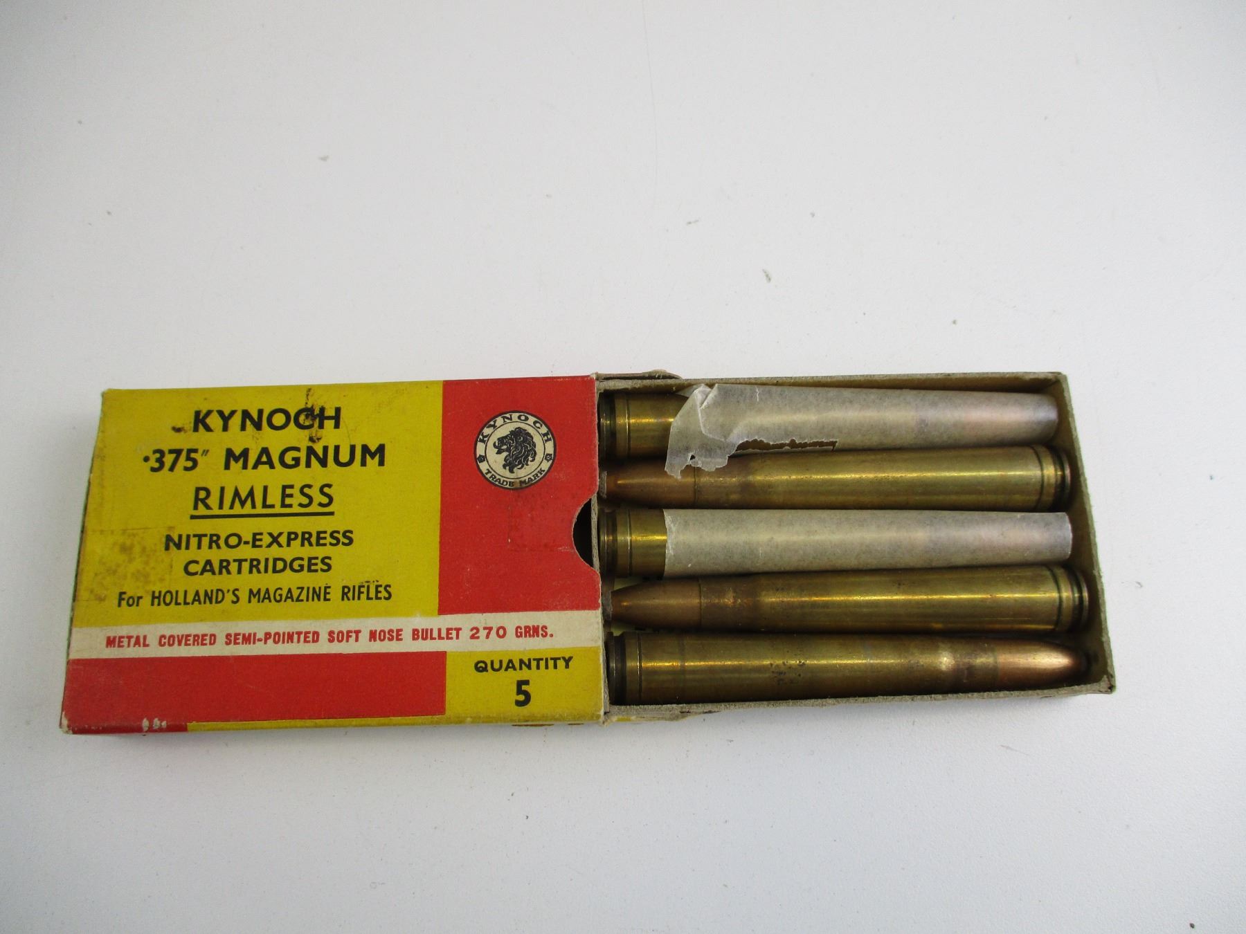 KYNOCH .375" MAGNUM RIMLESS COLLECTIBLE AMMO , 5 RNDS, IN COLLECTIBLE BOX