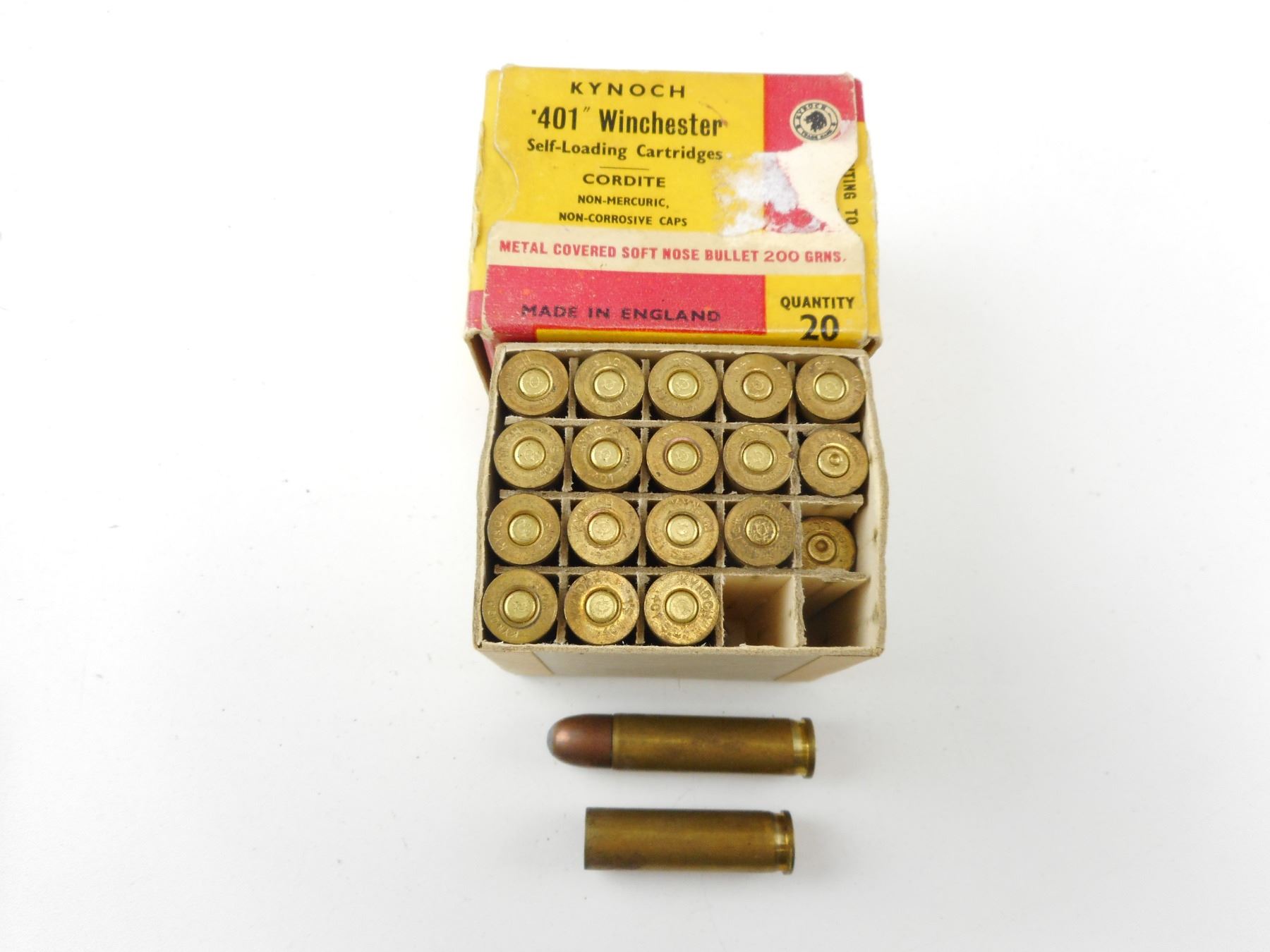 KYNOCH .401" WINCHESTER SELF-LOADING AMMO , 17 RNDS, 3 BRASS