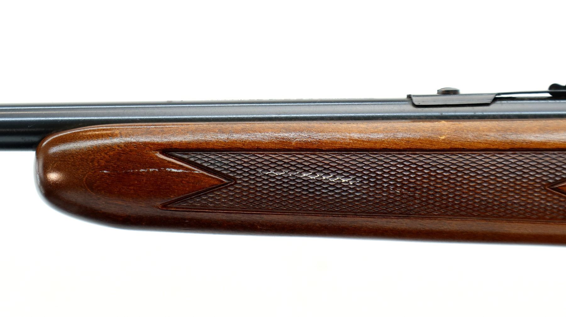 Main Description: Blade front sight, adjustable u notched rear sight, blued finish, grooved receiver. One piece wood stock, checkered forearm and pistol grip, raised comb, checkered black polymer butt plate, retains partial factory sticker.