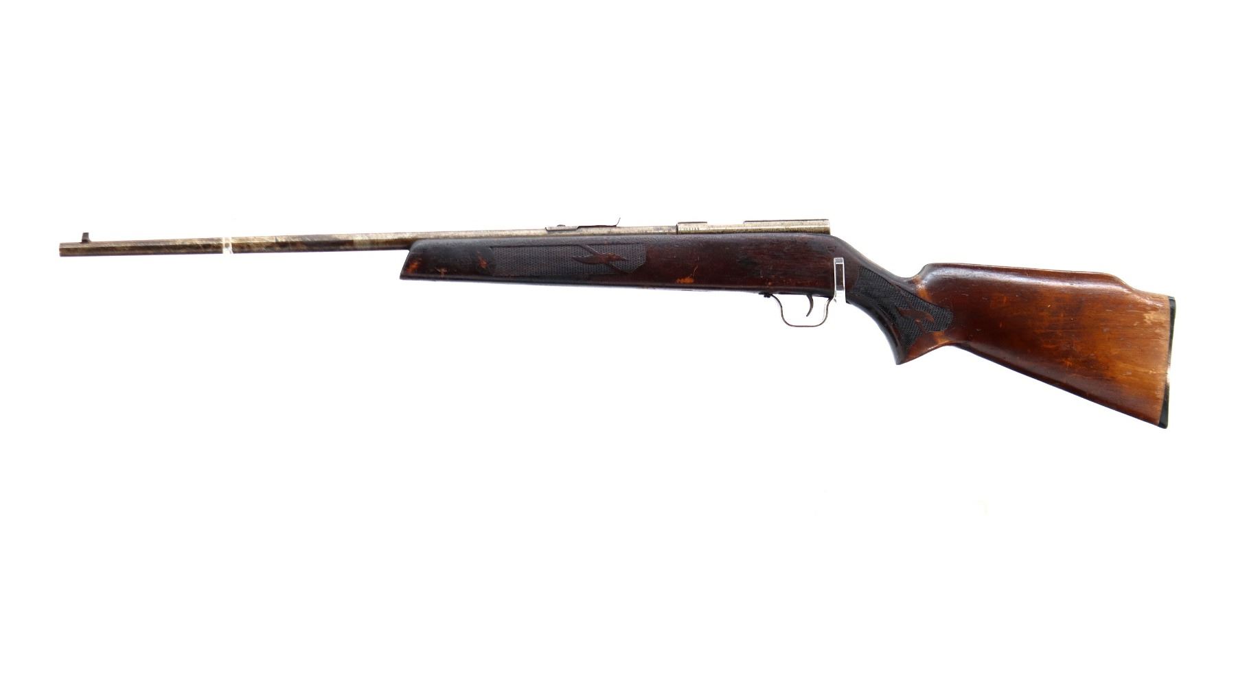 Wear: Metal finish turning silver grey with pitting, rust, black paint, handling marks and wear. Stock shows marks, scratches and wear.