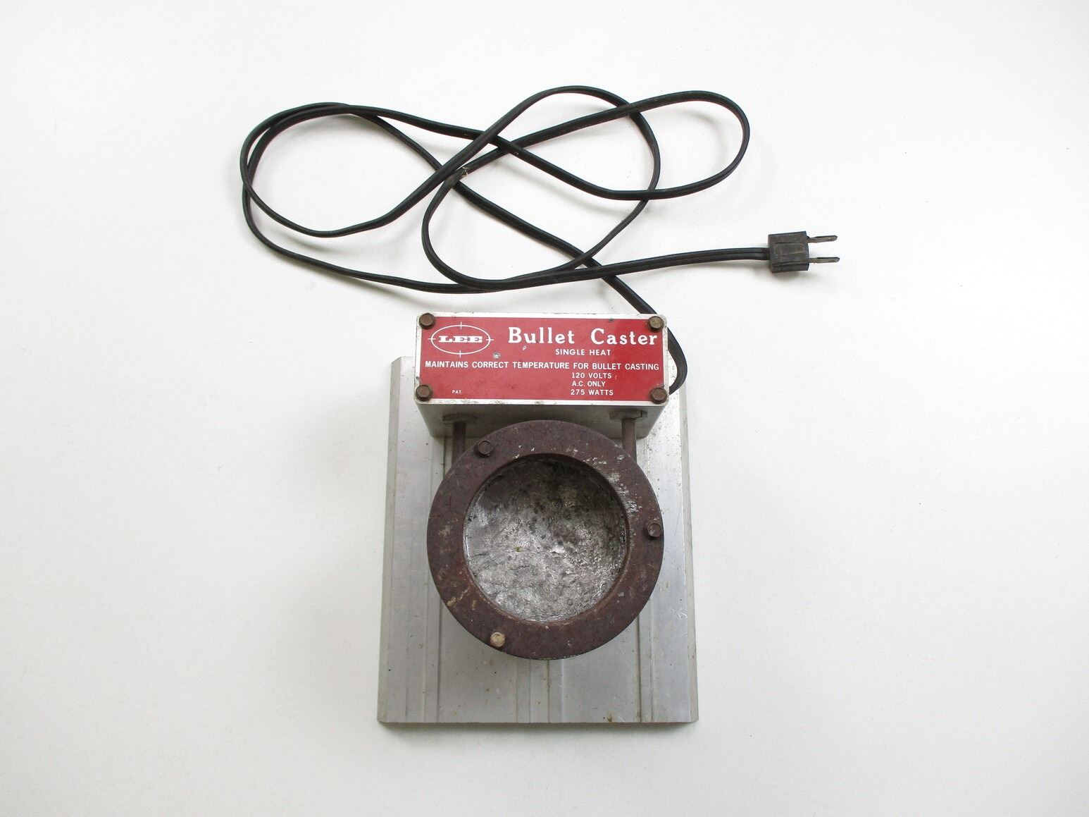 LEE BULLET CASTER LEAD MELTING POT LOT INCLUDES; (1) MELTING POT, MARKED: "BULLET CASTER SINGLE HEAT", "275 WATTS", ETC., UN-TESTED. SEE PHOTOS.