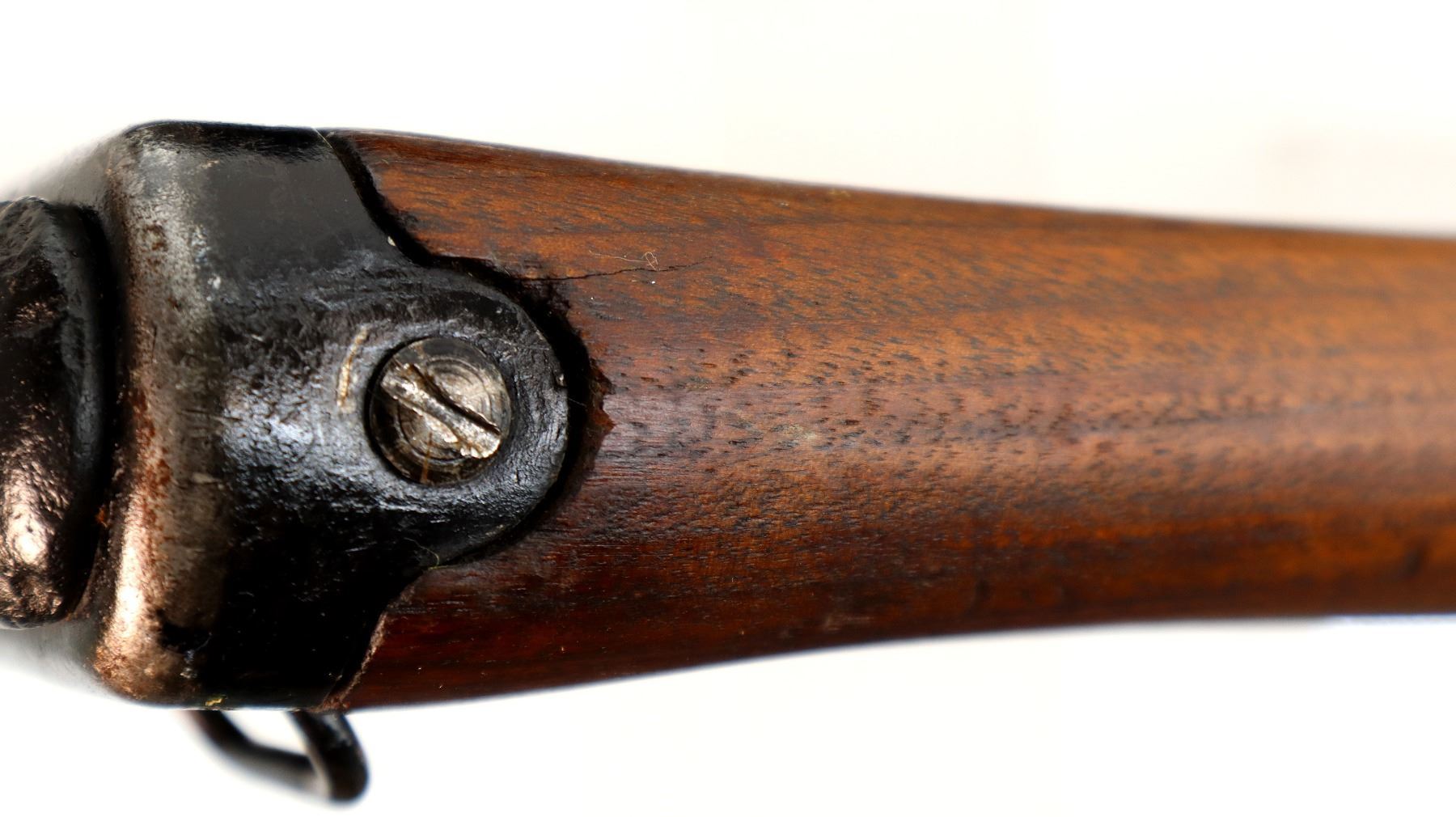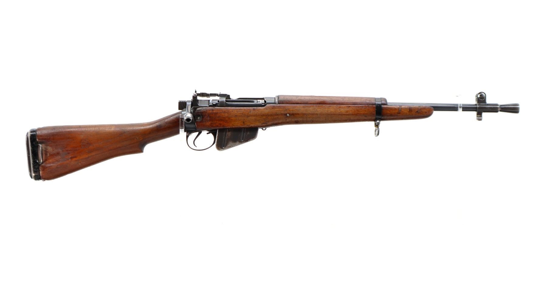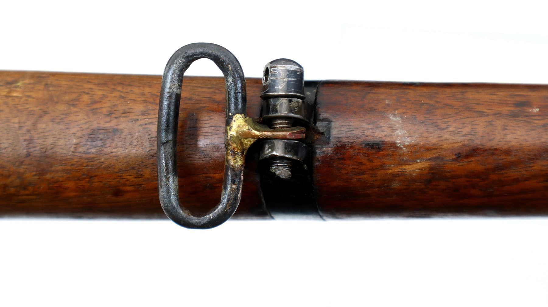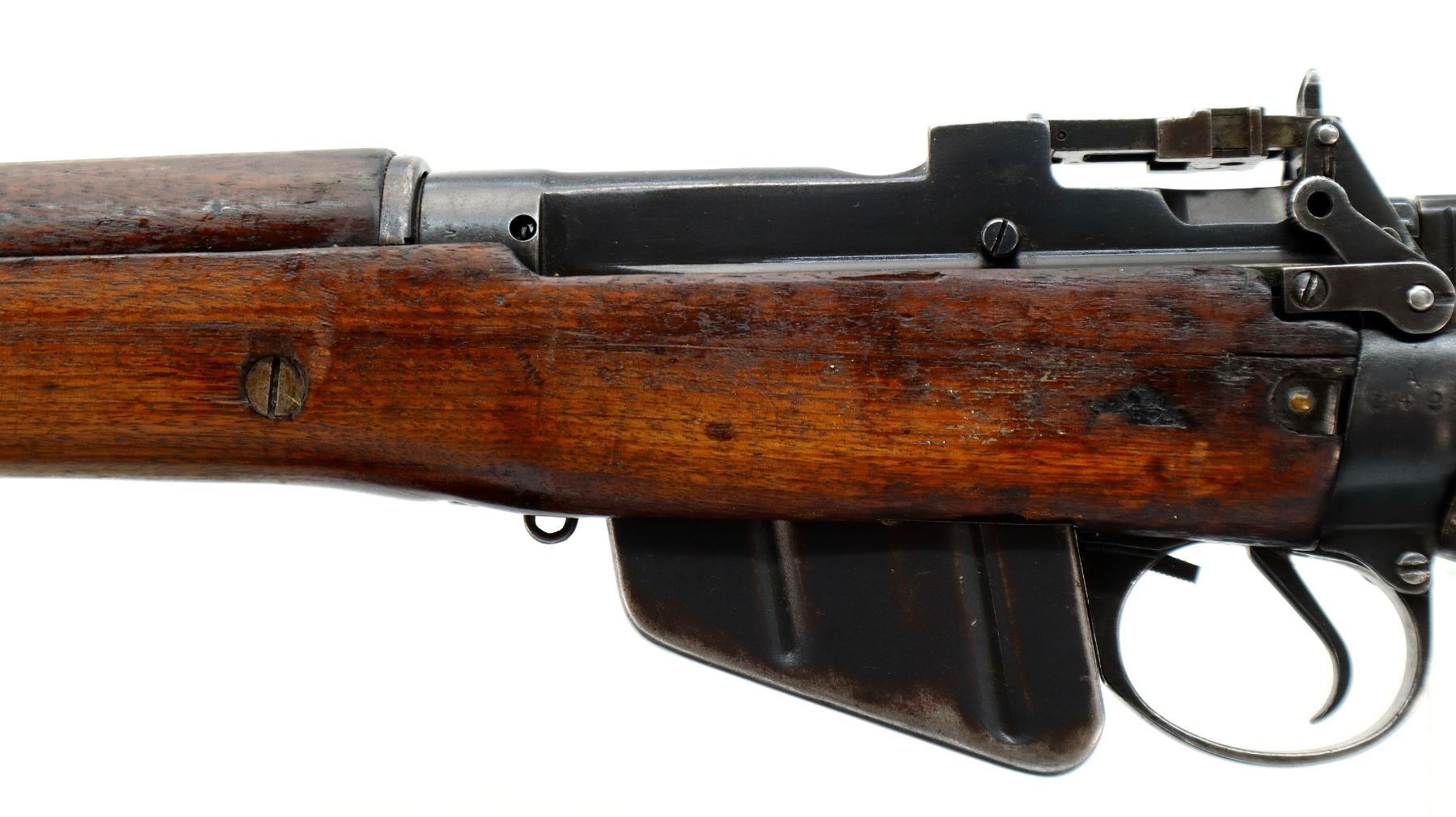 Main Description: No visible Manufacture, bolt numbered to match. Blade front sight with ears and ramp, adjustable milled 800yrd rear peep sight, blued finish. Three piece full Military wood stocks, forend tip has arsenal repair, forearm has Ishapore screw, cracked on left side, chipped on right side, pistol grip, black rubber recoil pad, sling swivels, flashider with integral bayonet lug.
