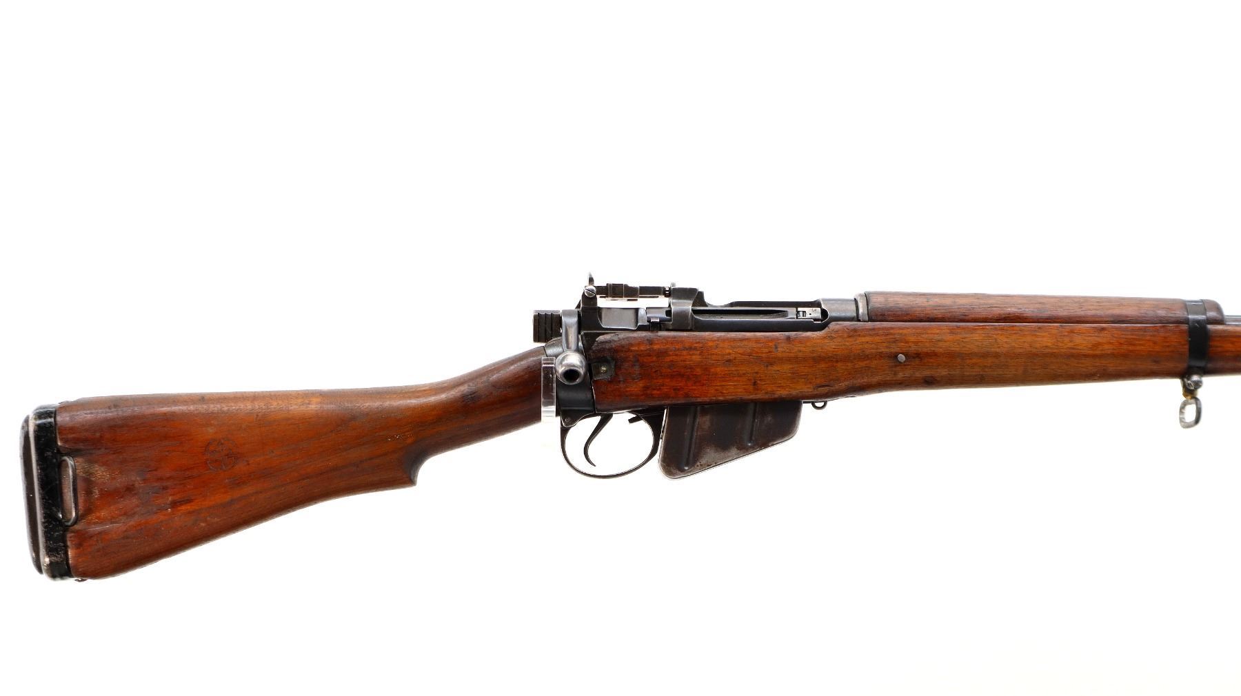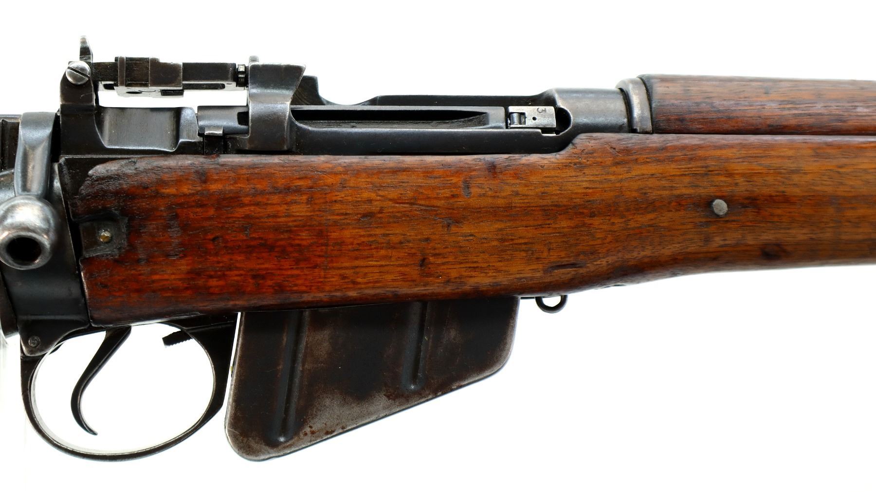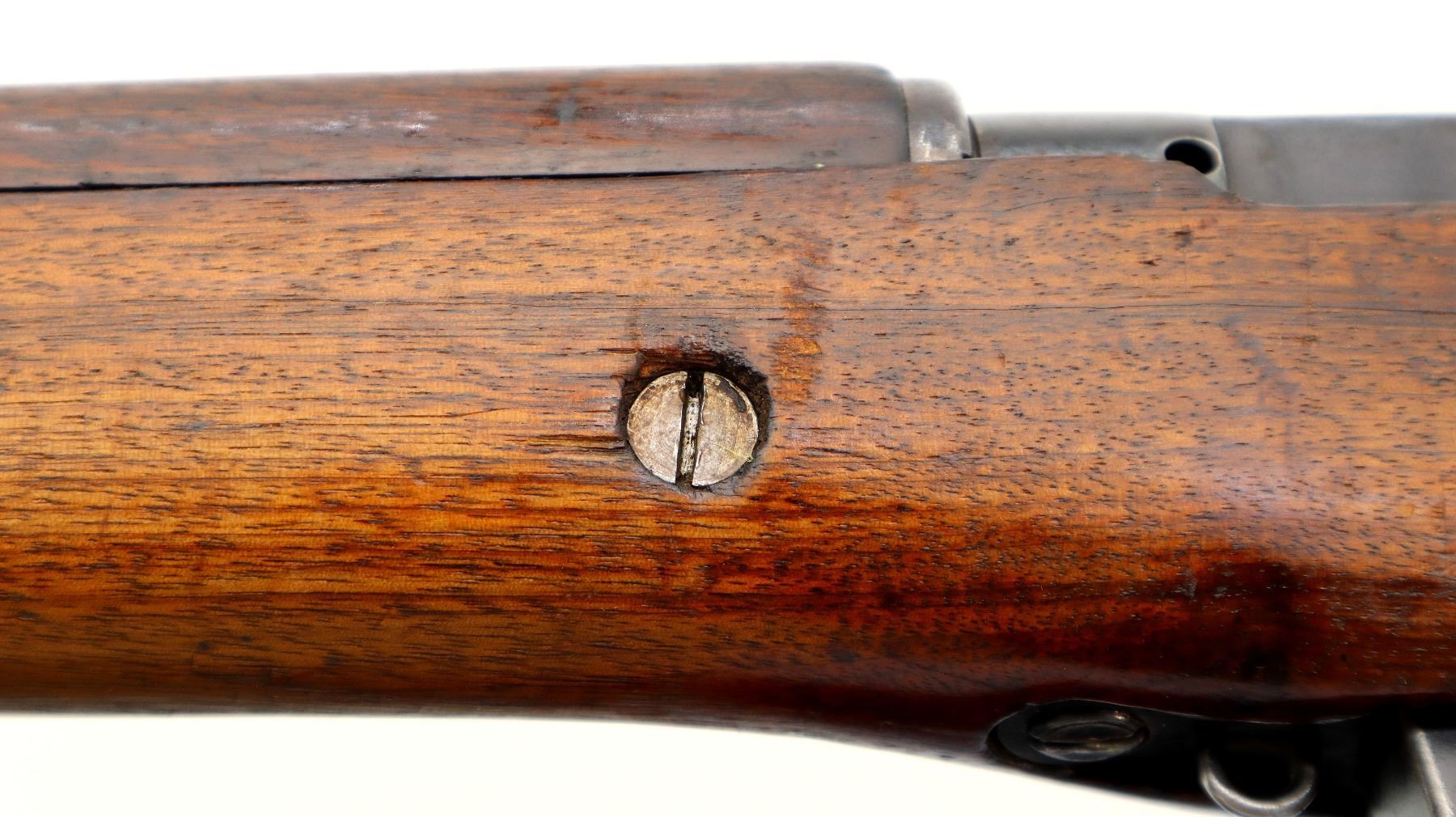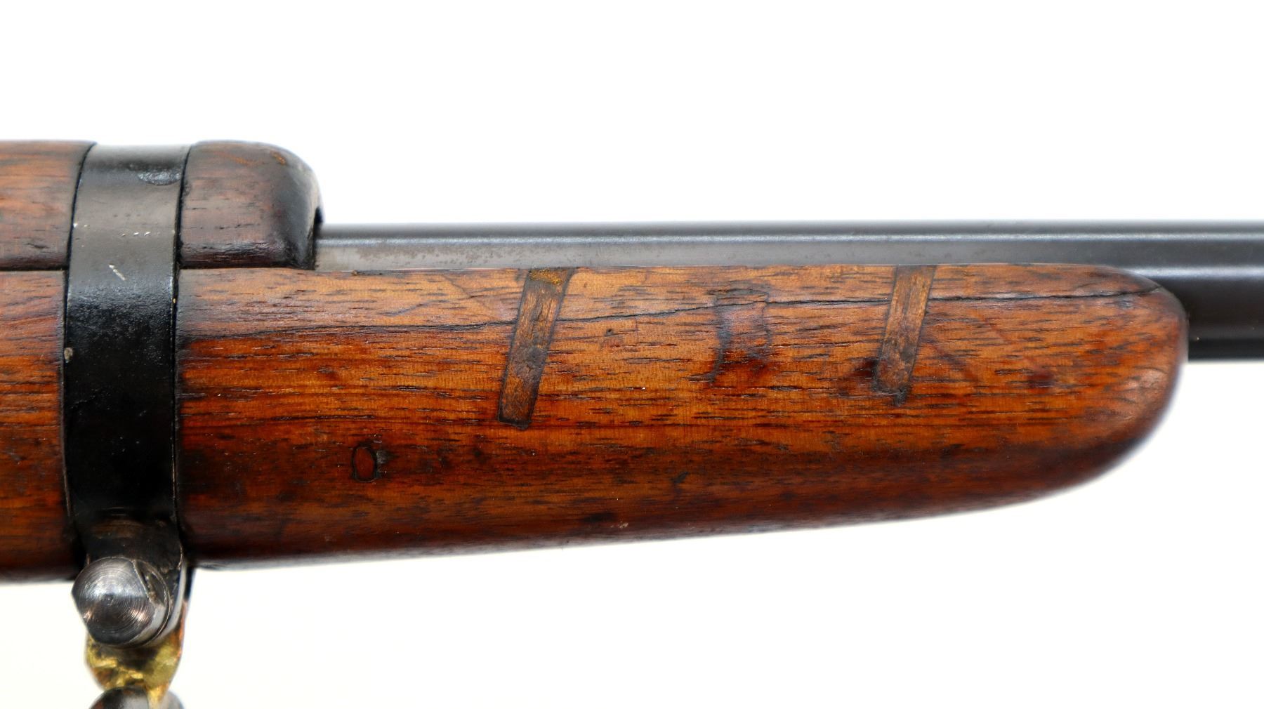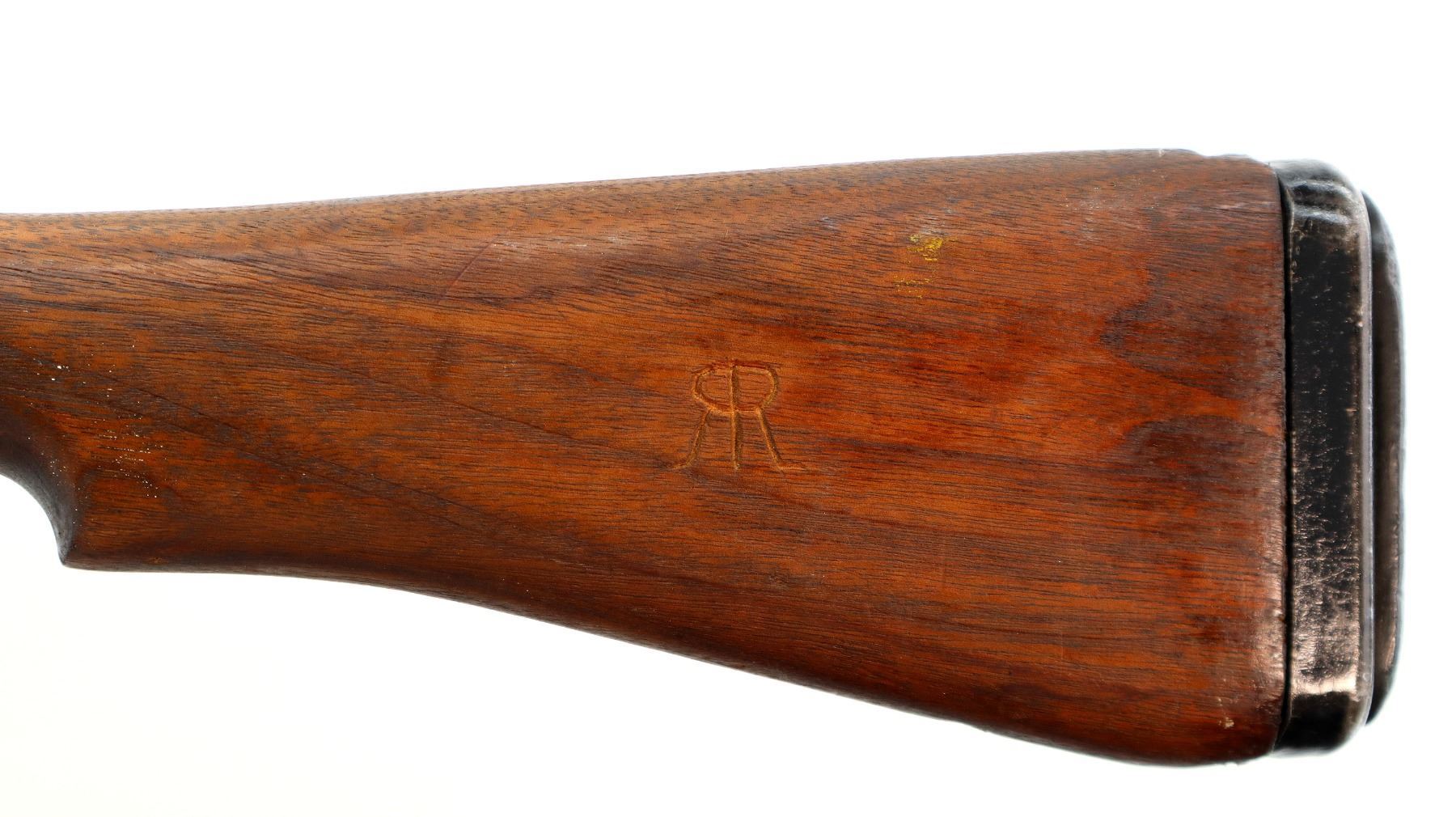 Main Description: No visible Manufacture, bolt numbered to match. Blade front sight with ears and ramp, adjustable milled 800yrd rear peep sight, blued finish. Three piece full Military wood stocks, forend tip has arsenal repair, forearm has Ishapore screw, cracked on left side, chipped on right side, pistol grip, black rubber recoil pad, sling swivels, flashider with integral bayonet lug.