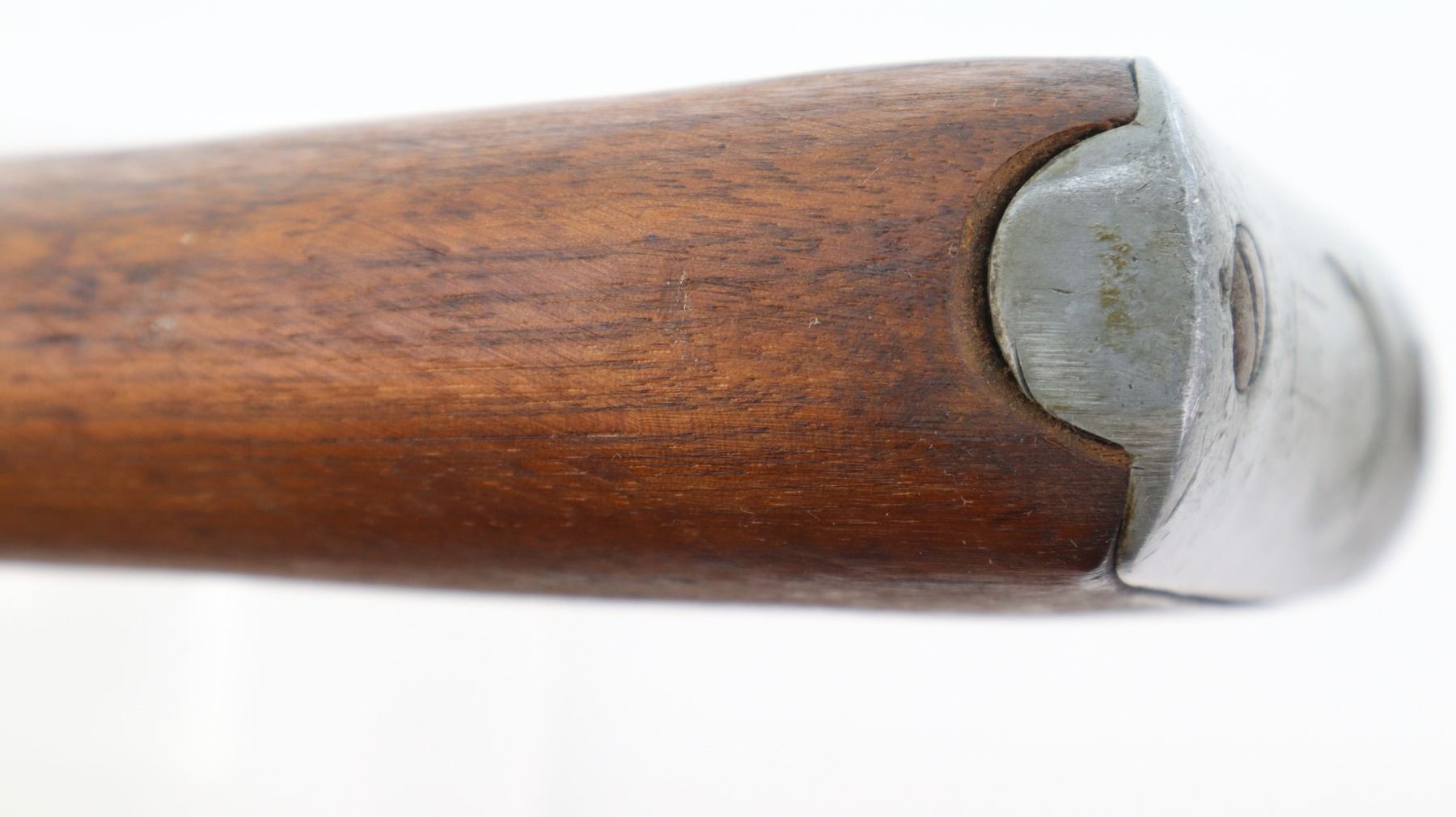 Main Description: Manufactured by Long Branch 1945, bolt numbered 74L218. This rifle has been assembled from a NOS receiver which was unnumbered from Military stores. Blade front sight with ears and ramp, adjustable folding rear peep sight, blued metal finish, missing ejector screw. Four piece full military wood stocks, grooved rear handguard, pistol grip, grey alloy butt plate with trap and two black polymer oilers, left side of stock has New Zealand property marks, correct magazine marked 22 with single shot follower and spring, three sling swivels with P37 canvas web sling marked Woods MFG Co Ltd 1941 with C-Broad Arrow.