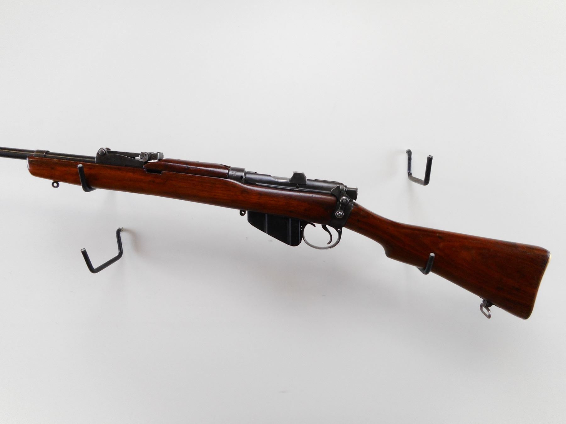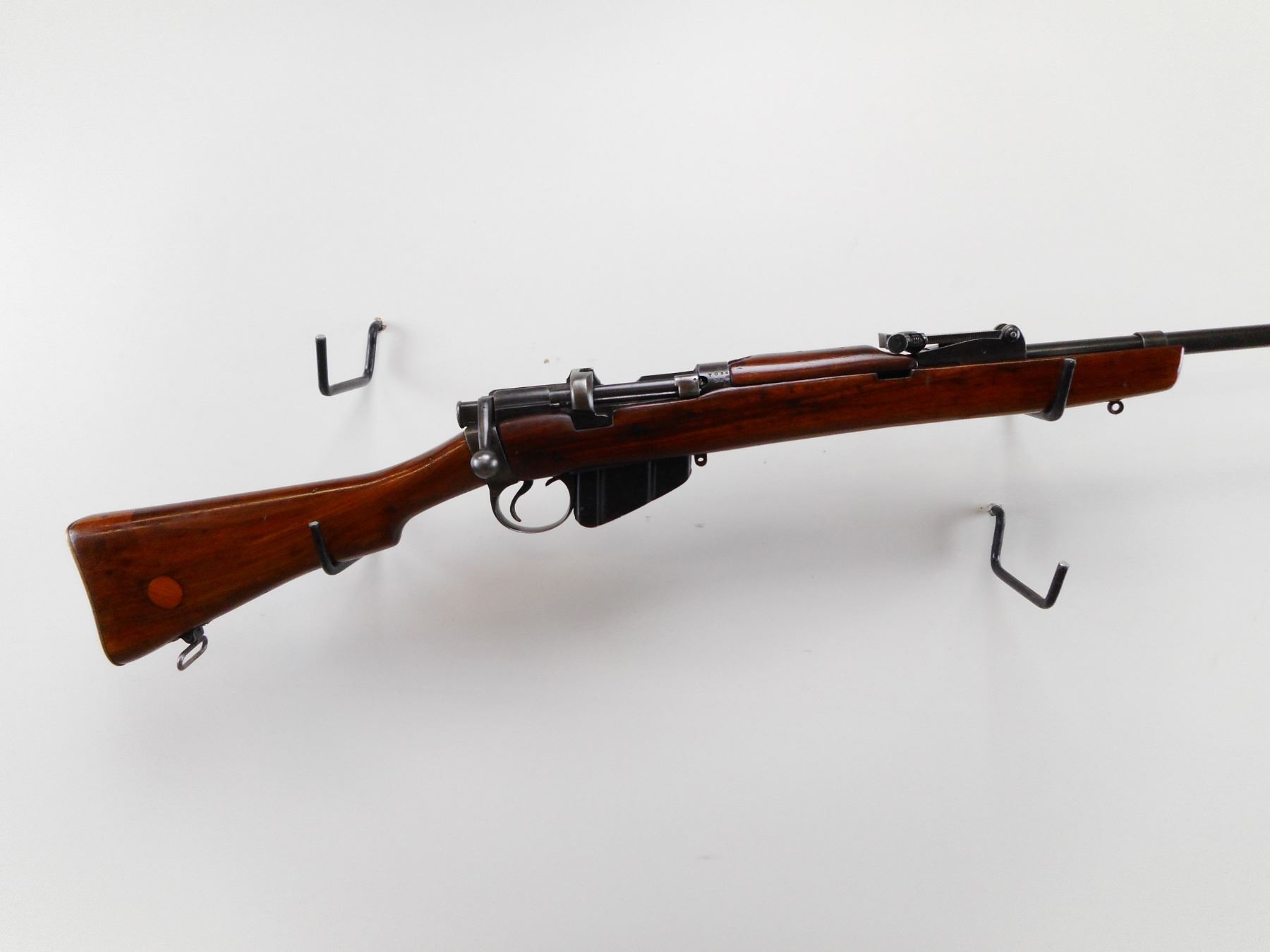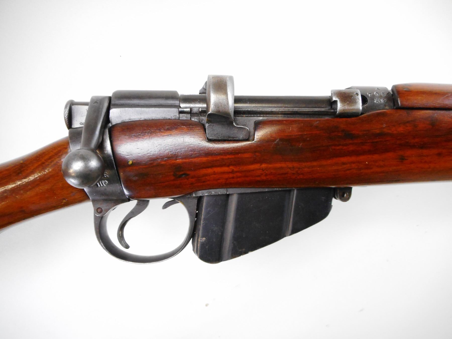 LEE ENFIELD , MODEL: NO. I MK III SPORTER , CALIBER: 303 BR , COMES WITH MAGAZINE. BORE IS VERY GOOD. SERIAL #'S DON'T MATCH. MANUFACTURED BY ENFIELD 1916. FRONT SIGHT. U NOTCH ADJUSTABLE REAR SIGHT. THREE PIECE SMOOTH WOOD STOCKS. BRASS BUTT PLATE. BLUEING SHOWS HANDLING MARKS. LIGHT RUST SPECKLES. WOOD SHOWS SCRATCHES, DINGS AND HANDLING MARKS. , SERIAL # A7034 , ACTION: BOLT ACTION RIFLE , BARREL LENGTH: 25" , CONDITION: 5/10 , CLASS: CANADIAN NON RESTRICTED CLASS