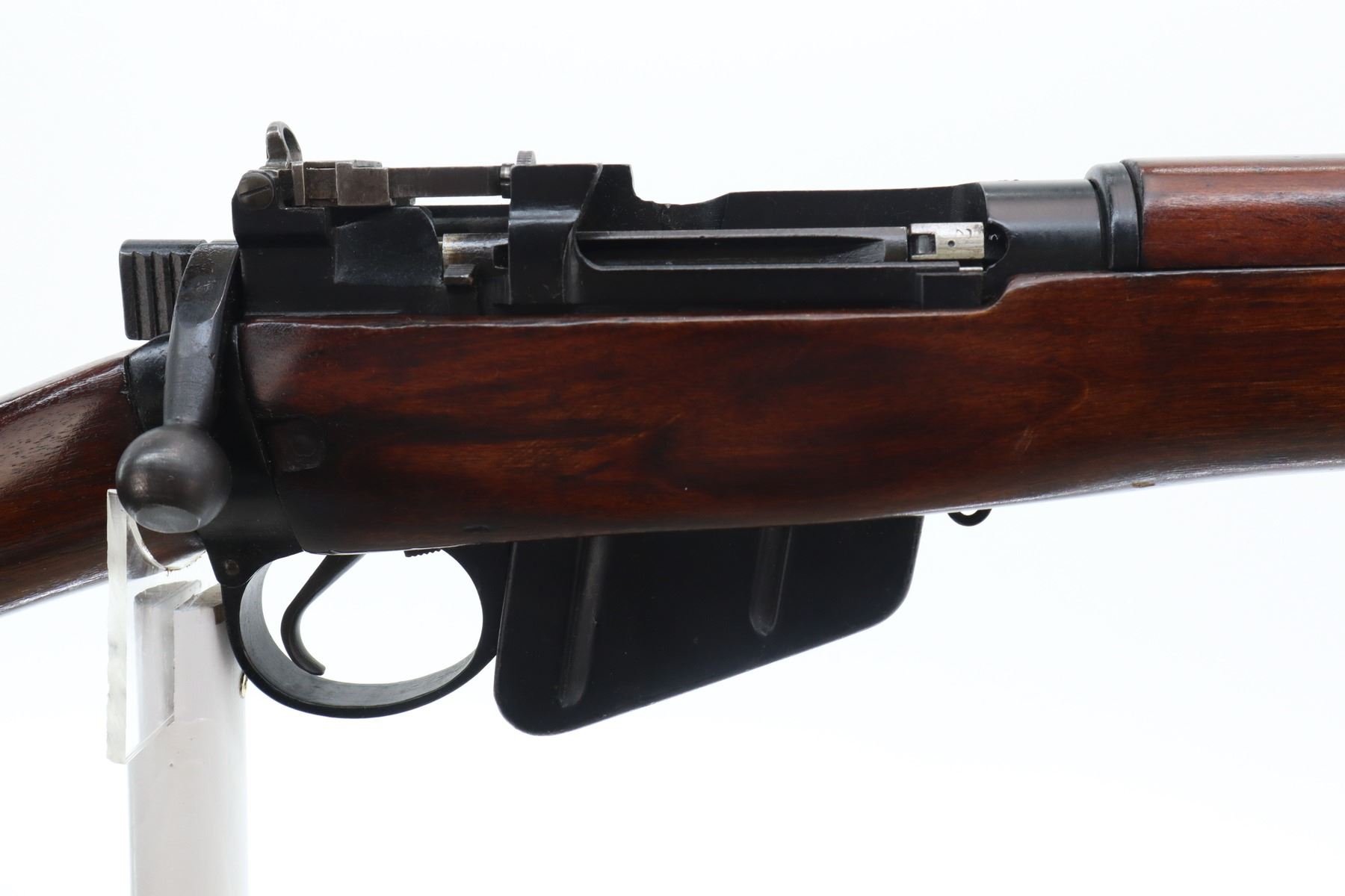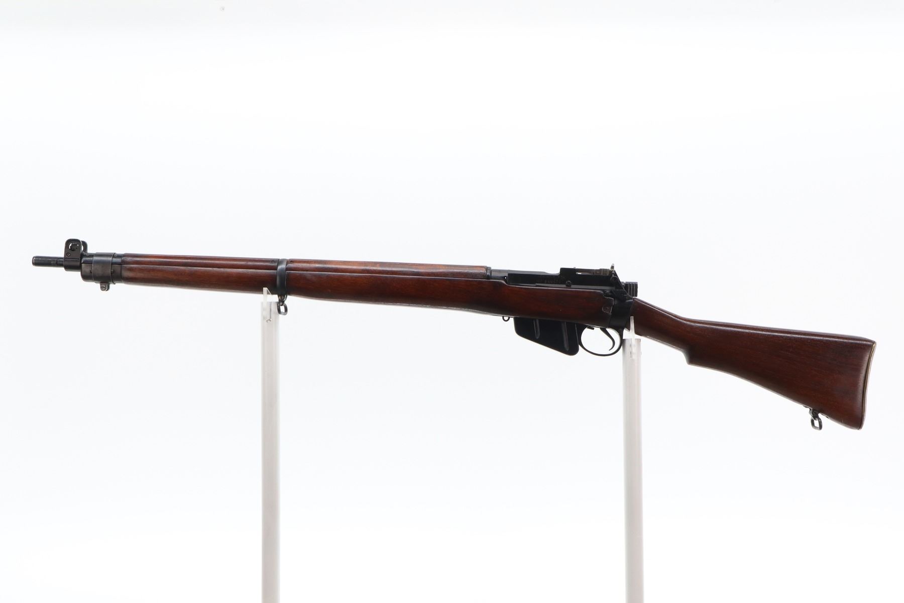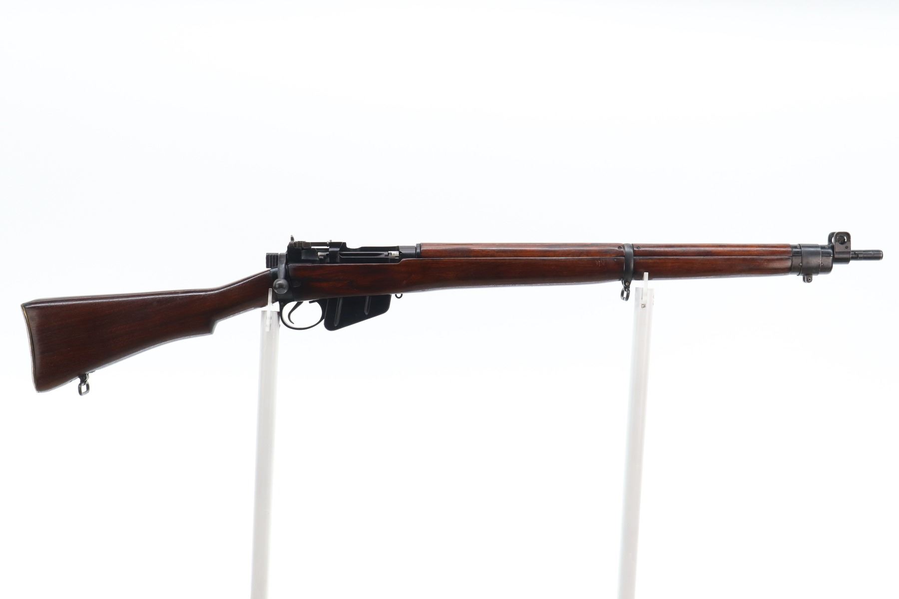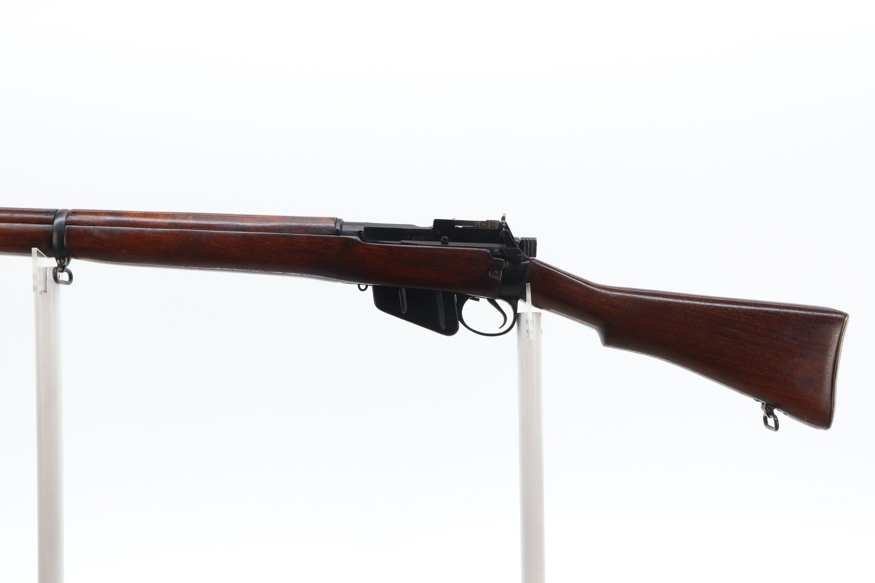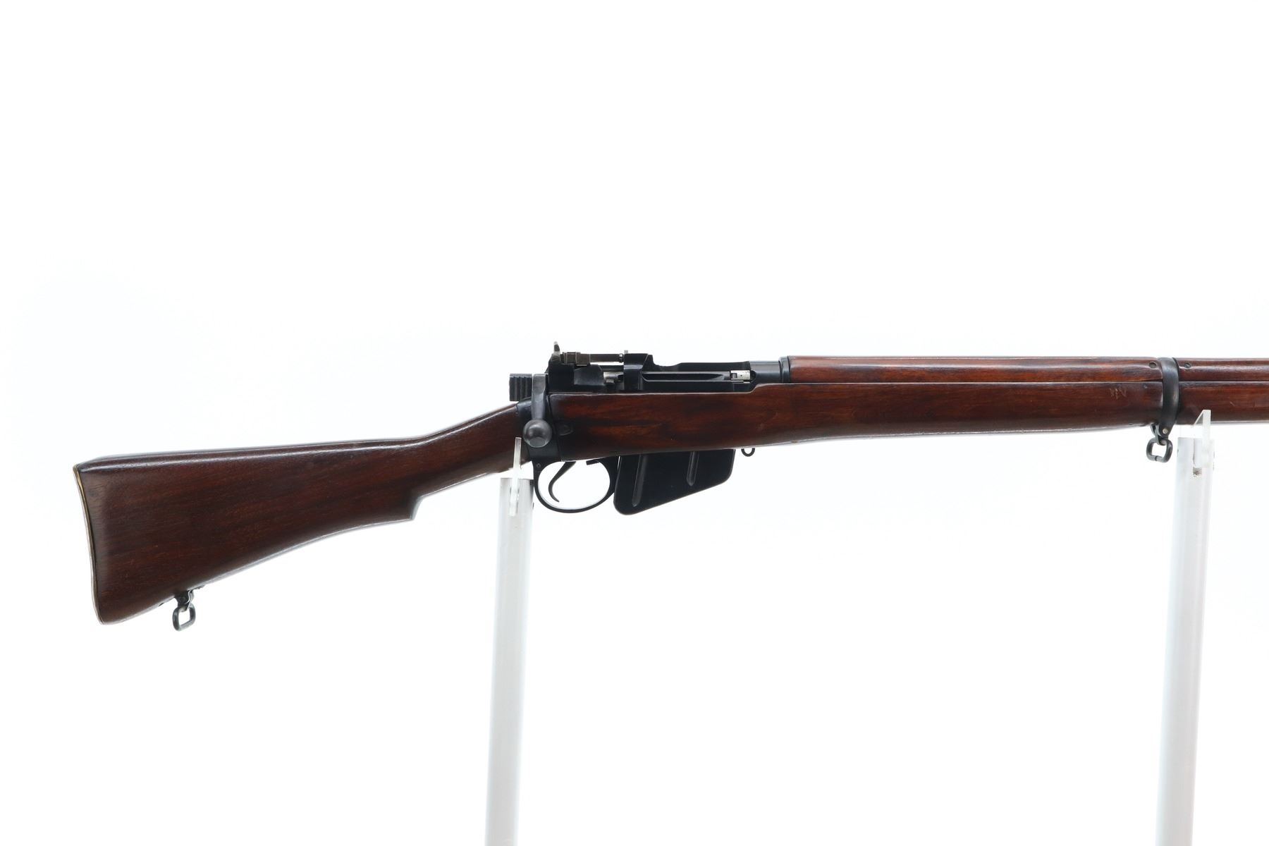 7/10 , LEE ENFIELD , MODEL: NO4 MK1 , CALIBER: 303 BR , COMES WITH MAGAZINE , BORE IS GOOD, SHINY. MANUFACTURED BY M/45 REBUILT BY FAZAKERLEY 47. BOLT MISMATCHED. BLADE FRONT SIGHT WITH EARS, MILLED 800 YD REAR PEEP SIGHT. FOUR PIECE FULL MILITARY STOCK, BRASS BUTT PLATE WITH TRAP, SLING SWIVELS, BAYONET LUGS. METAL FINISH SHOWS SOME SCRATCHES, HANDLING MARKS AND WEAR. STOCK SHOWS DINGS, SCRATCHES AND FINISH WEAR. , ACTION: BOLT ACTION RIFLE , BARREL LENGTH: 25.25" , SERIAL: BX18474 , CONDITION: 7/10 , CLASS: CANADIAN NON RESTRICTED