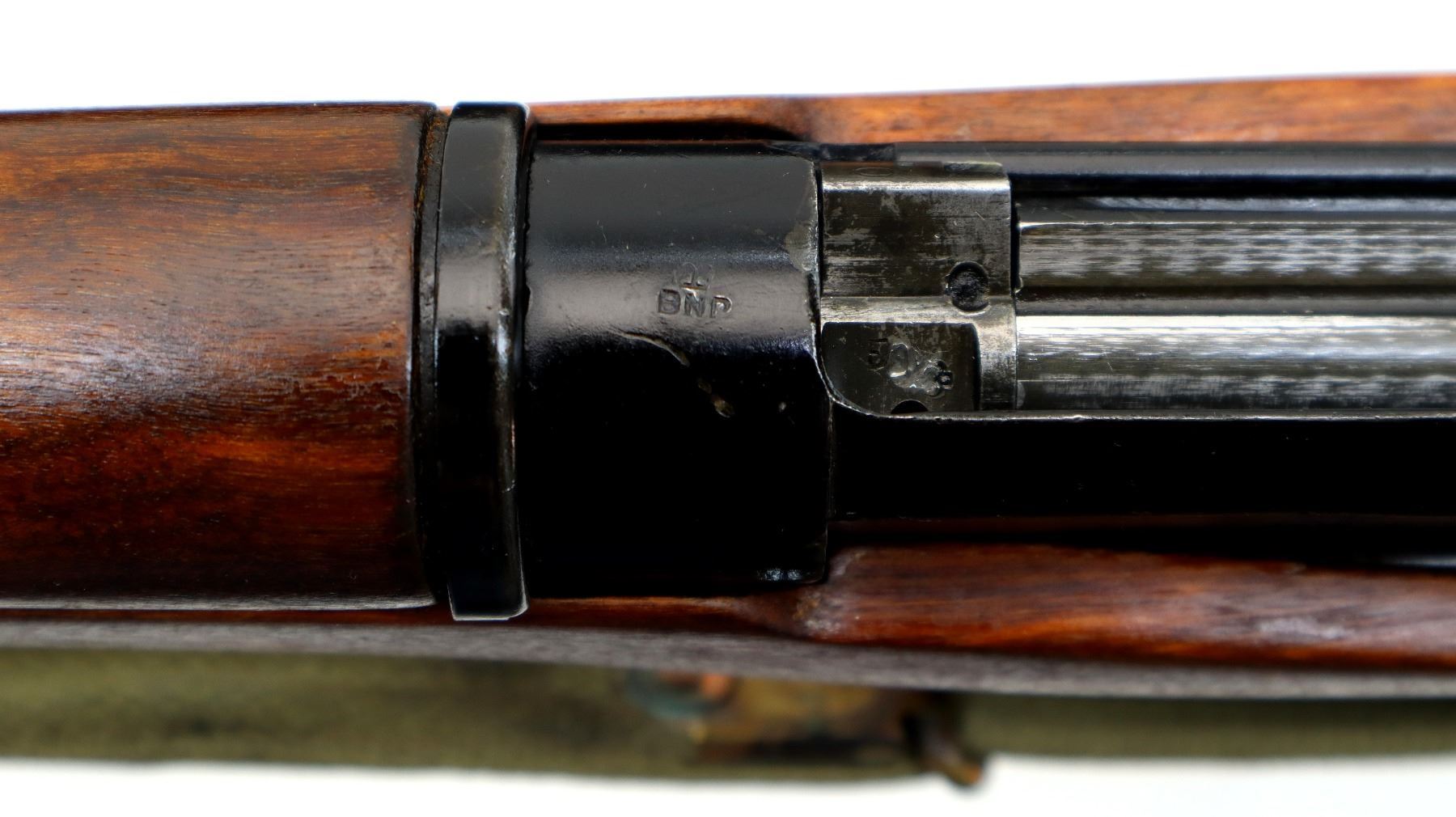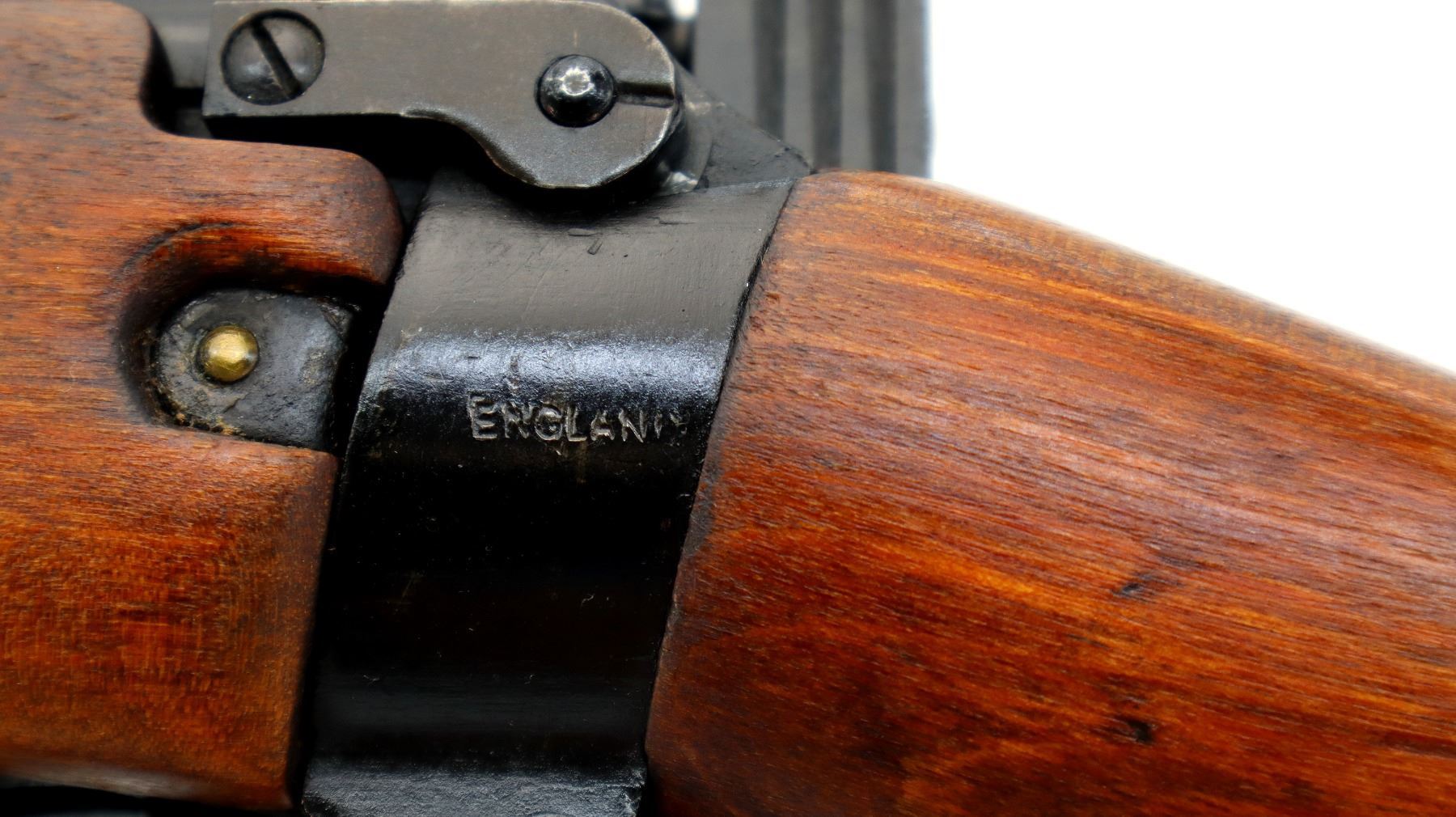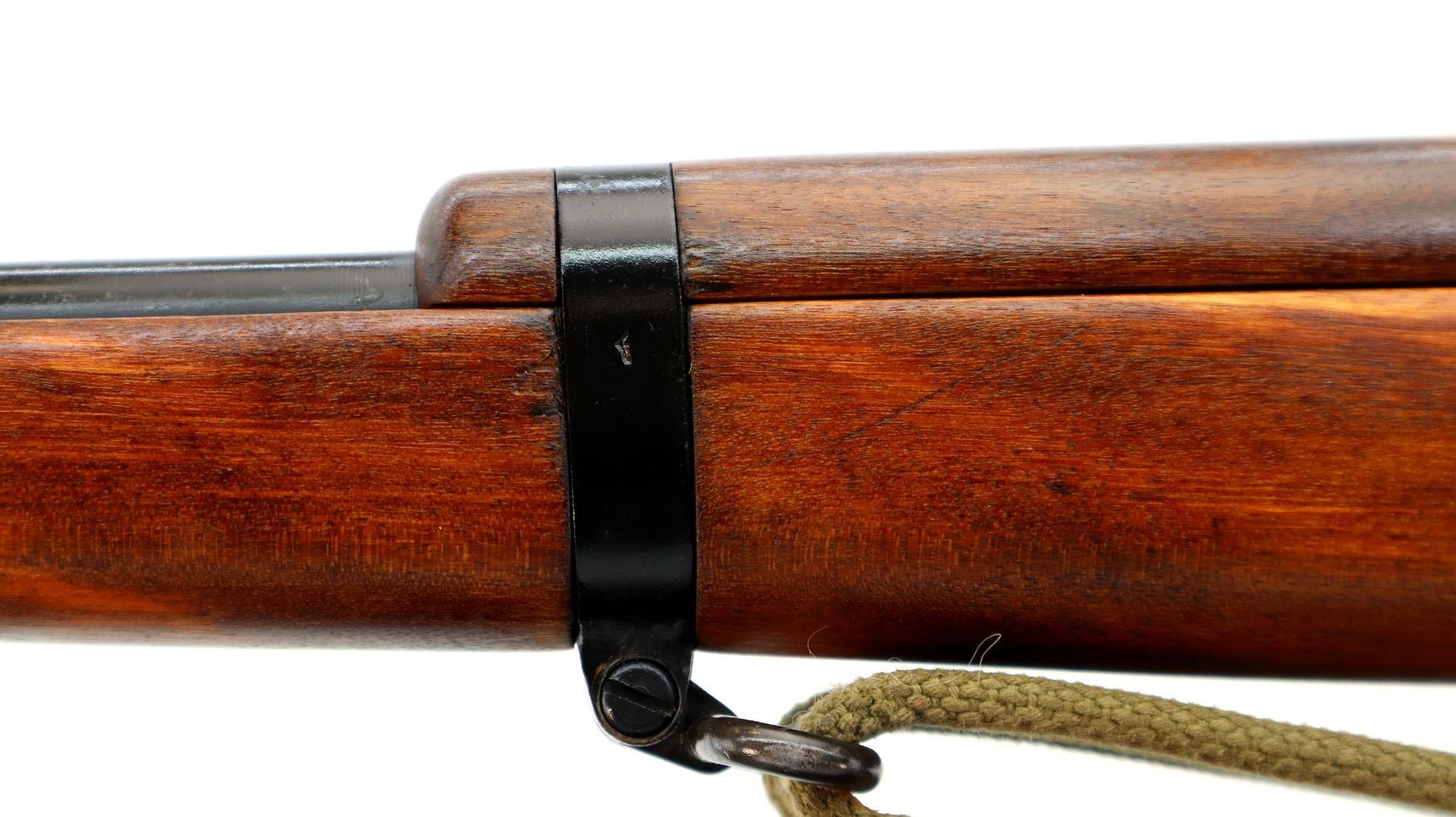 Main Description: Manufactured by Fazakerley 5/46, visible numbers match. Blade front sight with ears and ramp ears are bent, adjustable milled 800yrd rear peep sight, black painted metal finish. Three piece full military wood stocks, pistol grip, black rubber recoil pad, sling swivels with P37 canvas web sling, flashider with integral bayonet lug.