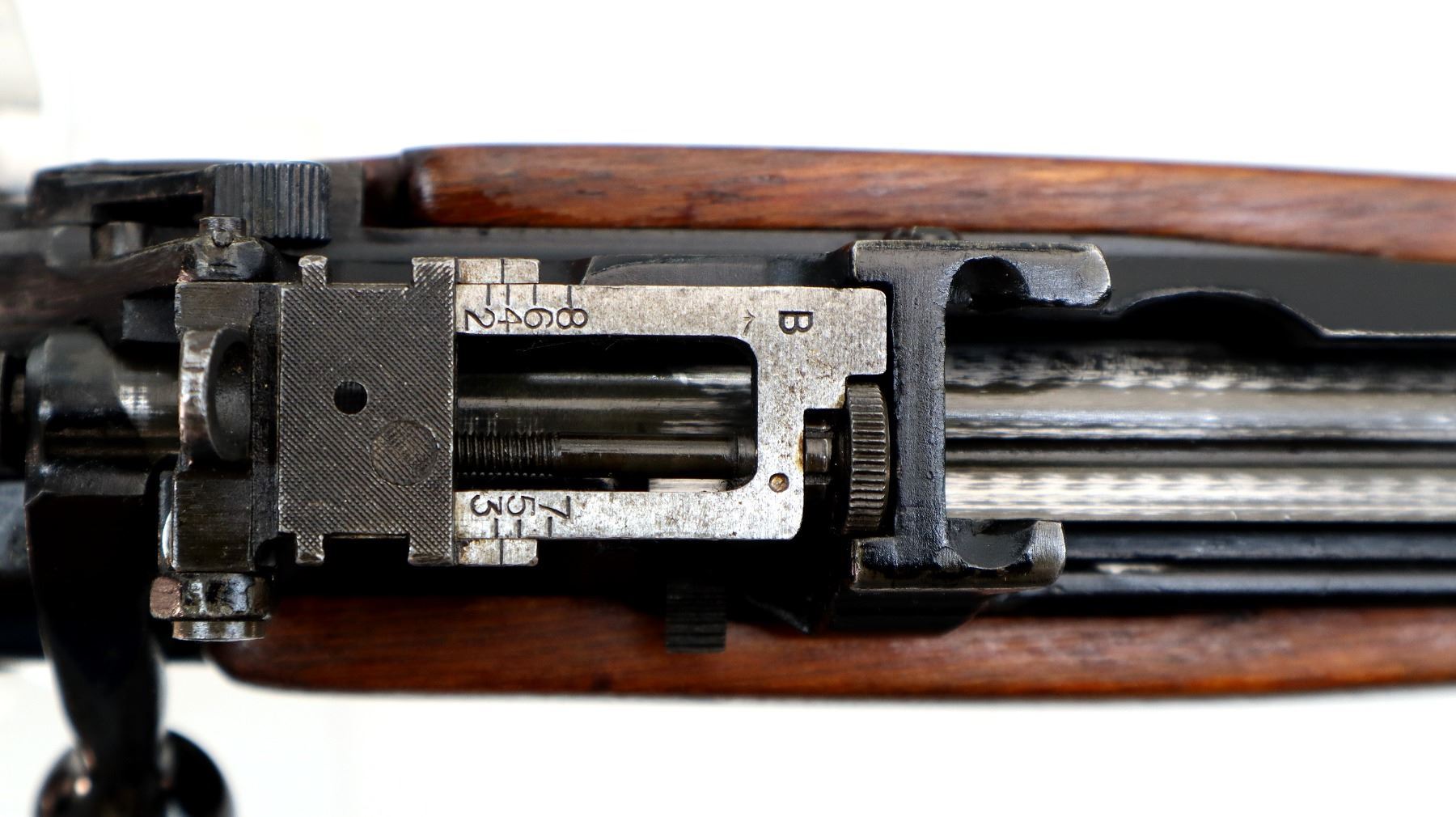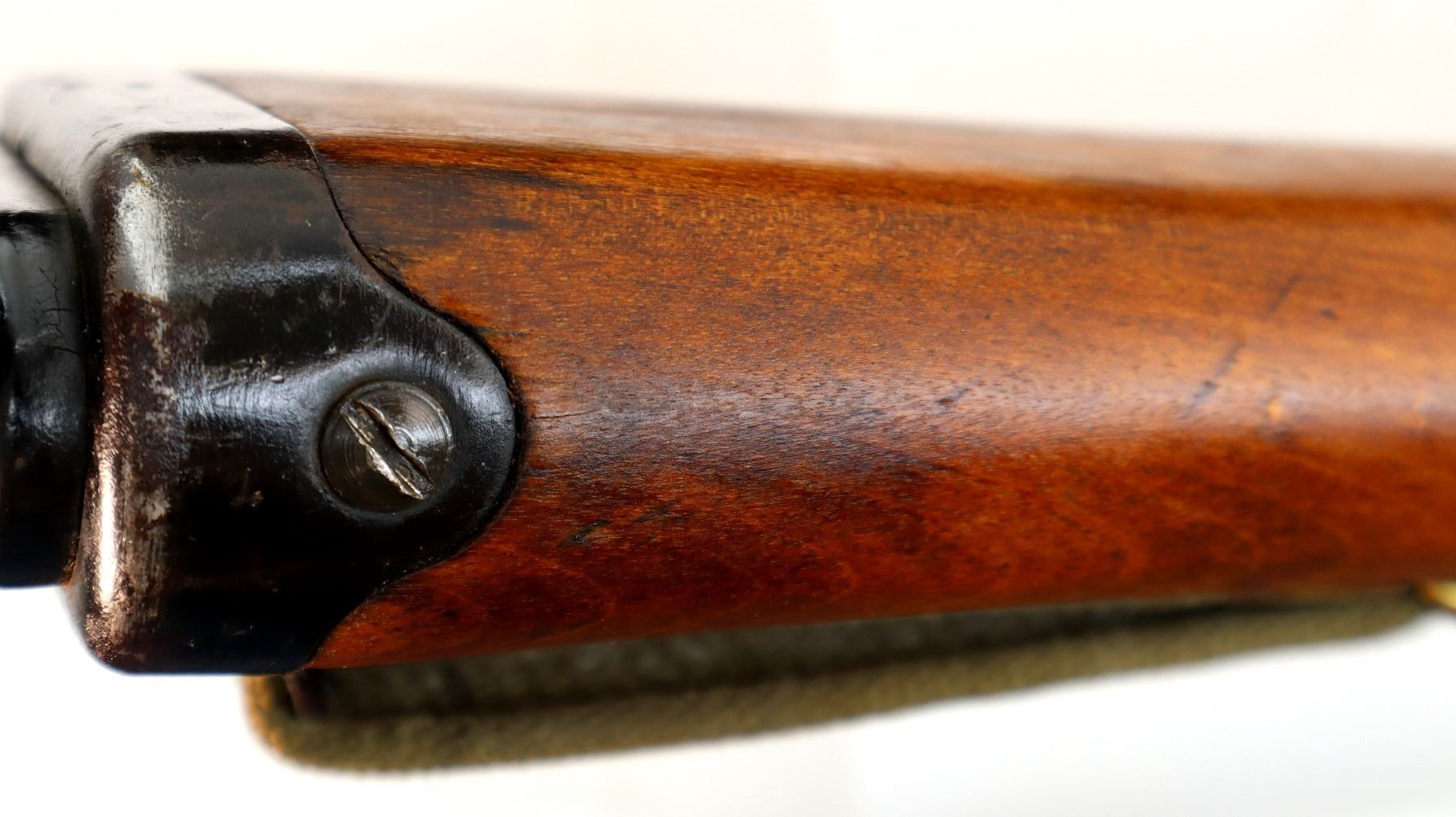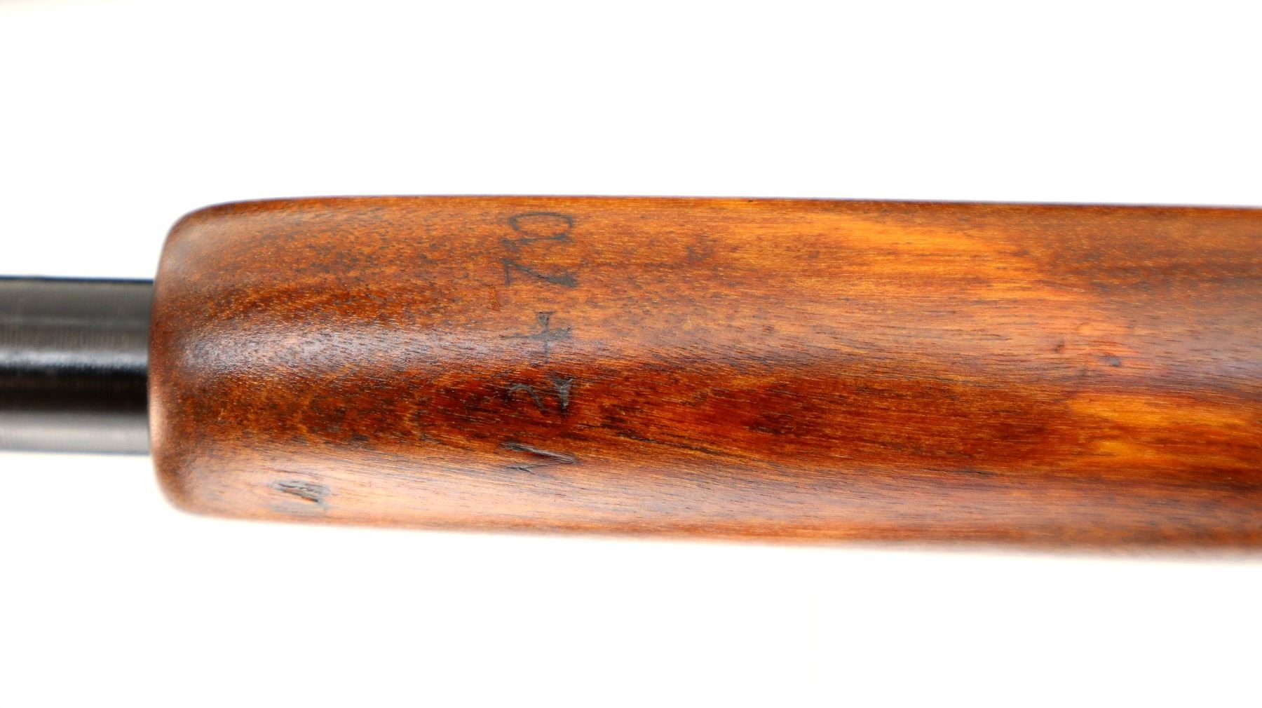 Main Description: Manufactured by Fazakerley 5/46, visible numbers match. Blade front sight with ears and ramp ears are bent, adjustable milled 800yrd rear peep sight, black painted metal finish. Three piece full military wood stocks, pistol grip, black rubber recoil pad, sling swivels with P37 canvas web sling, flashider with integral bayonet lug.