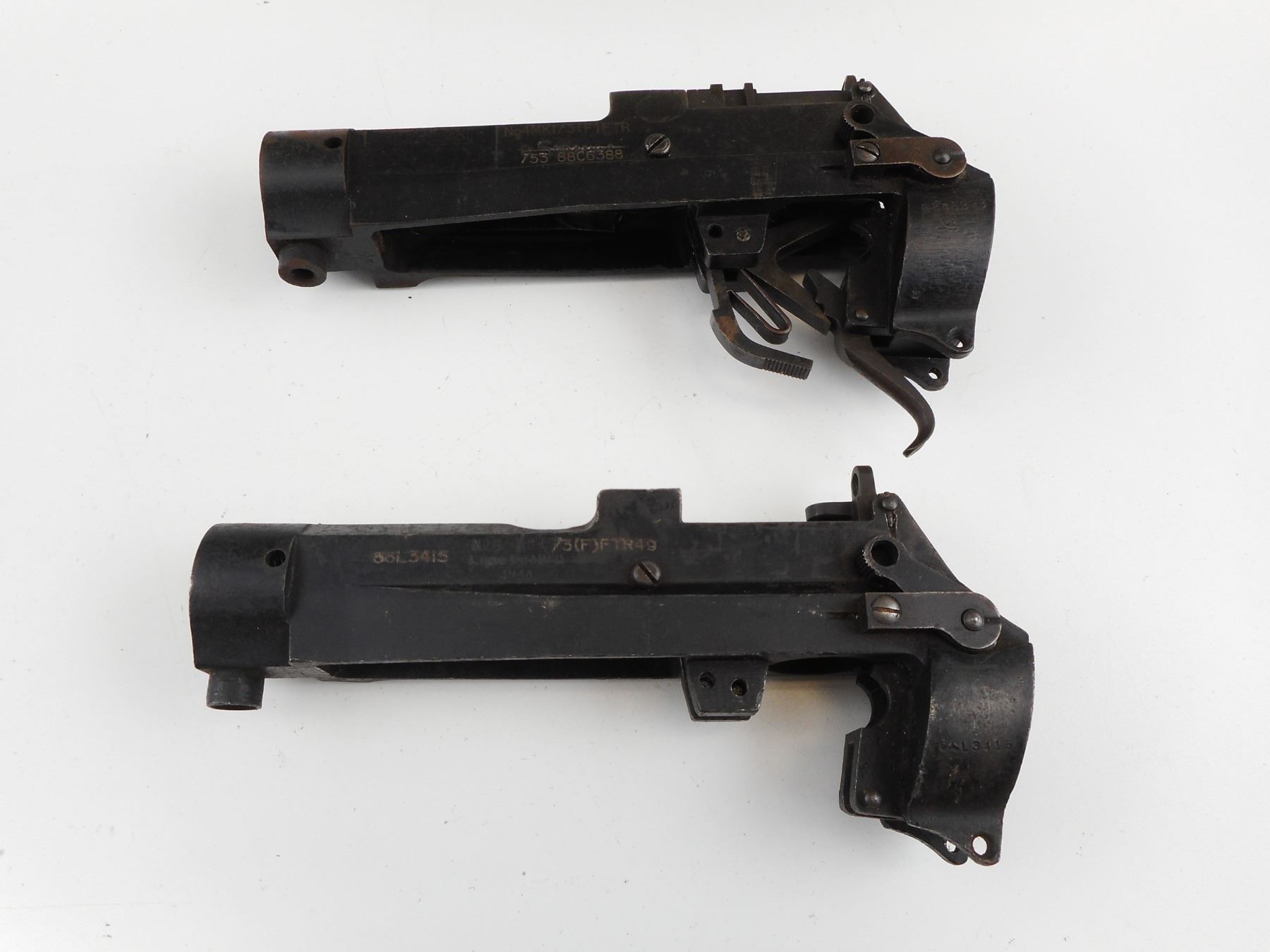 LEE ENFIELD NO.4 .303 RECEIVERS , 1- SAVAGE MFG. SR# 88C6388. REBUILT NO.4 MK 1/3 (F) FTR. 7/53. MARKED "U.S. PROPERTY" COMES WITH TRIGGER PARTS, SAFETY, AND MILLED REAR SIGHT. 1- LONG BRANCH 1944 MFG. SR# 64L3415. REBUILT NO. 4 MK 1/3 (F) FTR 49. COMES WITH SAFETY AND L-FLIP REAR SIGHT. PAL REQUIRED. LOT OF 2.