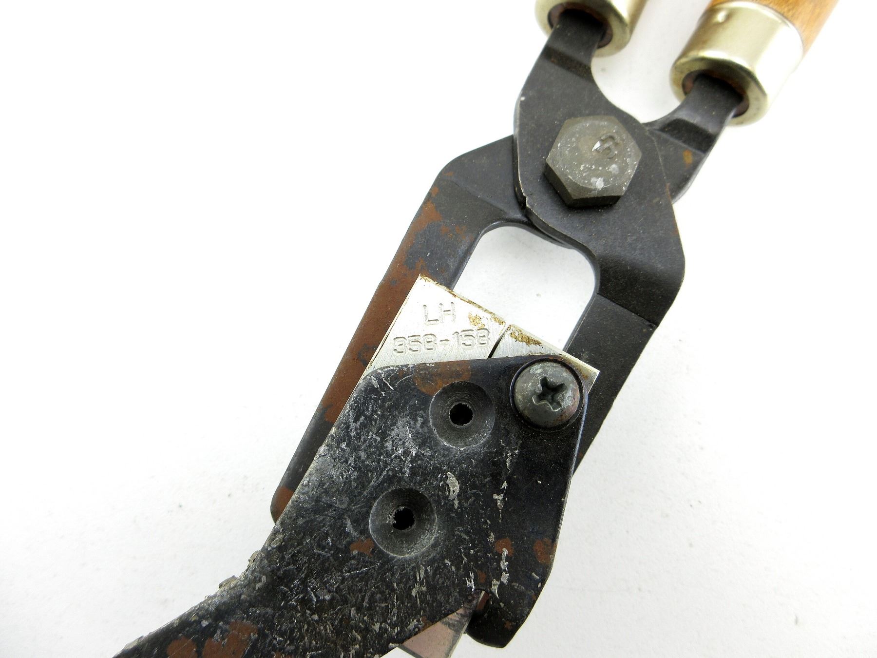LOT INCLUDES; (1) .358" DIA. DOUBLE-CAVITY BULLET MOLD WITH WOOD HANDLES ATTACHED, MOLD MARKED: "LH, 358-158". SEE PHOTOS.