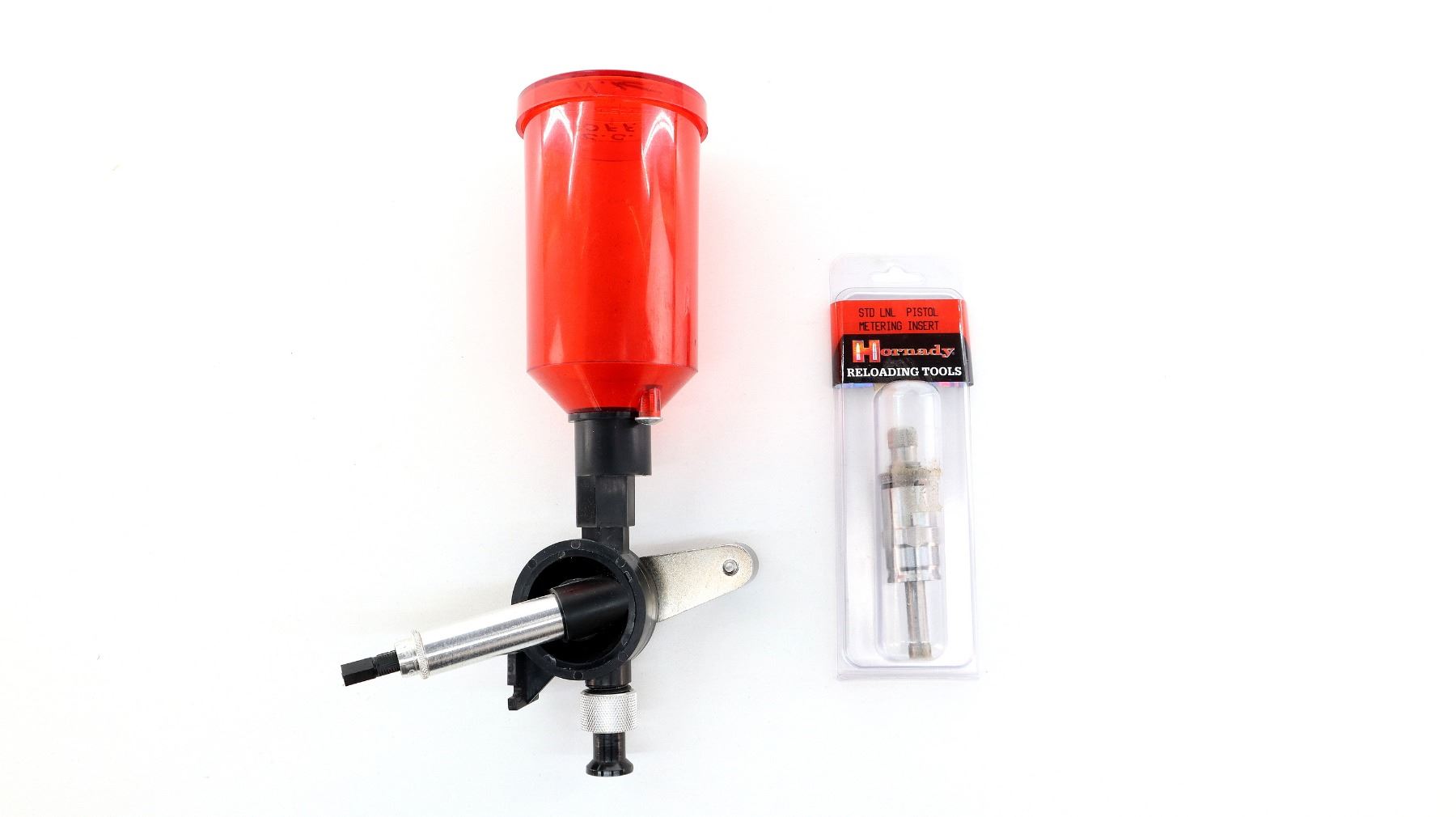LEE PISTOL POWDER MEASURE AND HORNADY PISTOL METERING INSERT LOT