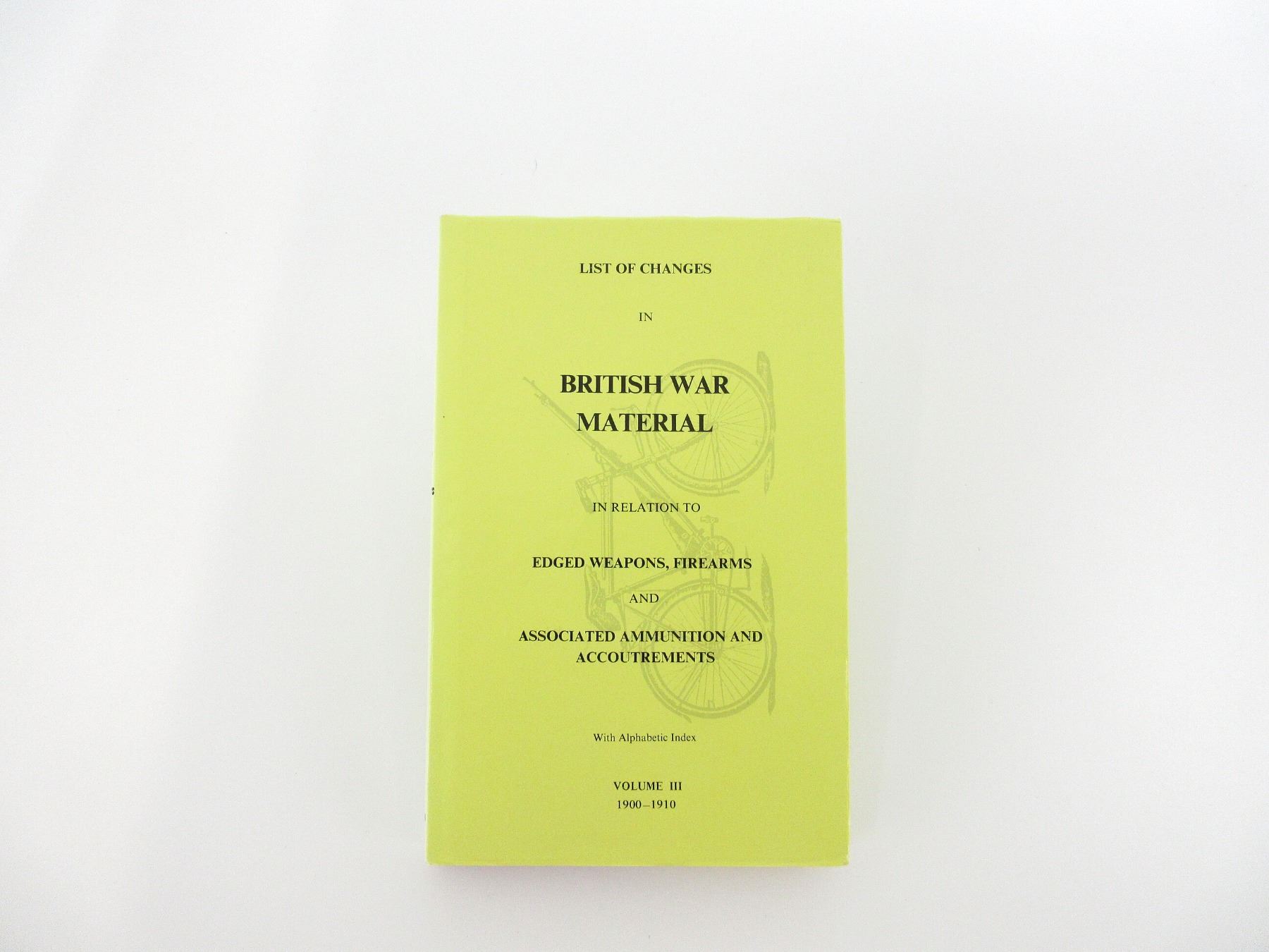 "LIST OF CHANGES IN BRITISH WAR MATERIAL IN RELATION TO EDGED WEAPONS, FIREARMS AND ASSOCIATED AMMUNITION AND ACCOUTREMENTS, VOLUME III, 1900-1910" BOOK