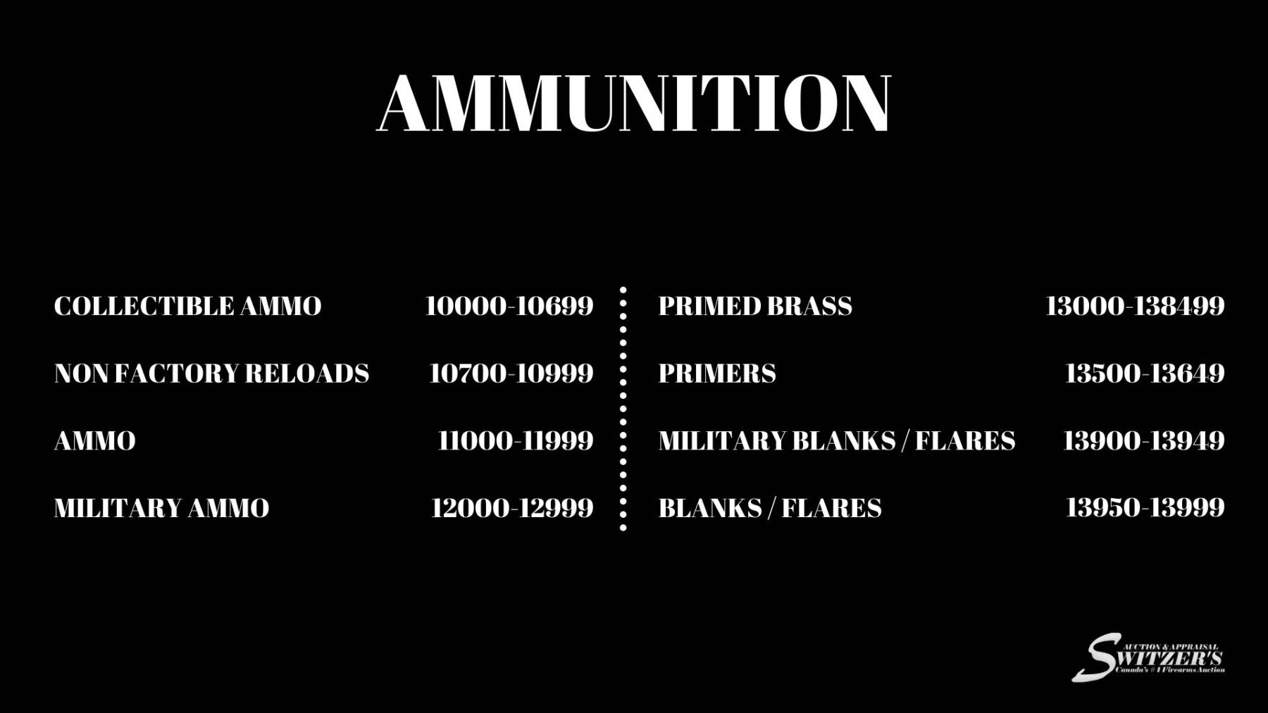 As we are selling Firearms, Ammunition and Cartridge Magazines, it is imperative that bidders/customers provide us their correct information. We require your full name as shown on your PAL, license number, date of birth, mailing address that is associated with your PAL. When this information is incorrect it will cause a delay in both the processing and shipping of your purchase. If you have made an error and need to correct it, email admin@switzersauction.com.
