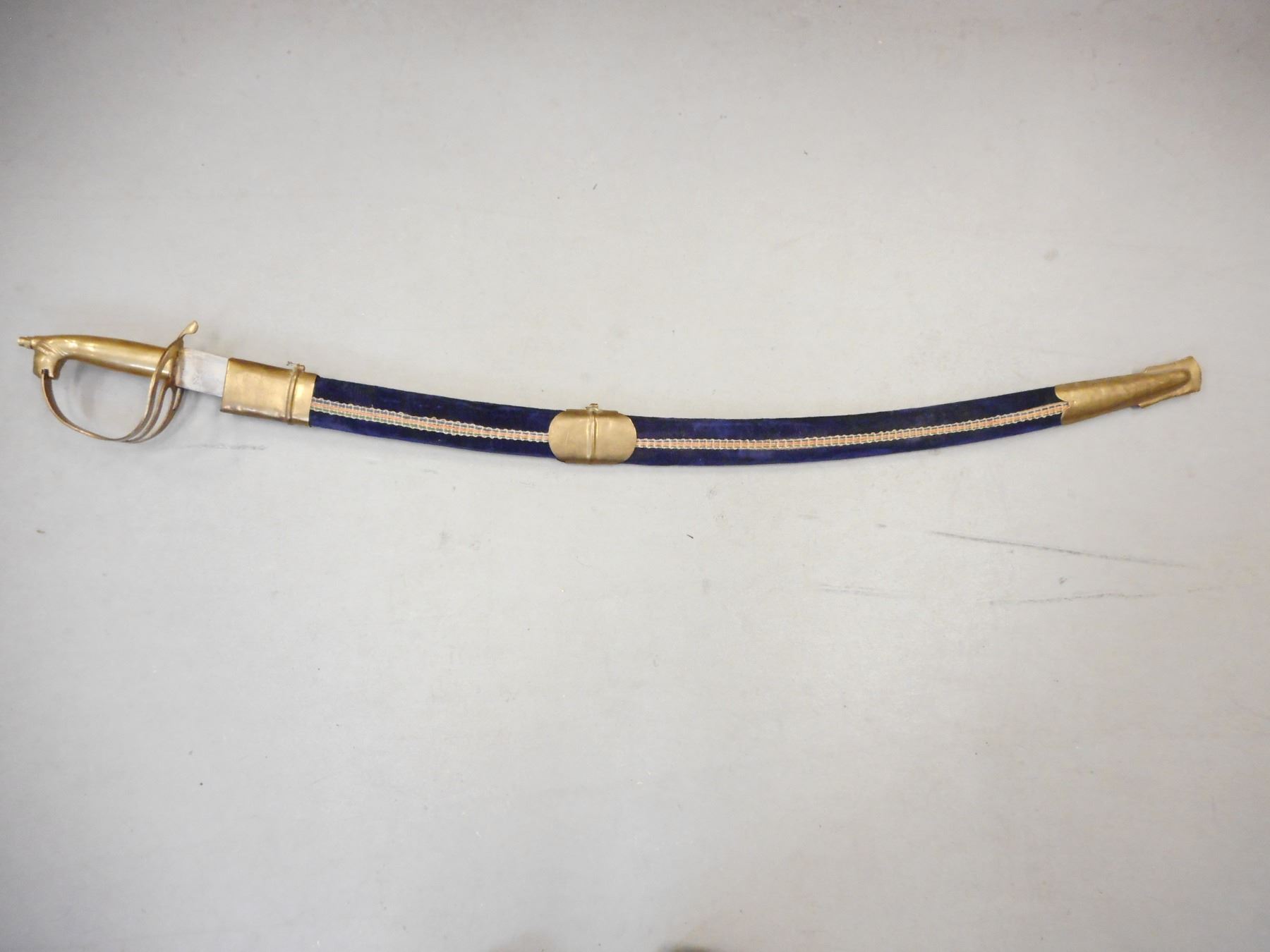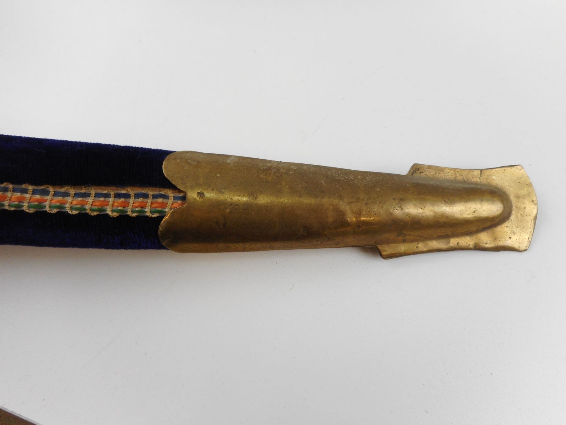 MADE IN INDIA SWORD WITH SCABBARD , DECORATIVE BLADE, MARKED MADE IN INDIA. BLADE LENGTH APPROX. 29.5" TOTAL LENGTH APPROX. 35".