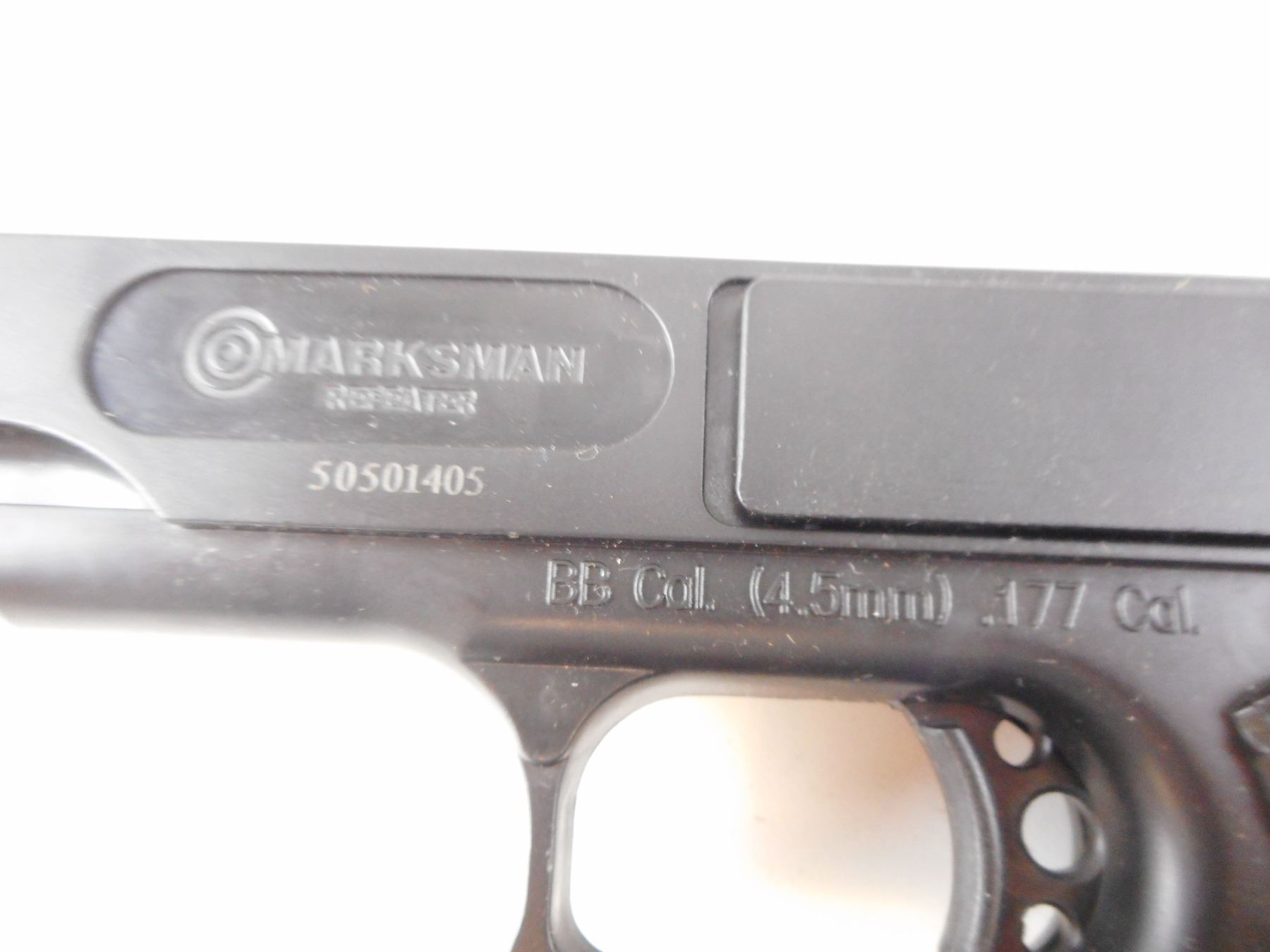 MARKSMAN REPEATER AIR PISTOL , WITH SIGHT. MARKED BB CAL (4.5MM), 50501405.