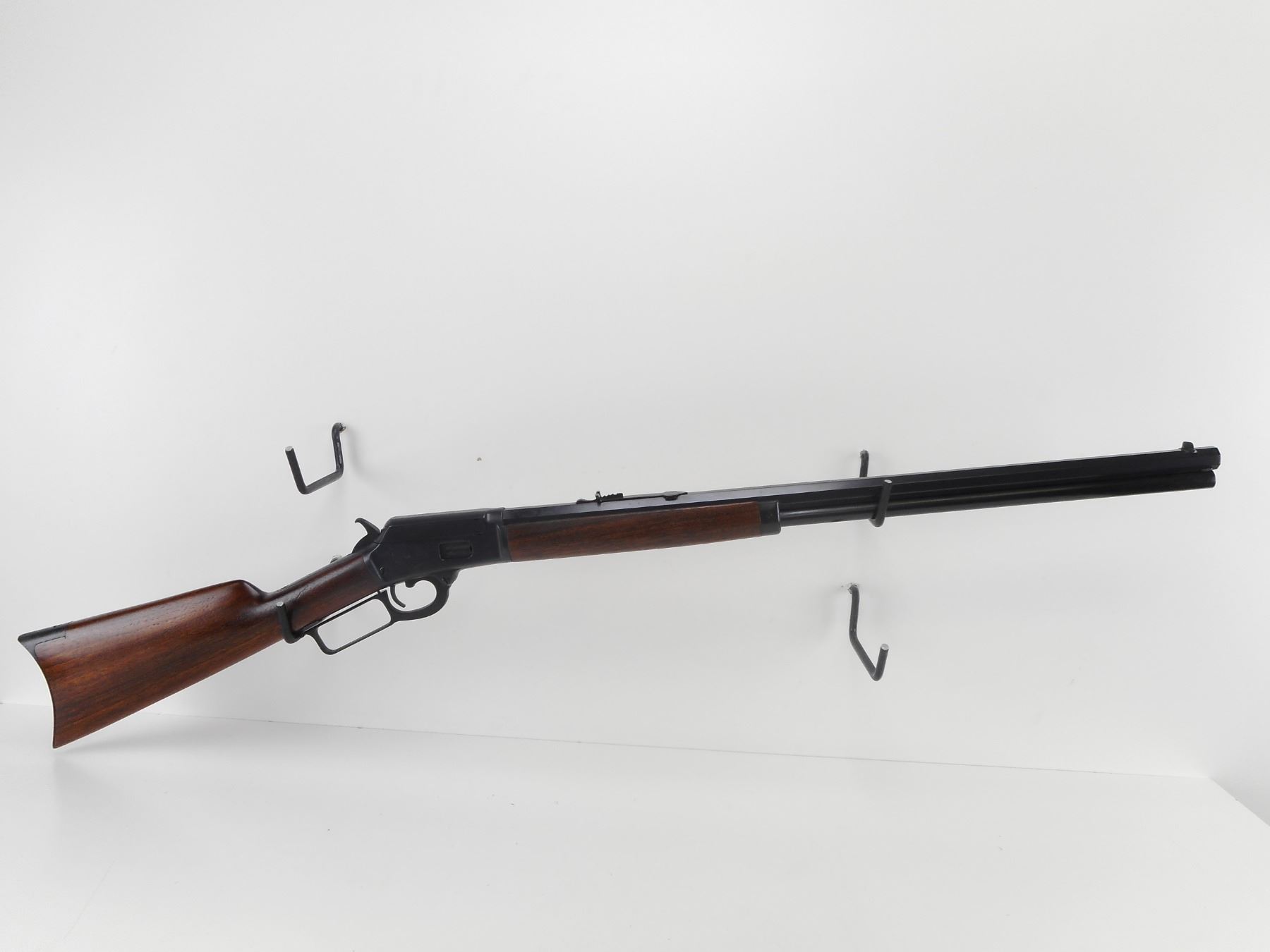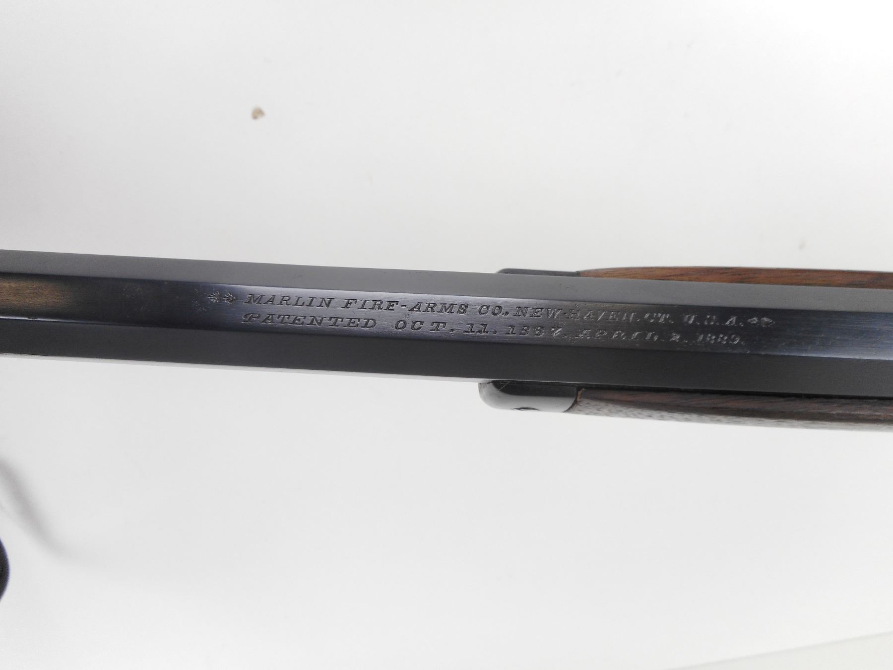 MARLIN , MODEL: 1889 , CALIBER: 38W (38-40 WIN) , MANUFACTURED IN 1891. GOOD BORE. BLADE FRONT AND ADJUSTABLE REAR SIGHTS. OCTAGONAL BARREL. TWO PIECE HARDWOOD STOCK. CRESCENT STEEL BUTTPLATE. APPEARS REBLUED AND REFINISHED. SHOWS VERY LITTLE HANDLING MARKS. BARREL LENGTH: 24", CONDITION: 6/10 , STOCK # NR10522, SERIAL # 56553, CLASS: CANADIAN NON RESTRICTED CLASS