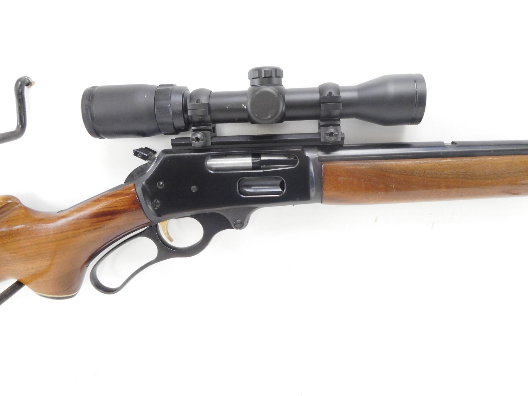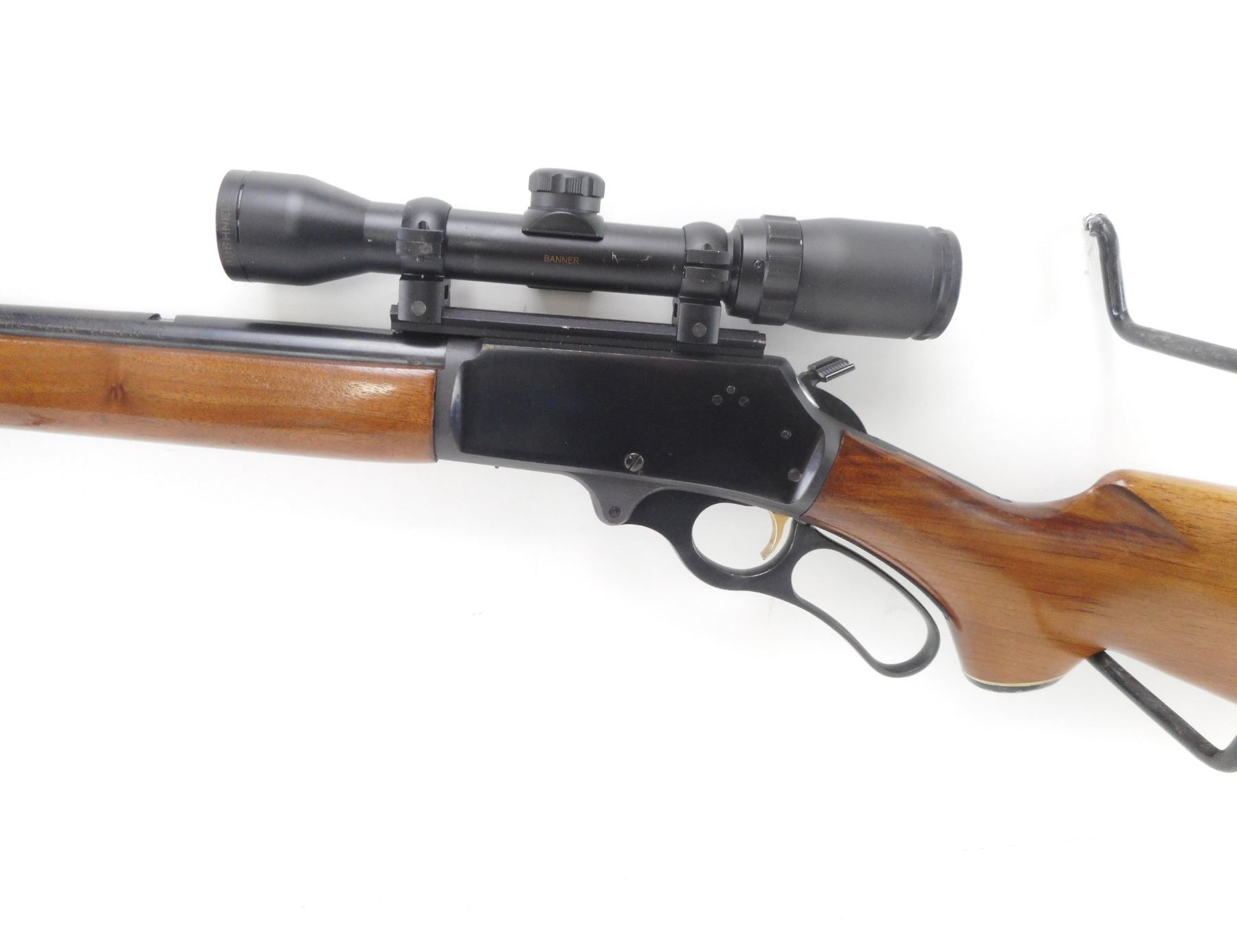 MARLIN , MODEL: 336 , CALIBER: 30-30 WIN , BORE IS EXCELLENT. HOODED FRONT SIGHT. MISSING THE REAR SIGHT. FEATURES A BUSHNELL BANNER 2-4 POWER SCOPE. 2 PIECE HARDWOOD STOCK WITH PLASTIC BUTT PLATE. SLING SWIVEL STUDS. SHOWS VERY LITTLE HANDLING MARKS. , ACTION: LEVER ACTION RIFLE , BARREL LENGTH: 20" , STOCK # NR12827 , SERIAL # 25012962 , CONDITION: 8/10 , CLASS: CANADIAN CLASS NON RESTRICTED