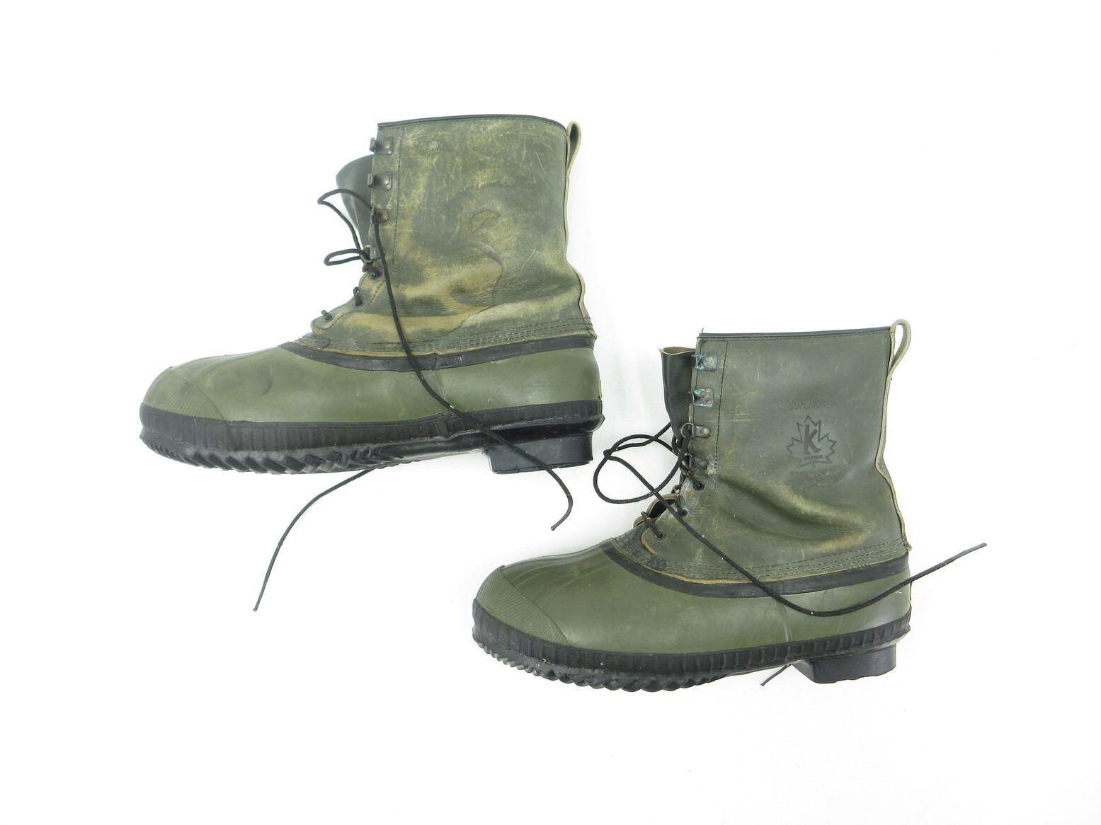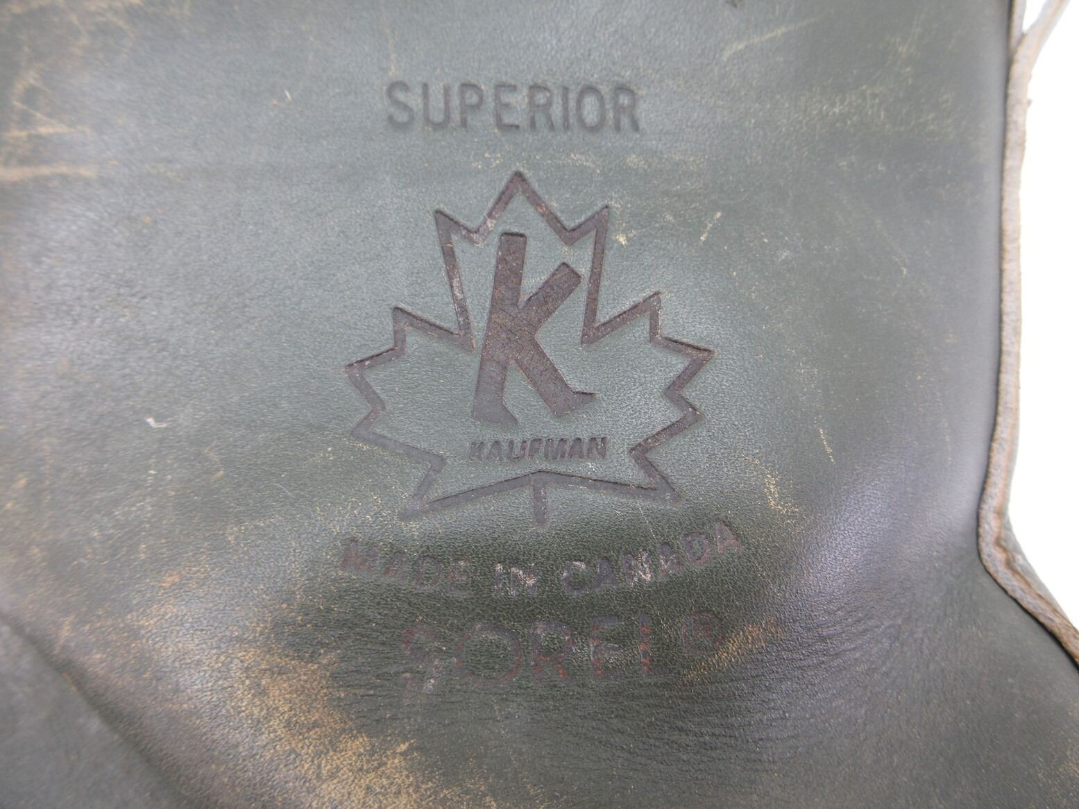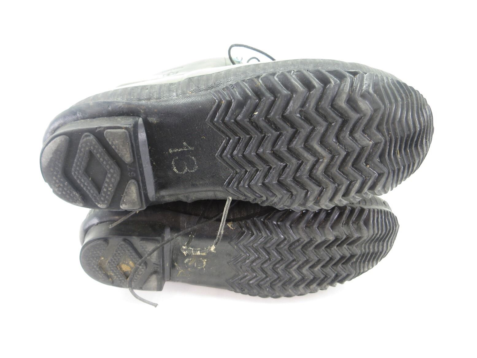 MEN'S SOREL SUPERIOR KAUFMAN SIZE 13 BOOTS. (1) PAIR OF BOOTS, SIZE MEN'S 13, GREEN LEATHER, UNLINED, RUBBERIZED SOLES, SHOWS WEAR & TEAR, LACE UP. SEE PHOTOS.