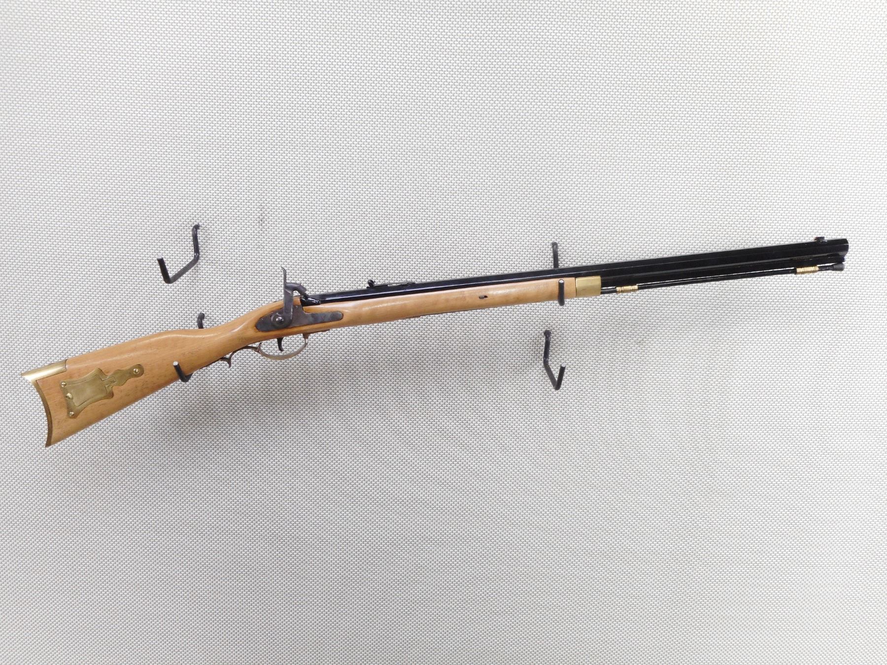MENDI , MODEL: HAWKEN STYLE , CALIBER: 45 CAL PERC , BORE IS VERY GOOD. BLADE FRONT SIGHT, ADJUSTABLE REAR SIGHT. BARREL APPEARS TO HAVE BEEN PAINTED. ONE PIECE HARDWOOD STOCK WITH BRASS FOREND CAP, TRIGGER GUARD, PATCH BOX, AND CRESCENT BUTT PLATE. SHOWS SOME HANDLING MARKS. ACTION: SINGLE SHOT PERCUSSION , BARREL LENGTH: 26 1/2" , SERIAL # B3806 , CONDITION: 6/10 , CLASS: CANADIAN NON RESTRICTED CLASS