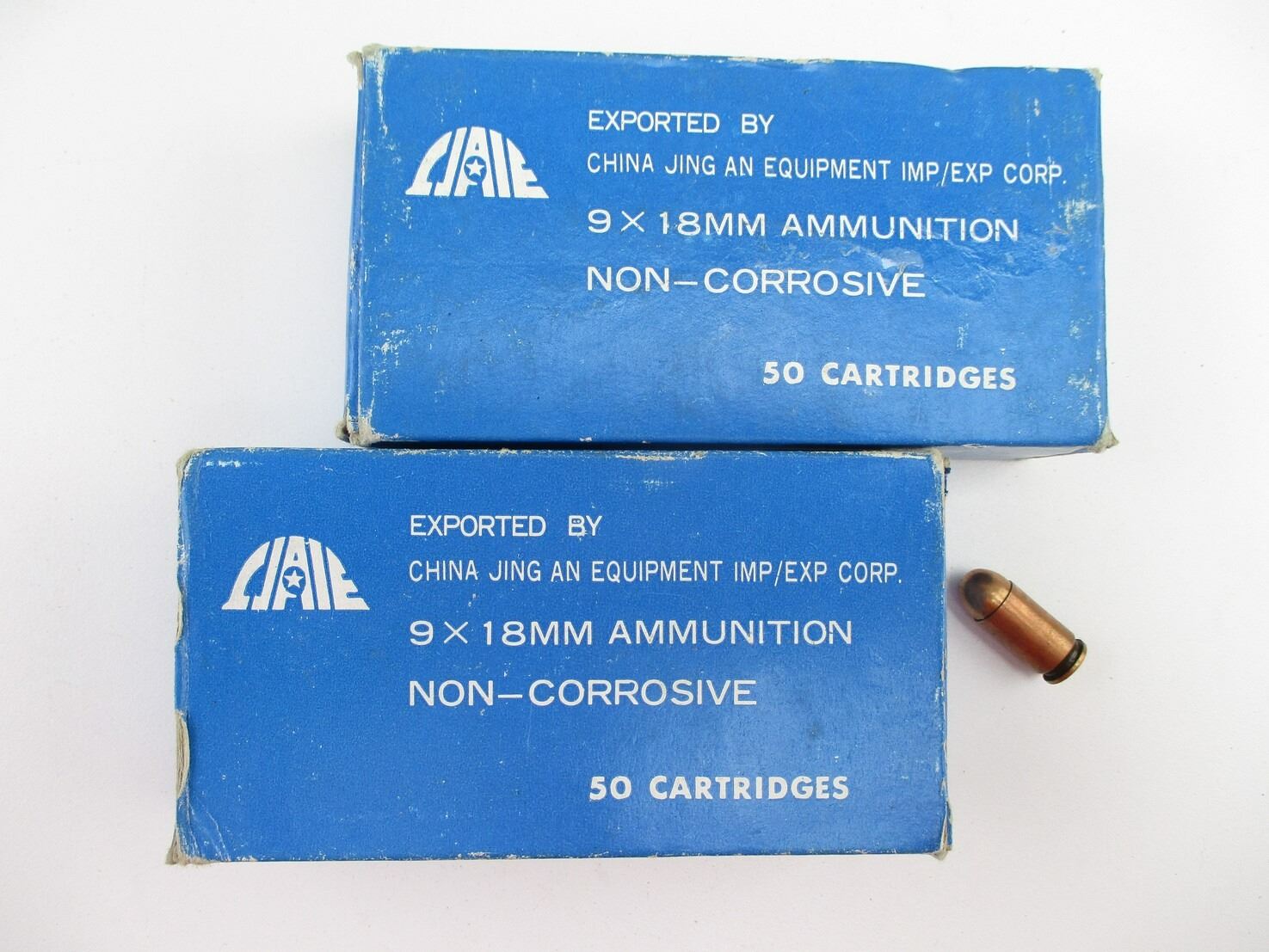 MILITARY CHINA JING AN EQUIPMENT 9X18MM AMMO, 90 RNDS, THERE ARE NEW SHIPPING RESTRICTIONS, PLEASE MAKE SURE YOU HAVE READ AND CONFIRMED WE CAN SHIP TO YOU BEFORE BIDDING ON THIS LOT. PLEASE SEE LOT 0 IN THIS SESSION. NO REFUNDS WILL BE ISSUED, OR BIDS RETRACTED