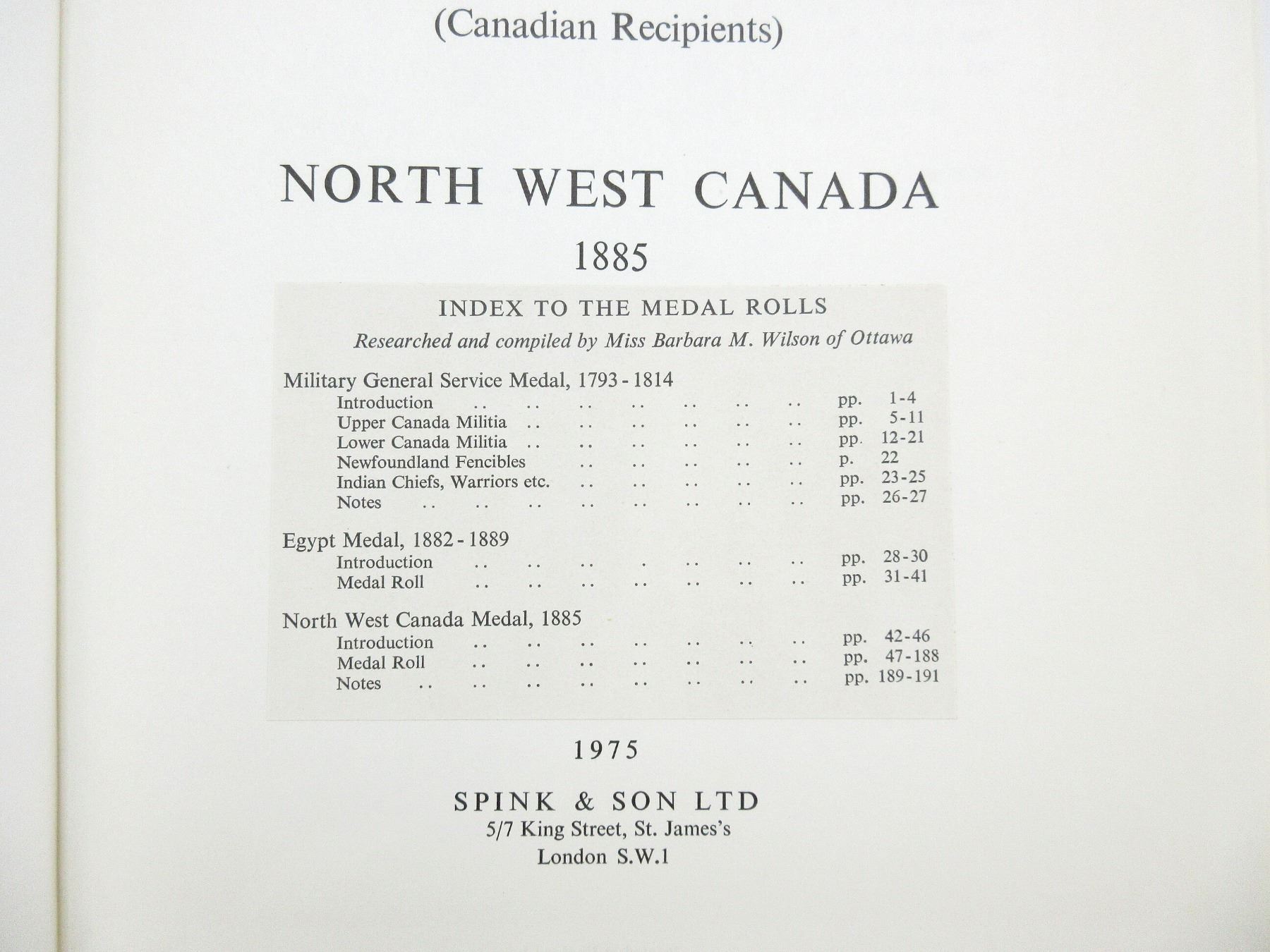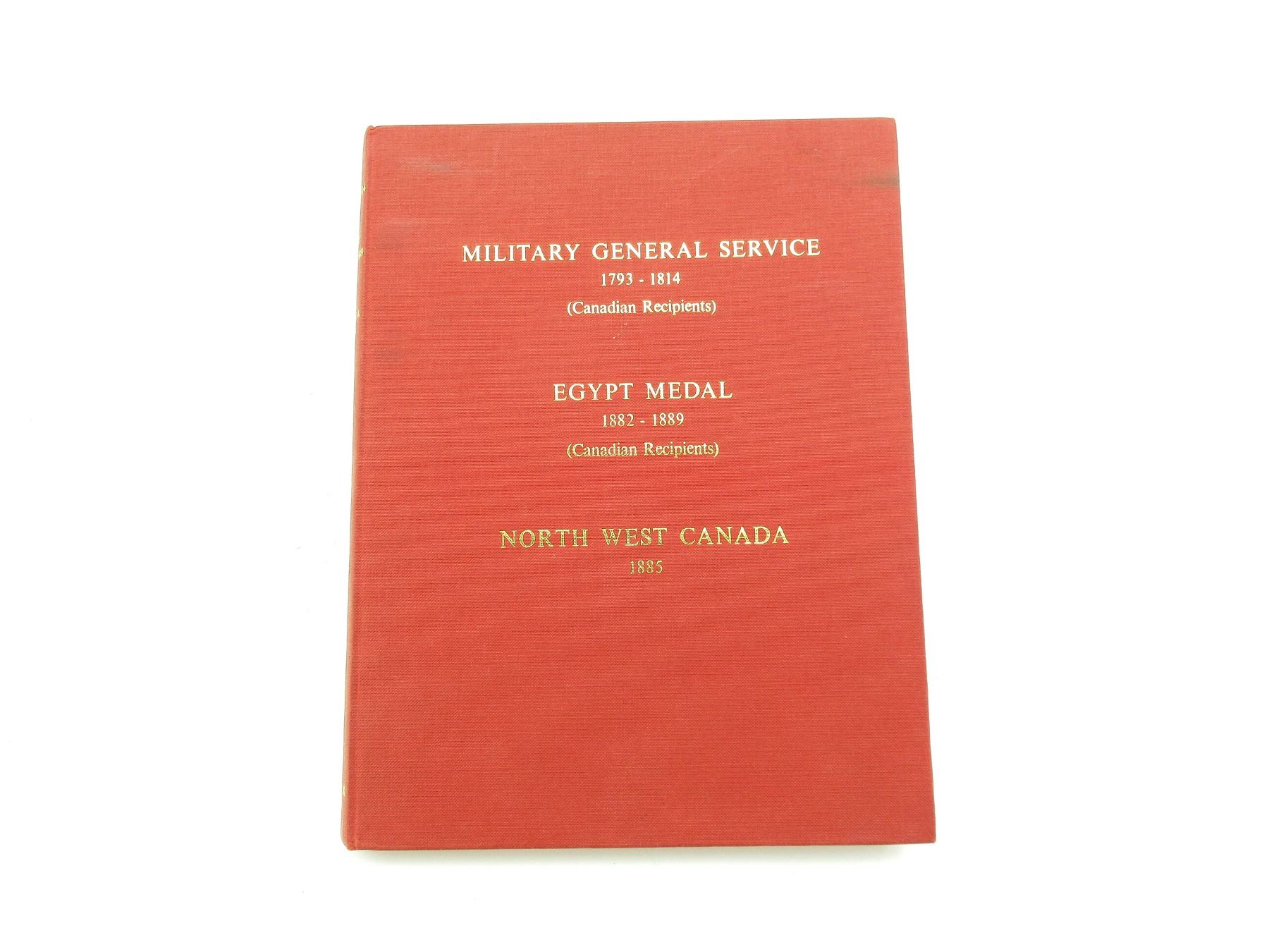 "MILITARY GENERAL SERVICE 1793-1814 (CANADIAN RECIPIENTS) EGYPT MEDAL 1882-1889 (CANADIAN RECIPIENTS) NORTH WEST CANADA 1885" BOOK\