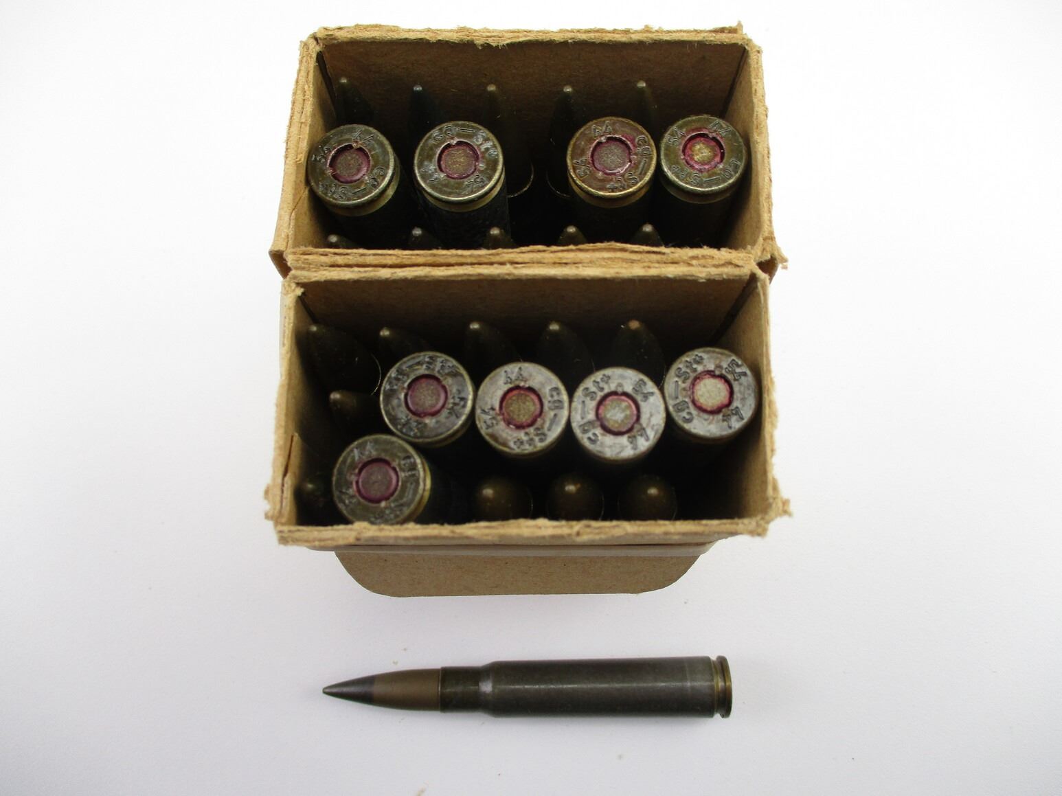MILITARY GERMAN 8MM ORANGE TRACERS AMMO, 30 RNDS, DATED 1944, THERE ARE NEW SHIPPING RESTRICTIONS, PLEASE MAKE SURE YOU HAVE READ AND CONFIRMED WE CAN SHIP TO YOU BEFORE BIDDING ON THIS LOT. PLEASE SEE LOT 0 IN THIS SESSION. NO REFUNDS WILL BE ISSUED, OR BIDS RETRACTED