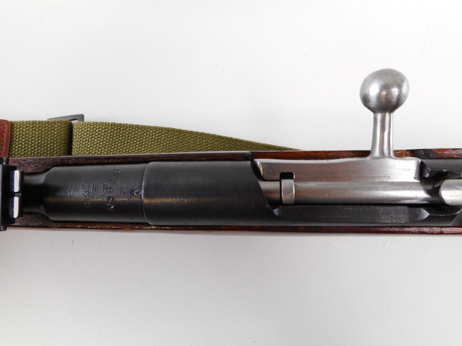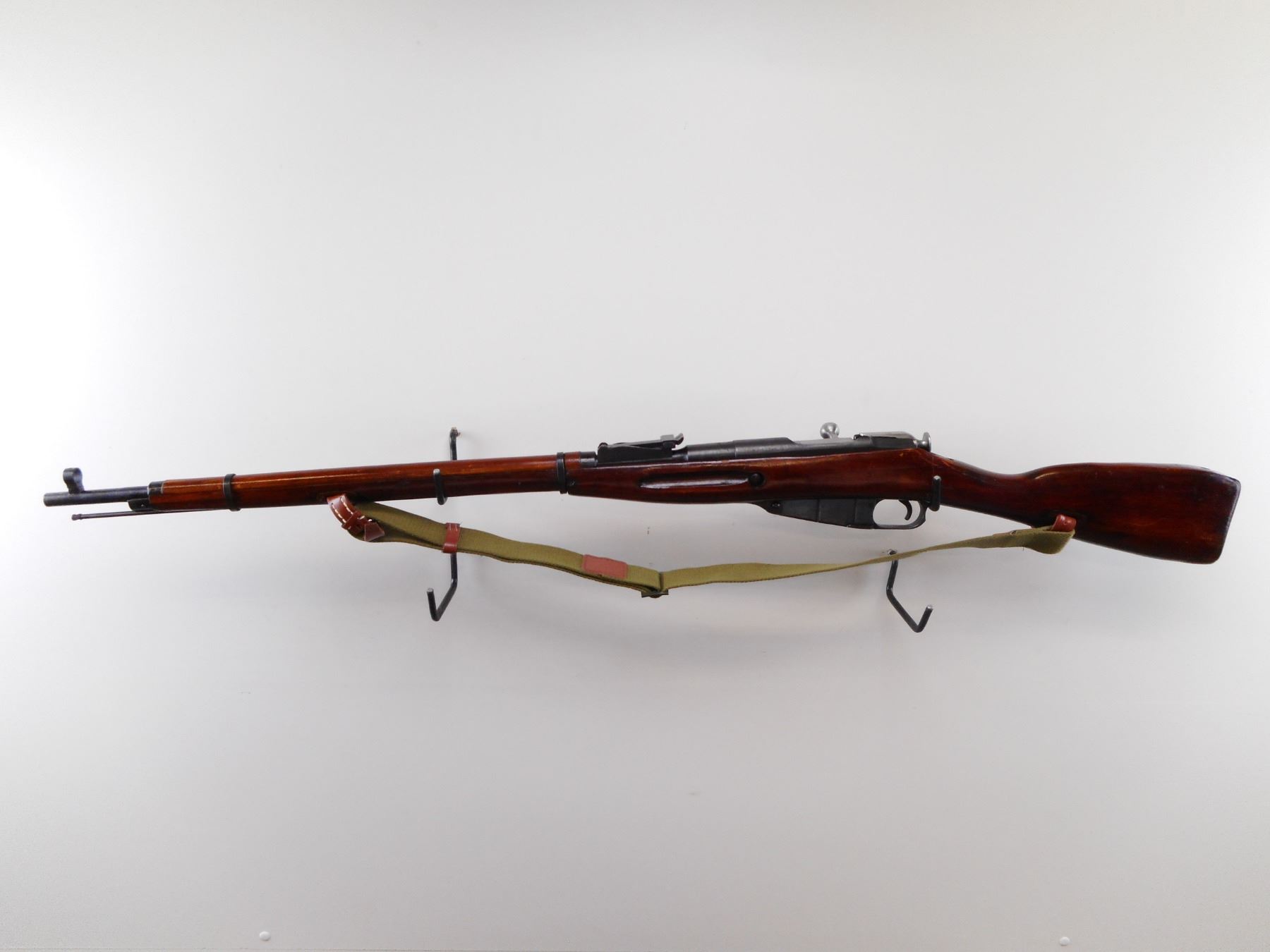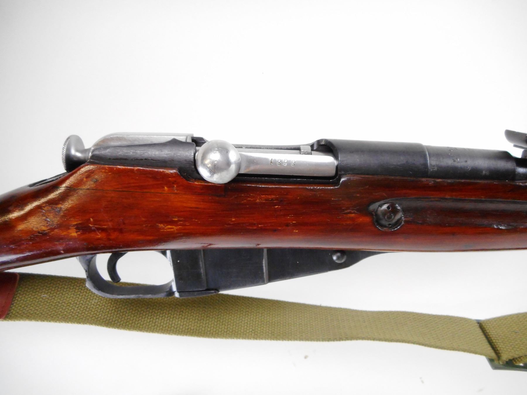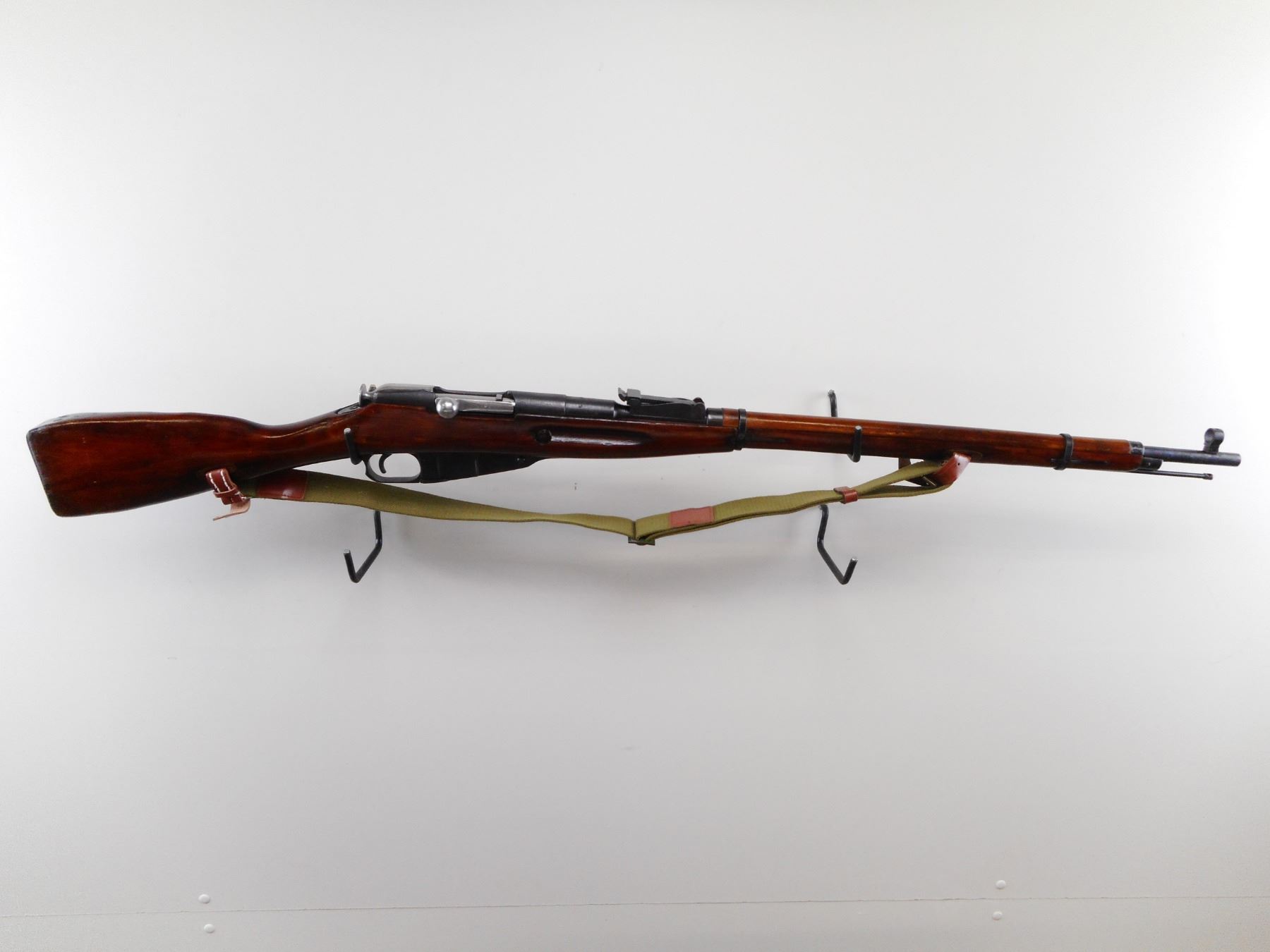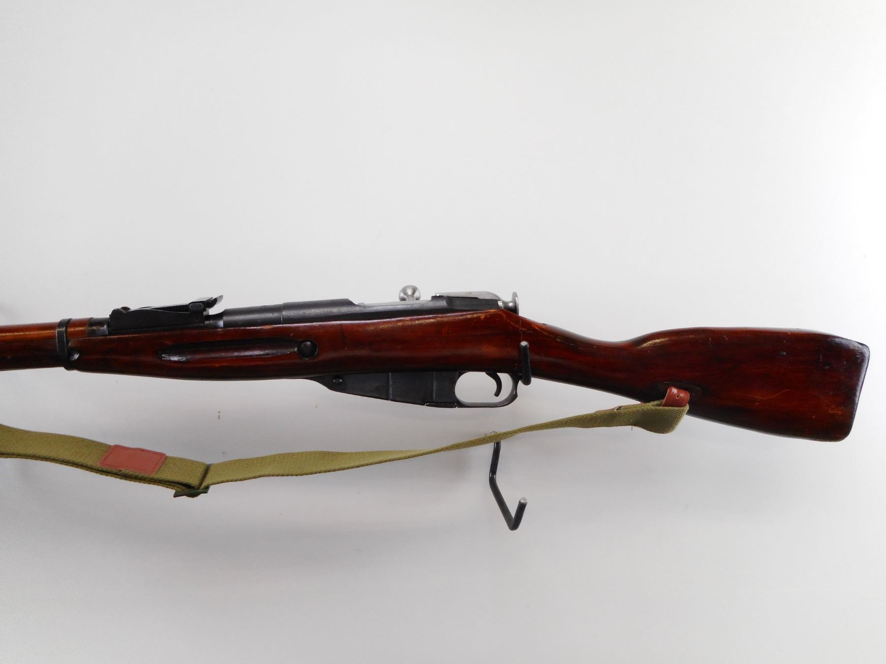 MOSIN NAGANT , MODEL: 91/30 , CALIBER: 7.62 X 54R , BORE IS GOOD BUT WORN. DATED 1942. TULA ARSENAL. SERIAL # MATCH , MAG RENUMBERED DURING REBUILD. POST FRONT SIGHT WITH HOOD. ADJUSTABLE U NOTCH REAR SIGHT. ROUND RECEIVER. TWO PIECE FULL MILITARY STOCK. SMOOTH STEEL BUTT PLATE. SLING SLOTS WITH CANVAS AND LEATHER SLING. RAM ROD. BLUEING SHOWS HANDLING MARKS AND WEAR. STOCKS SHOWS HANDLING MARKS AND WEAR. , SERIAL # KY8681 , ACTION: BOLT ACTION RIFLE , BARREL LENGTH: 29" , CONDITION: 7/10 , CLASS: CANADIAN NON RESTRICTED CLASS
